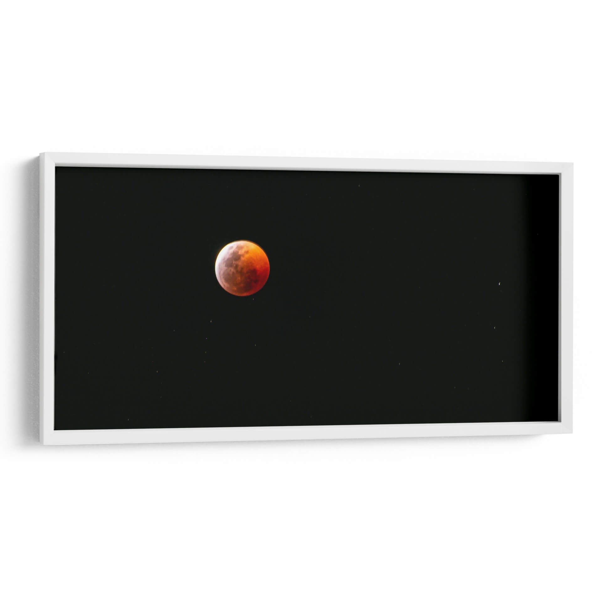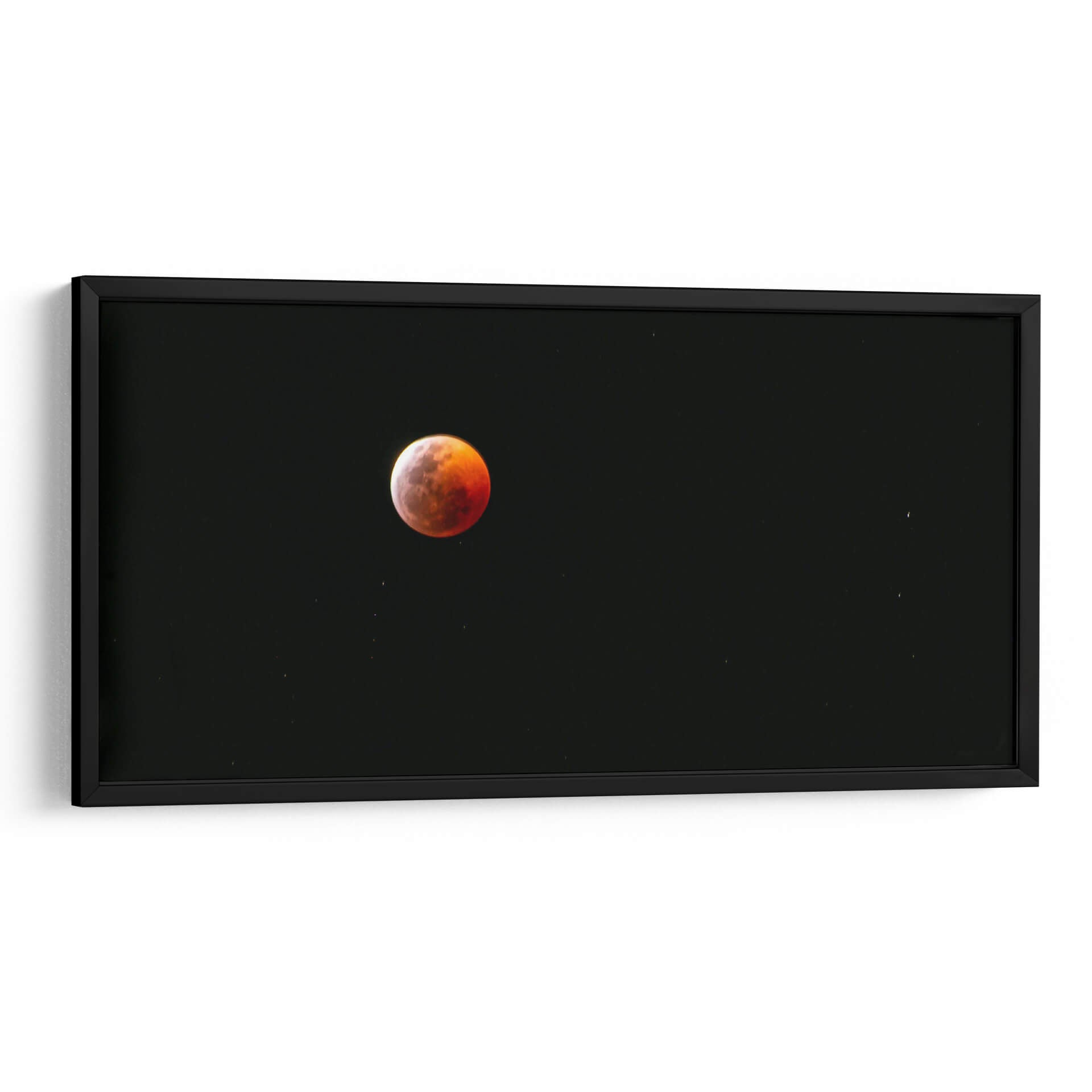 Sumérgete en la mística del cosmos con 'Eclipse Lunar', una obra maestra de Lalo Martínez que captura la sobrecogedora belleza de un eclipse lunar. Este cuadro decorativo, dominado por un profundo fondo negro salpicado de tenues estrellas, presenta un disco lunar incandescente en tonos rojos y naranjas, evocando un sentido de misterio y asombro celestial. La técnica fotográfica o digital utilizada resalta la textura y la luz etérea de la luna, creando una atmósfera de calma y contemplación. Ideal para quienes buscan infundir a su hogar u oficina una conexión con el universo, este arte de pared es un punto focal cautivador. Su composición minimalista pero impactante lo convierte en una adición perfecta para salones modernos, dormitorios serenos o estudios creativos, invitando a la reflexión y añadiendo un toque de elegancia cósmica a cualquier espacio. La fuerza visual de este eclipse lunar transformará tus paredes en una ventana al infinito.