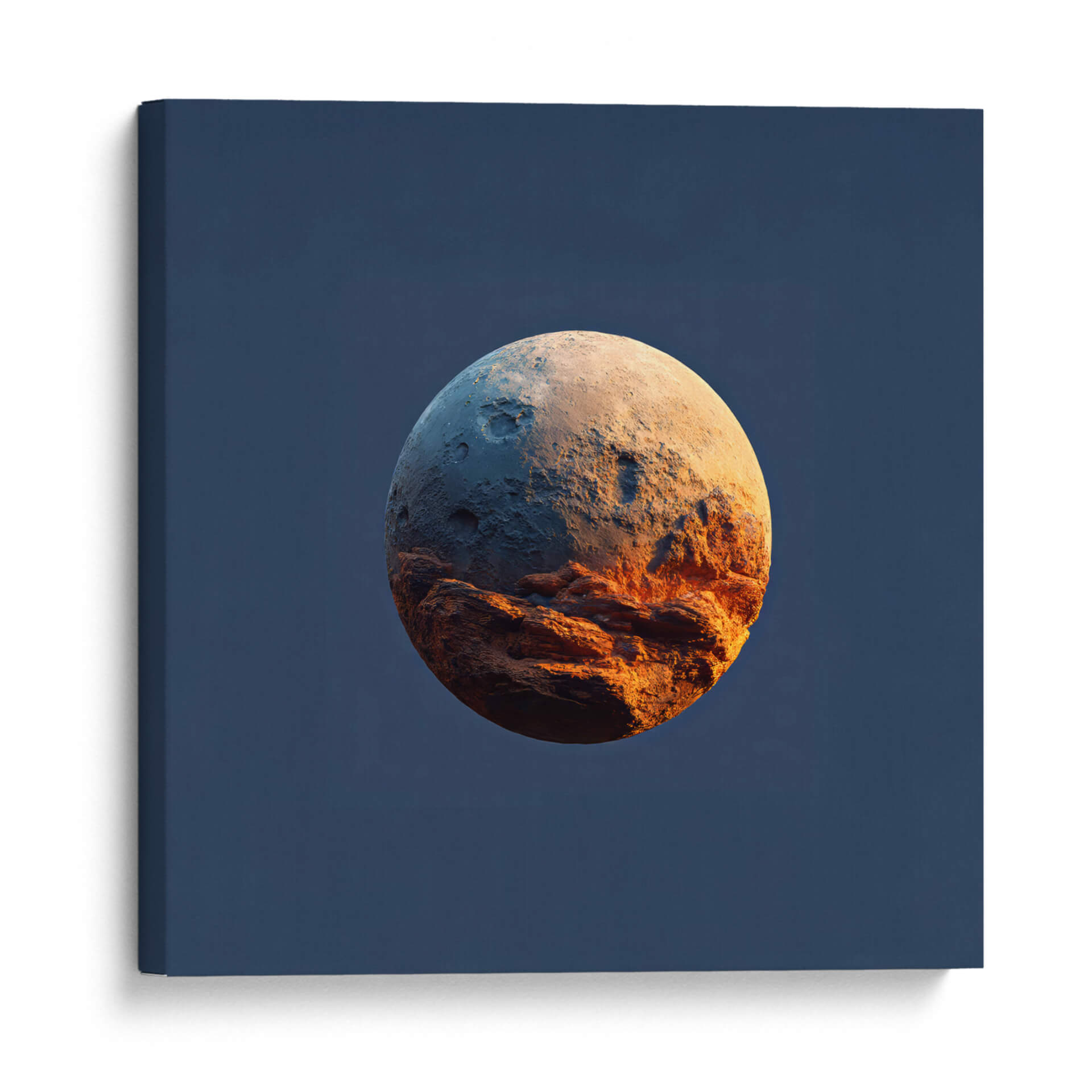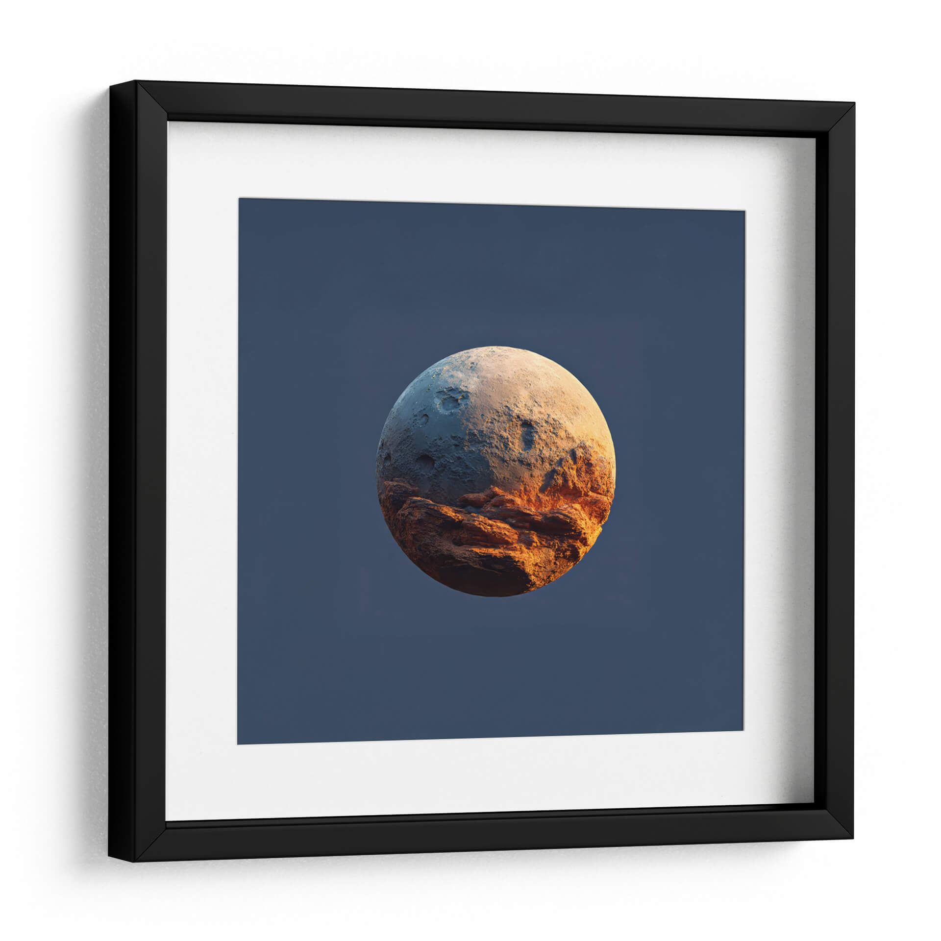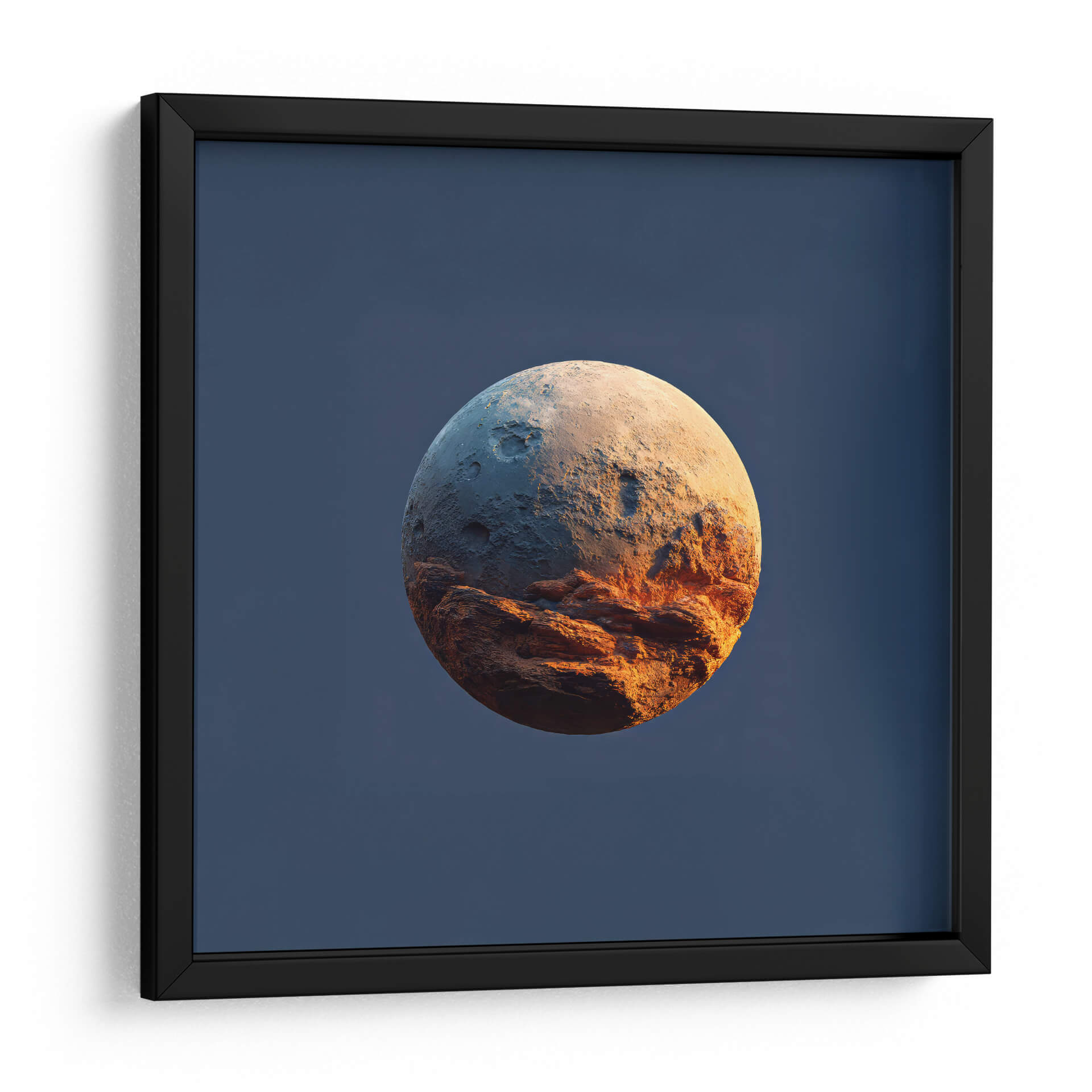 Sumérgete en la inmensidad del cosmos con "Lejos de Casa - 048", una obra de arte digital que captura la misteriosa belleza de un cuerpo celestial. La pieza presenta un planeta o luna con una superficie texturizada y cráteres, iluminado por una luz cálida y dorada que contrasta con las sombras profundas y los tonos azulados del fondo. Esta dualidad cromática crea una atmósfera de intriga y exploración, invitando a la reflexión sobre la soledad y la maravilla del universo. El estilo es una fusión de realismo detallado y una presentación estilizada, ideal para espacios modernos y minimalistas que buscan un toque de originalidad y profundidad. Este cuadro decorativo se convierte en un punto focal cautivador, perfecto para salas de estar, estudios o dormitorios, aportando una sensación de aventura y descubrimiento. La calidad de la imagen y la composición equilibrada aseguran que "Lejos de Casa - 048" sea una adición impactante a cualquier colección de arte de pared, evocando la fascinación por lo desconocido y la belleza de los paisajes alienígenas. Añade una dimensión cósmica a tu hogar con esta pieza única.