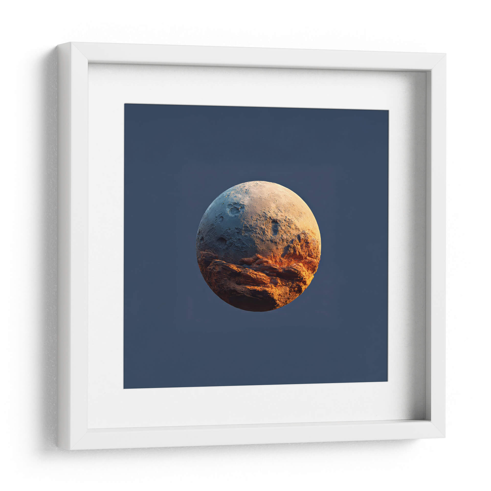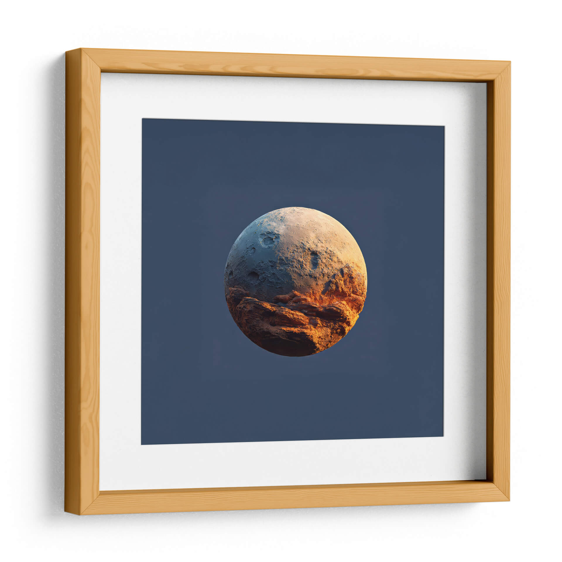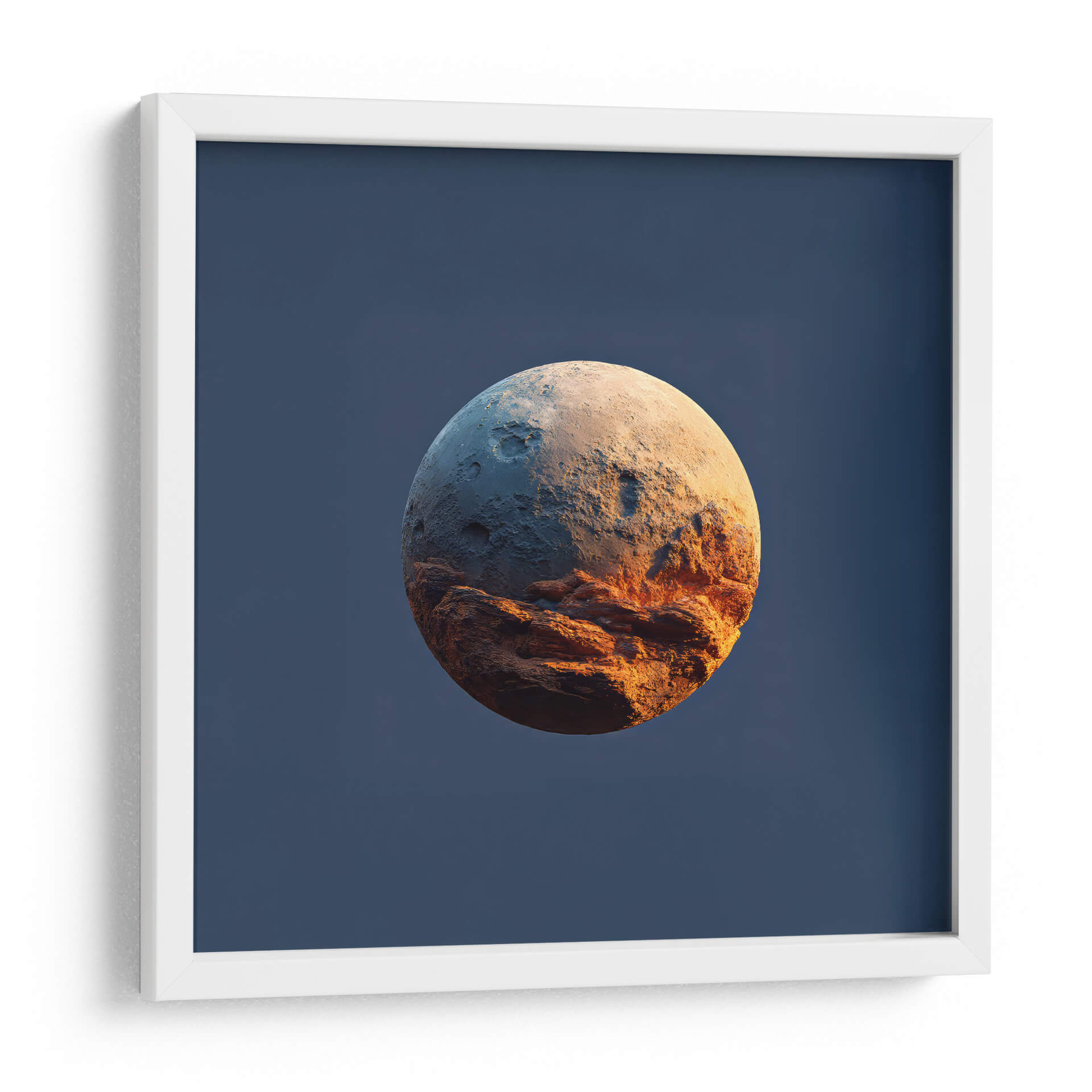 Sumérgete en la inmensidad del cosmos con "Lejos de Casa - 048", una obra de arte digital que captura la misteriosa belleza de un cuerpo celestial. La pieza presenta un planeta o luna con una superficie texturizada y cráteres, iluminado por una luz cálida y dorada que contrasta con las sombras profundas y los tonos azulados del fondo. Esta dualidad cromática crea una atmósfera de intriga y exploración, invitando a la reflexión sobre la soledad y la maravilla del universo. El estilo es una fusión de realismo detallado y una presentación estilizada, ideal para espacios modernos y minimalistas que buscan un toque de originalidad y profundidad. Este cuadro decorativo se convierte en un punto focal cautivador, perfecto para salas de estar, estudios o dormitorios, aportando una sensación de aventura y descubrimiento. La calidad de la imagen y la composición equilibrada aseguran que "Lejos de Casa - 048" sea una adición impactante a cualquier colección de arte de pared, evocando la fascinación por lo desconocido y la belleza de los paisajes alienígenas. Añade una dimensión cósmica a tu hogar con esta pieza única.