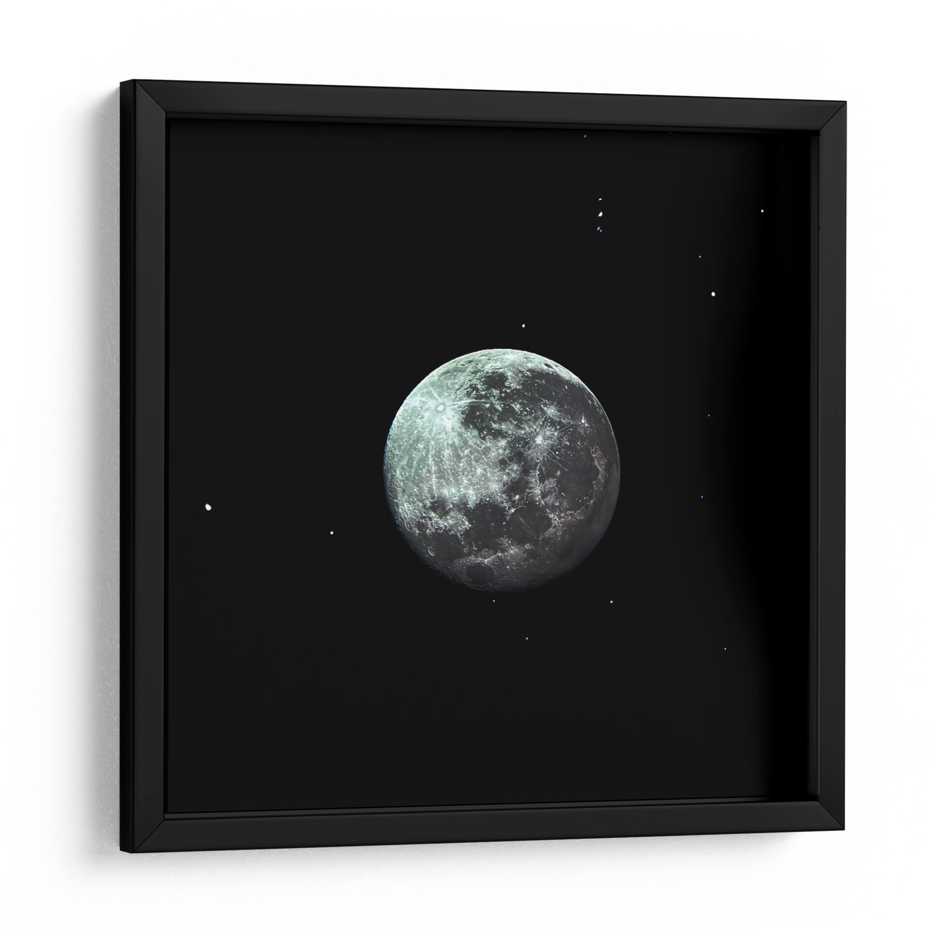 Sumérgete en la majestuosidad del cosmos con 'Luna a Colores', una obra de arte que captura la esencia enigmática de nuestro satélite natural. Este cuadro decorativo presenta una representación detallada de la luna, con sus cráteres y texturas resaltadas por una paleta de colores sutil y sofisticada. El fondo negro profundo del espacio crea un contraste impactante, permitiendo que la luna, bañada en tonos plateados y verdosos, brille con una luz etérea. Las pequeñas estrellas dispersas añaden un toque de misticismo y la inmensidad del universo. El estilo, que combina realismo con una interpretación artística del color, evoca una sensación de asombro y contemplación. Es una pieza ideal para aquellos que buscan añadir un toque de misterio y serenidad a su hogar u oficina, funcionando perfectamente como punto focal en una sala de estar moderna, un dormitorio acogedor o un estudio tranquilo. Este cuadro decorativo 'Luna a Colores' es una invitación a explorar la belleza del espacio y la magia de la noche.