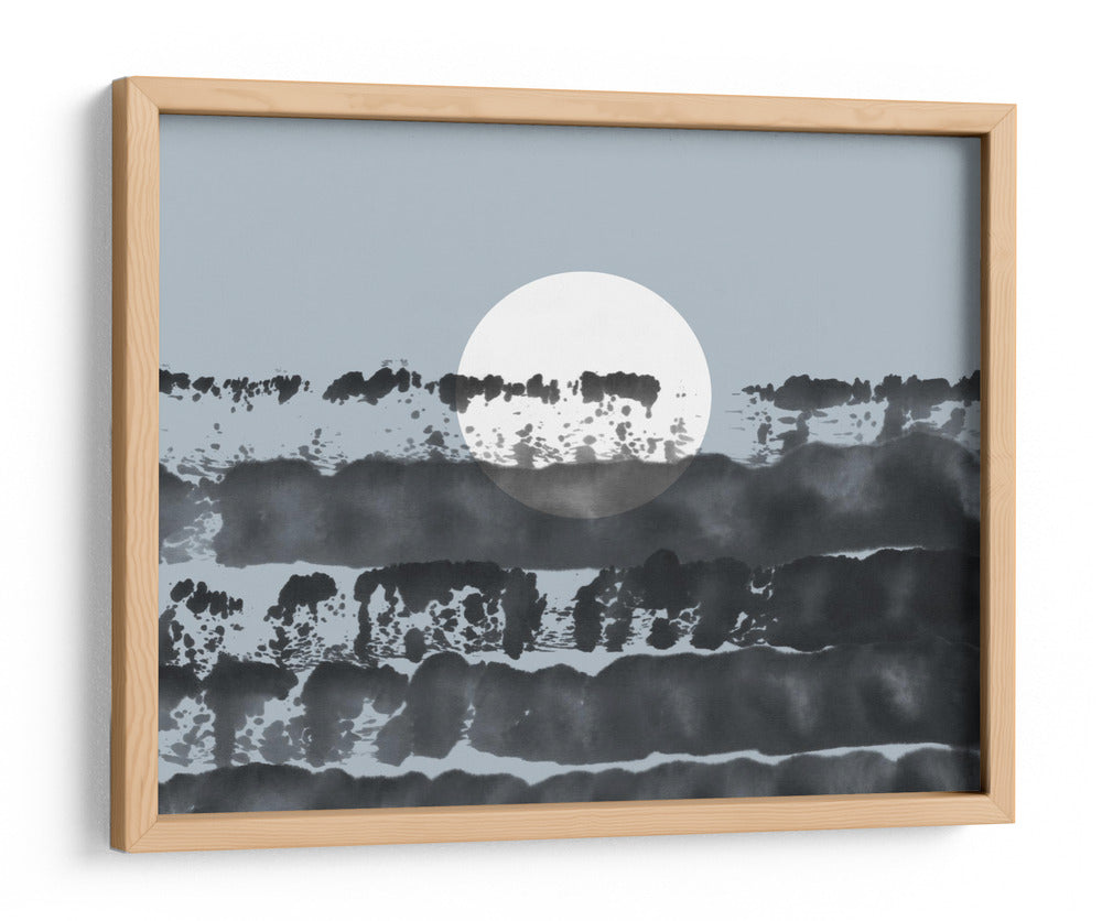 Sumérgete en la enigmática belleza de "Luna Oculta NAd5 | Detrás del Horizonte" de Thoth Adan. Esta cautivadora obra de arte abstracto evoca una profunda sensación de misterio y tranquilidad. La paleta de colores, dominada por serenos tonos grises y azules pálidos, se ve realzada por pinceladas audaces y texturizadas en negro y blanco que simulan un paisaje etéreo o una formación rocosa dramática. La composición central, con un círculo blanco brillante que sugiere una luna o un sol oculto, crea un punto focal intrigante y una atmósfera de expectación. El estilo, que recuerda a la caligrafía oriental o a la pintura a tinta, aporta una elegancia minimalista y moderna. Este cuadro decorativo es ideal para espacios que buscan una conexión con la naturaleza o un toque de sofisticación contemporánea, como salas de estar, estudios u oficinas. "Luna Oculta" invita a la contemplación, ofreciendo una ventana a un mundo introspectivo y sereno, perfecto para añadir profundidad y carácter a cualquier decoración de pared.