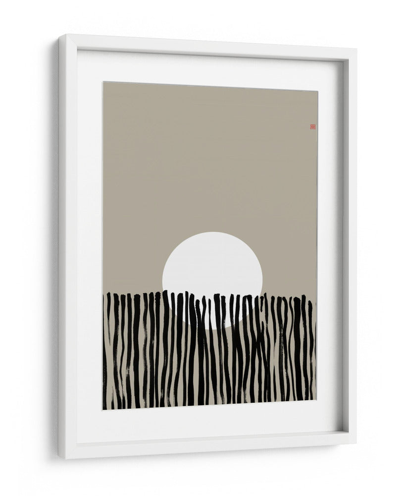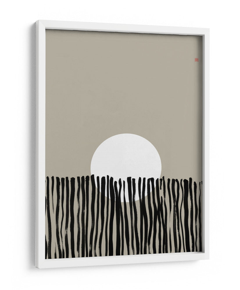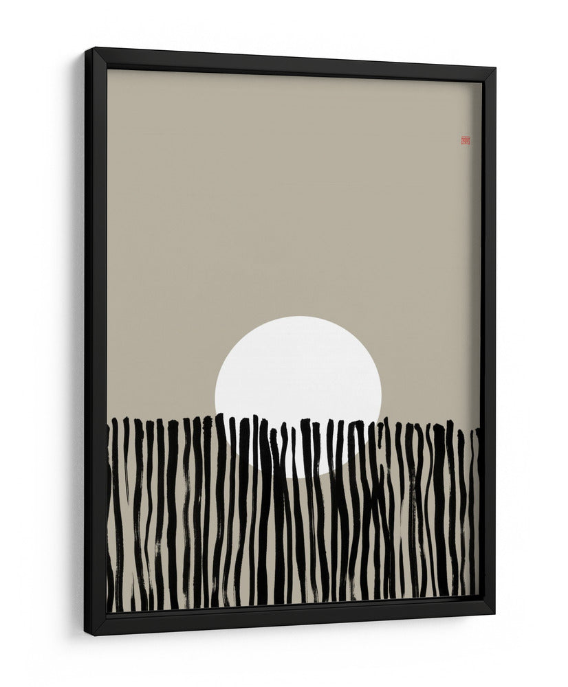 Sumérgete en la serenidad y el misterio de "Luna Oculta NAd6 | Detrás de la Valla" de Thoth Adan. Este cautivador cuadro decorativo presenta una luna blanca y redonda que emerge sutilmente detrás de una serie de trazos verticales negros, evocando una sensación de profundidad y una escena etérea. La paleta de colores, dominada por un suave fondo beige o topo, crea una atmósfera de calma y minimalismo, contrastando de manera impactante con las líneas audaces y expresivas que sugieren una barrera o un horizonte. La composición abstracta invita a la contemplación, permitiendo que cada espectador interprete la narrativa oculta en la obra. Ideal para espacios que buscan un toque de elegancia contemporánea y un punto de reflexión, este cuadro decorativo es perfecto para salones modernos, oficinas tranquilas o dormitorios que inviten a la paz. Su diseño versátil se integra armónicamente con diversas decoraciones, aportando una pieza de arte única que dialoga con el entorno, estimulando la imaginación y añadiendo un carácter distintivo a cualquier pared.
