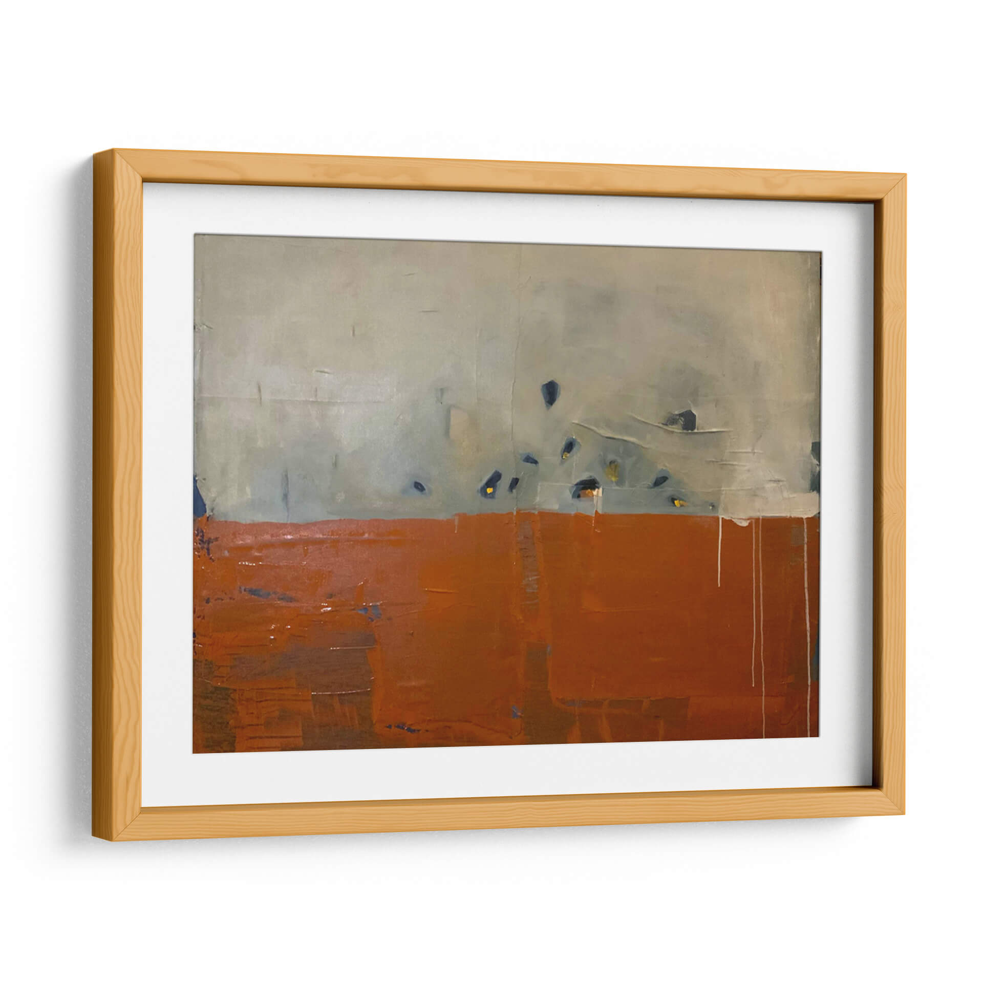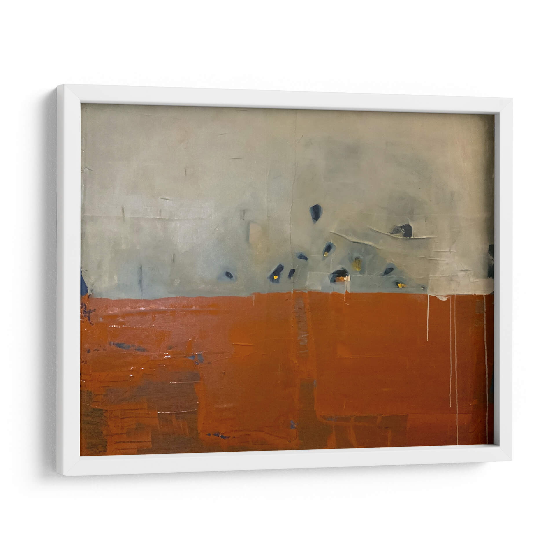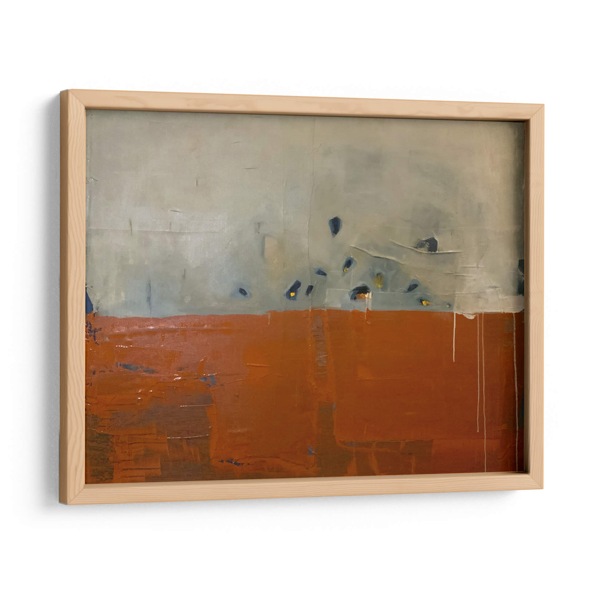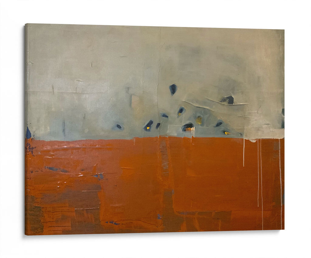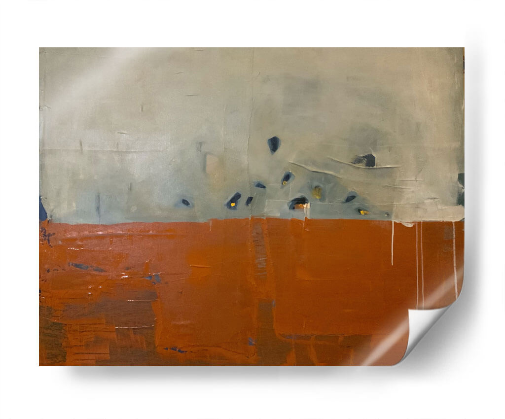Sumérgete en la evocadora obra de arte contemporáneo "Ruinas" de LUNNAWABI, una pieza que captura la esencia de la melancolía y la belleza efímera. Este cuadro decorativo abstracto se caracteriza por una audaz división horizontal, donde una vibrante franja de tonos terracota y óxido domina la parte inferior, sugiriendo tierra o estructuras desgastadas por el tiempo. La parte superior se baña en una atmósfera etérea de grises pálidos y azules desvaídos, creando un contraste sutil pero poderoso. Dispersos en esta zona superior, aparecen elementos oscuros y texturizados, como esquirlas o vestigios de un pasado, acentuados por inesperados toques de amarillo brillante que insinúan esperanza o detalles perdidos. La técnica de LUNNAWABI, marcada por texturas ricas y goteos blancos que caen desde la línea divisoria, añade profundidad y una sensación de impermanencia. "Ruinas" es una invitación a la contemplación, ideal para espacios que buscan un toque de introspección y sofisticación. Transforma tu salón, estudio u oficina con este cuadro abstracto que dialoga con la historia y la naturaleza, aportando un punto focal de profunda resonancia emocional y un estilo artístico único a tu decoración.