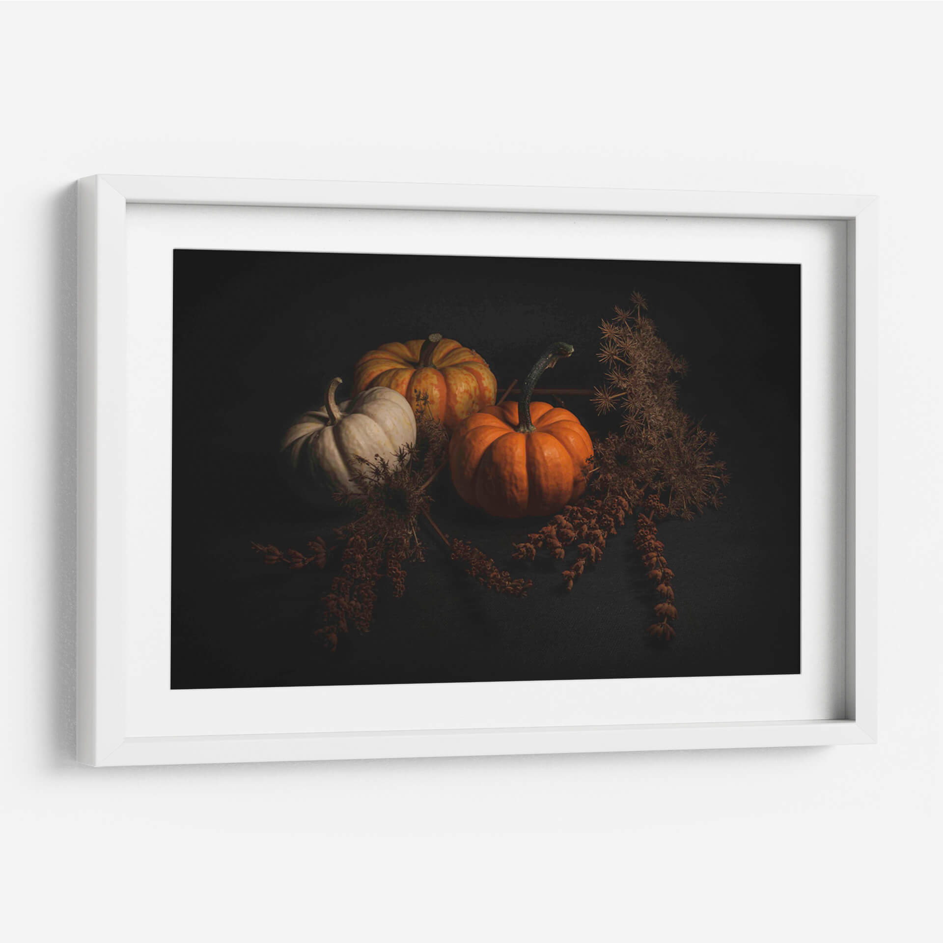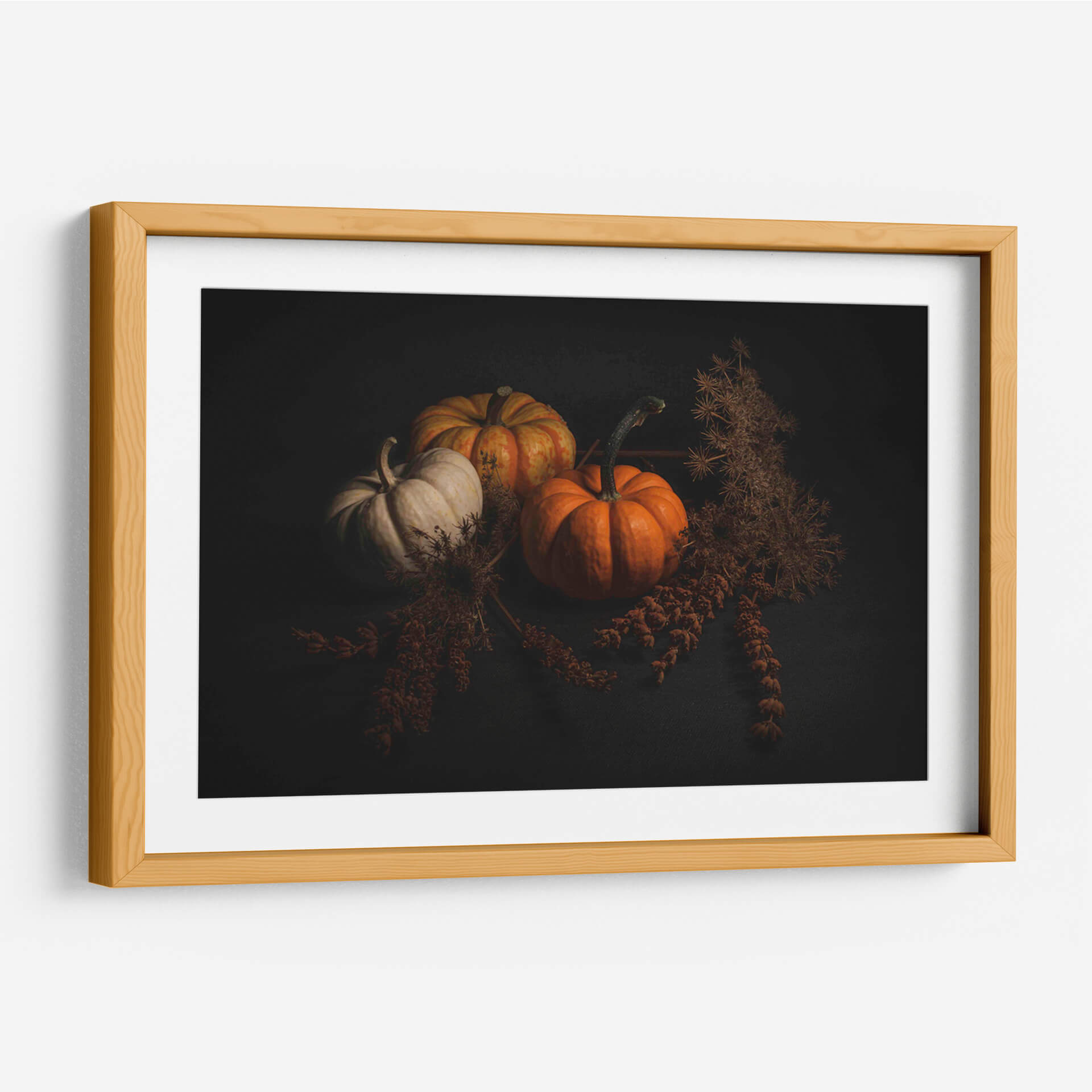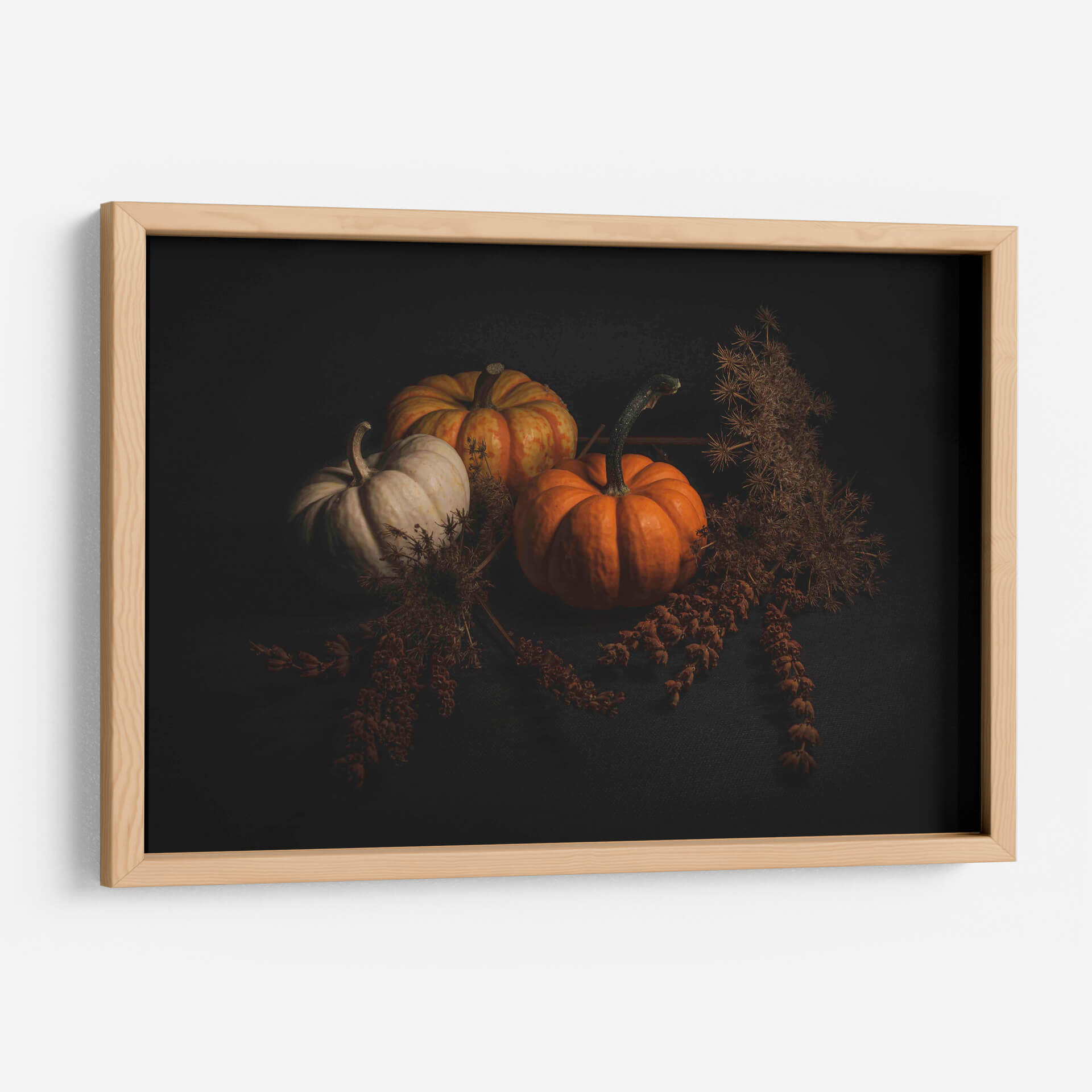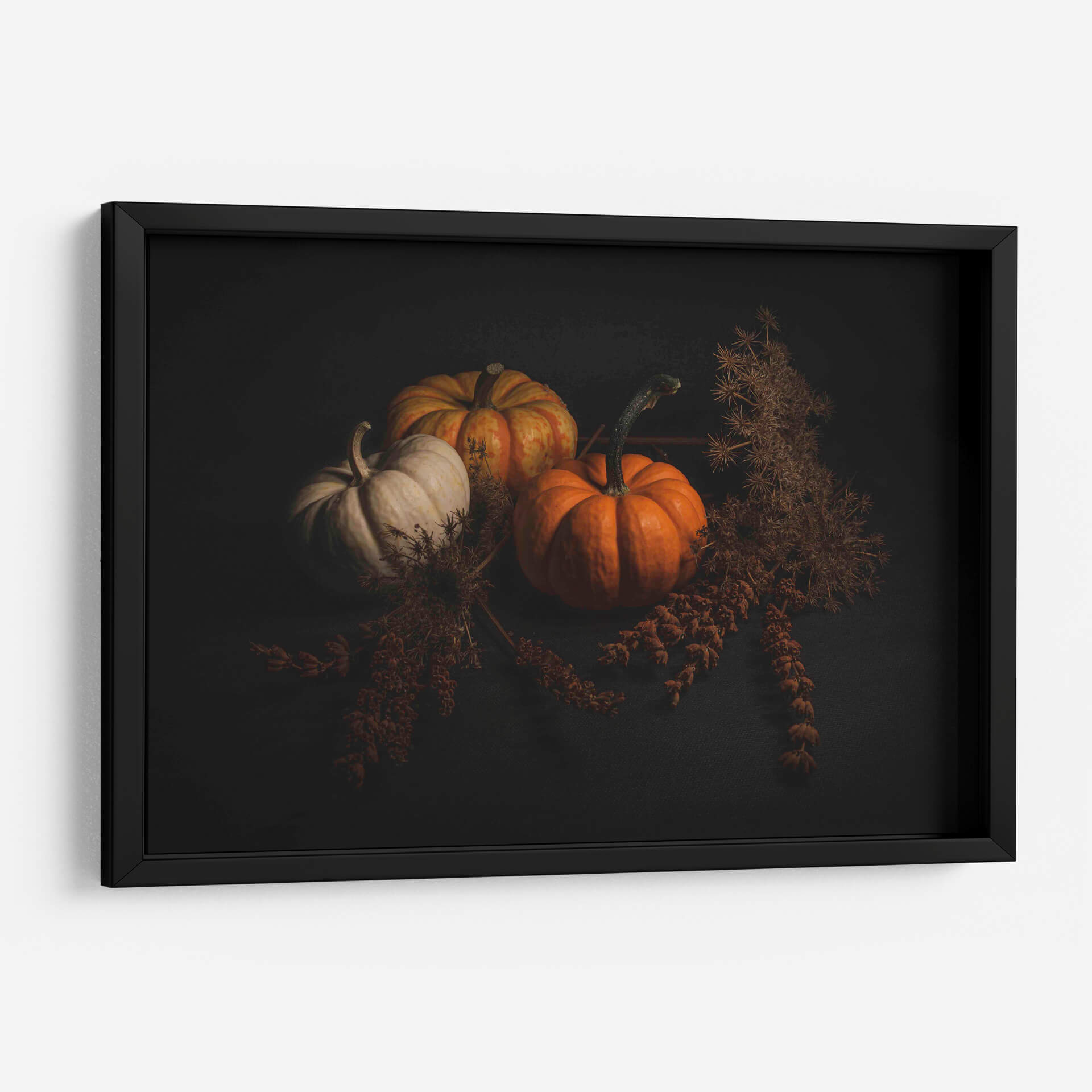Sumérgete en la atmósfera otoñal con "Antes de Halloween", una obra de Cicek Kiral que captura la esencia de la temporada con una elegancia serena. Este cuadro decorativo presenta una composición íntima de calabazas de diversos tonos, desde el naranja vibrante hasta un blanco cremoso, dispuestas junto a delicadas ramas secas de color tierra. La iluminación, sutil y dramática, resalta las texturas y volúmenes de las calabazas, creando un juego de luces y sombras que añade profundidad y misterio a la escena. El fondo oscuro y texturizado sirve para aislar el tema principal, permitiendo que cada detalle de las frutas y las ramas secas cobre protagonismo. El estilo de la obra evoca una sensación de calma y contemplación, ideal para aquellos que buscan añadir un toque de sofisticación rústica a sus espacios. Transmite la calidez y la anticipación de la temporada de cosecha, invitando a la reflexión. "Antes de Halloween" es perfecto para salones, comedores o cualquier rincón que desee un acento de naturaleza y elegancia atemporal. Un cuadro decorativo que celebra la belleza simple y efímera del otoño.