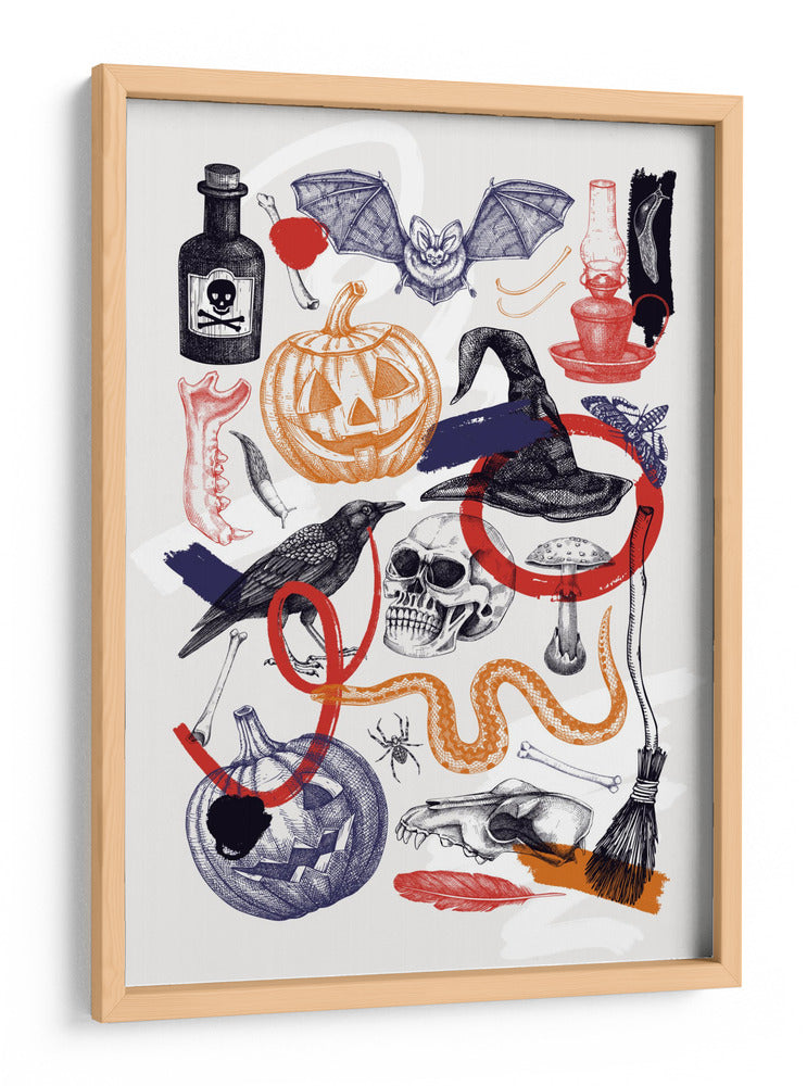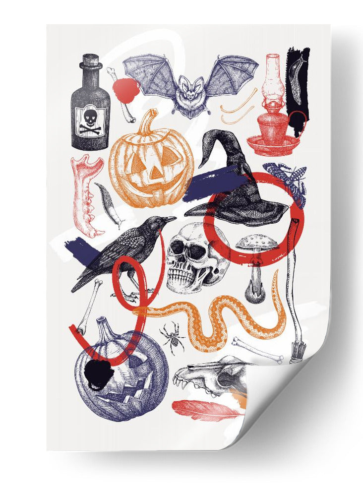 Sumérgete en el espíritu lúdico y misterioso de Halloween con este cautivador cuadro decorativo. La obra, titulada 'Arte de collage de Halloween', es una composición vibrante y detallada que reúne icónicos símbolos de esta festividad. Desde calabazas sonrientes y sombreros de bruja hasta murciélagos en pleno vuelo y cuervos vigilantes, cada elemento está representado con un estilo de grabado que evoca lo clásico y lo macabro a la vez. La paleta de colores, aunque centrada en tonos oscuros como el azul y el negro, se ve salpicada por vibrantes acentos de naranja y rojo, creando un contraste dinámico que atrae la mirada. Los sutiles toques de acuarela y las líneas audaces añaden una dimensión contemporánea a esta temática atemporal. Ideal para quienes buscan añadir un toque de personalidad y un guiño a la temporada de otoño a sus espacios, este cuadro es perfecto para salas de estar, estudios o incluso para dar la bienvenida a los invitados en la entrada. Su naturaleza de collage permite múltiples interpretaciones, fusionando lo divertido con lo inquietante de una manera artísticamente equilibrada. Transforma tu hogar con esta pieza única que celebra la magia y el encanto de Halloween durante todo el año, ofreciendo un punto focal intrigante y lleno de carácter.