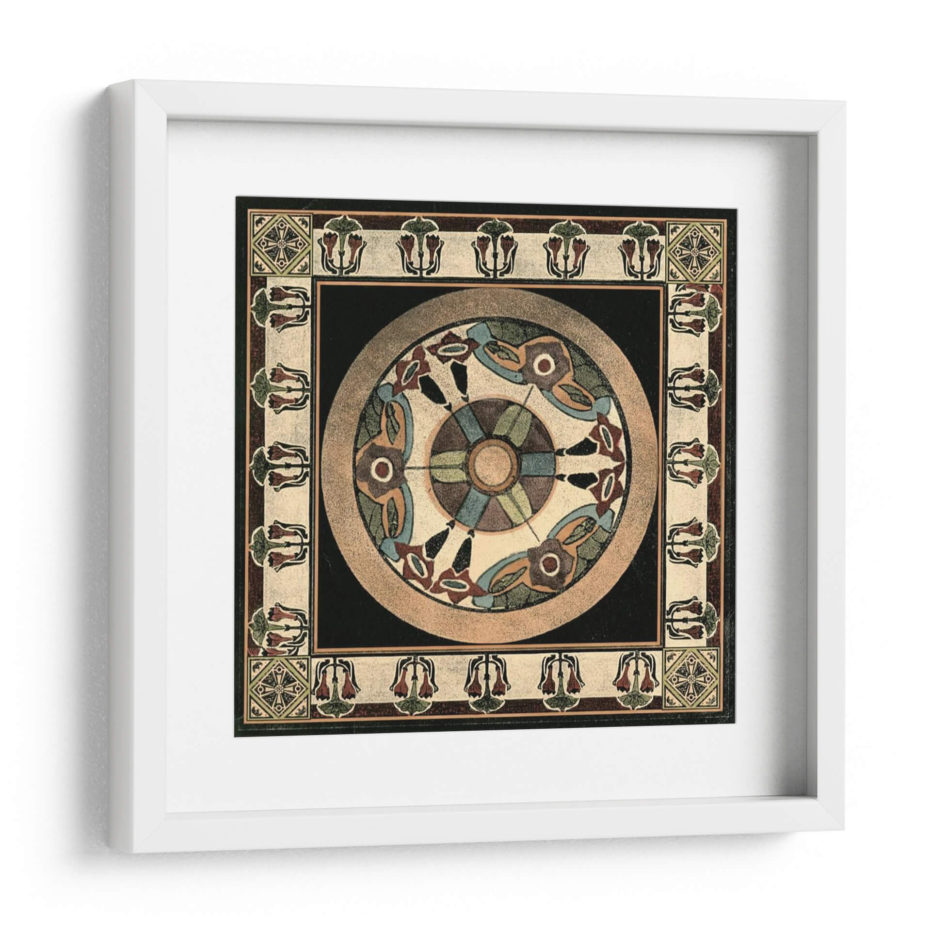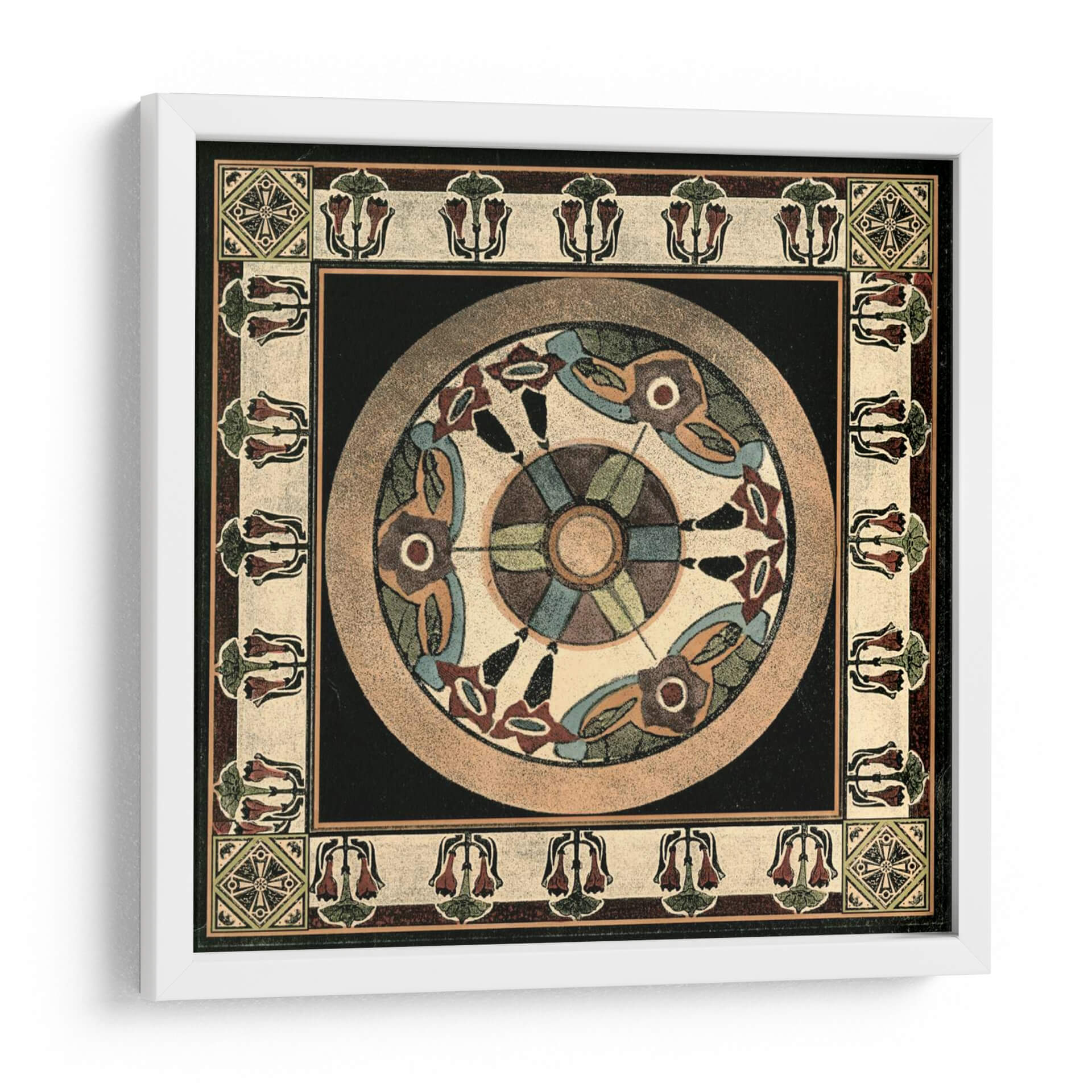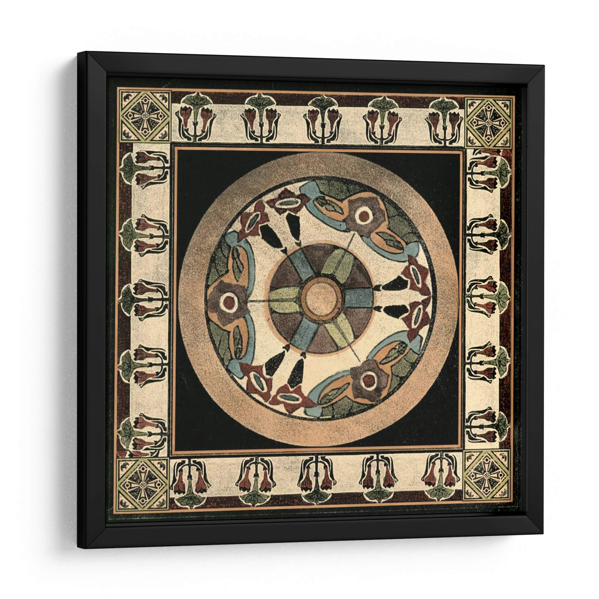 Transforma tu espacio con el cautivador cuadro decorativo 'Artes Y Oficios Motif IV', una obra maestra de Vision Studio. Esta pieza, inspirada en motivos artesanales y diseños geométricos, presenta una armoniosa paleta de colores tierra, azules y toques de burdeos, que evocan una sensación de calma y sofisticación. La composición circular central, rodeada por un intrincado borde floral y patrones geométricos, añade profundidad y un aire de misterio, lo que lo convierte en un punto focal ideal para cualquier habitación. Su estilo, que recuerda a las artes decorativas de principios de siglo, aporta un toque de elegancia atemporal y un aire de historia a tu hogar u oficina. Imagina este cuadro decorativo como el centro de atención en tu sala de estar, aportando un aire de tranquilidad y refinamiento, o como un elemento inspirador en tu estudio. Su diseño detallado y su rica textura visual invitan a la contemplación, ofreciendo una experiencia estética única que complementa tanto la decoración moderna como la clásica. Añade 'Artes Y Oficios Motif IV' a tu colección y eleva la atmósfera de tu entorno con su belleza artística y su resonancia cultural, un verdadero testimonio del arte contemporáneo con raíces profundas.