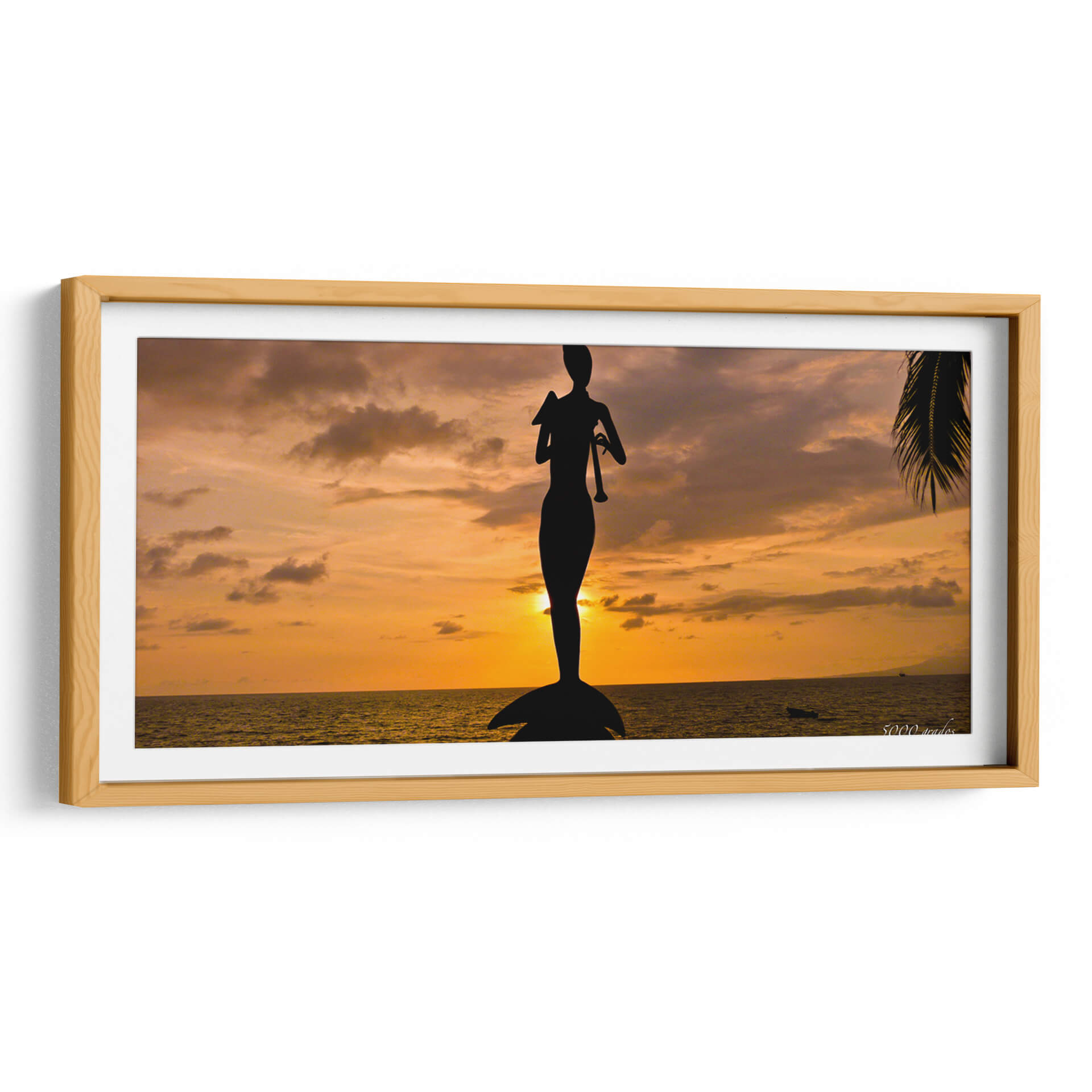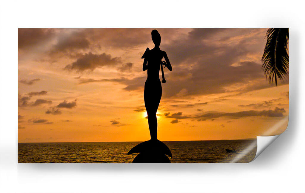 Capture la magia de un atardecer tropical con este cautivador cuadro decorativo "Atardecer en Vallarta", una obra que evoca la serenidad y la belleza de un paraíso costero. La pieza presenta una silueta elegante de una sirena, bañada por los cálidos tonos anaranjados y dorados del sol poniente. El cielo, adornado con nubes dramáticas, se funde con el mar tranquilo, creando una atmósfera de ensueño y paz. La figura central, definida por un contraste oscuro contra el vibrante cielo, añade un toque de misterio y fantasía, invitando a la contemplación. Este cuadro decorativo es ideal para añadir un punto focal de color y tranquilidad a cualquier estancia, ya sea un salón moderno, un dormitorio acogedor o una oficina que necesite un soplo de inspiración marina. Su estilo, que combina elementos figurativos con una paleta de colores impresionista, lo convierte en una pieza versátil capaz de complementar diversos estilos de decoración. "Atardecer en Vallarta" no es solo una imagen, es una invitación a soñar despierto y a transportarse a un lugar de calma y belleza eterna, transformando su espacio en un refugio personal.