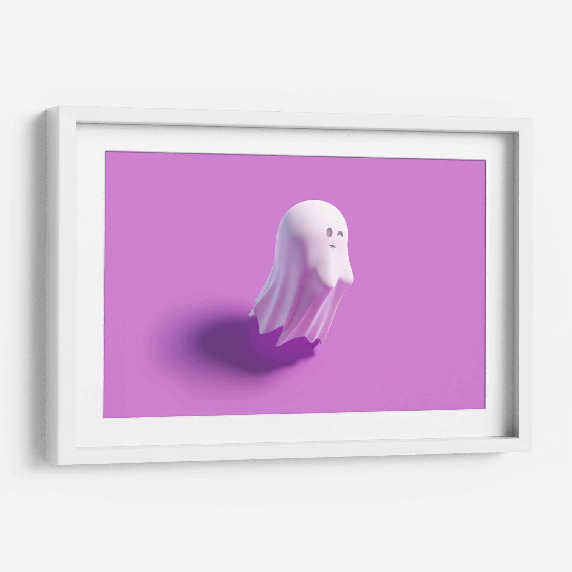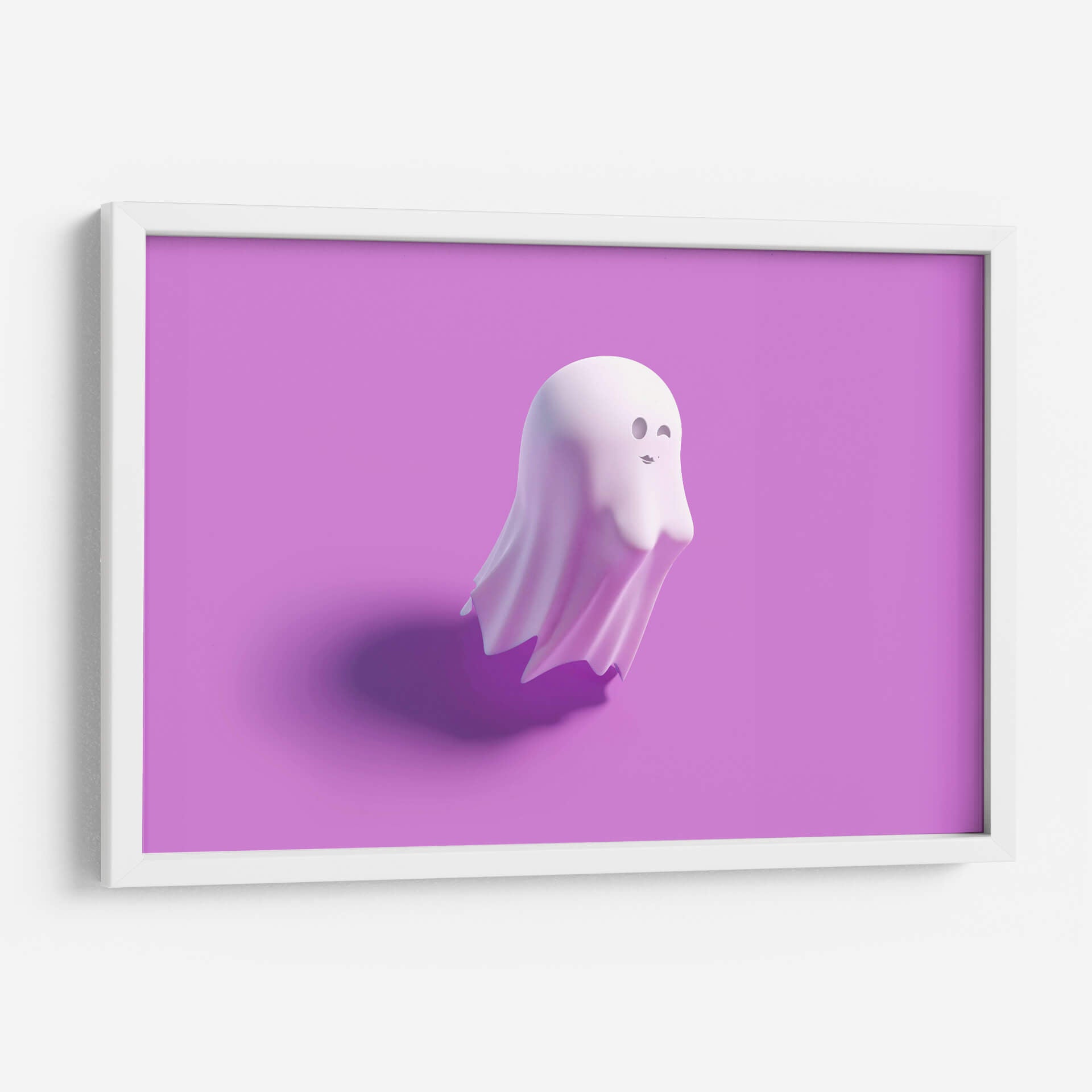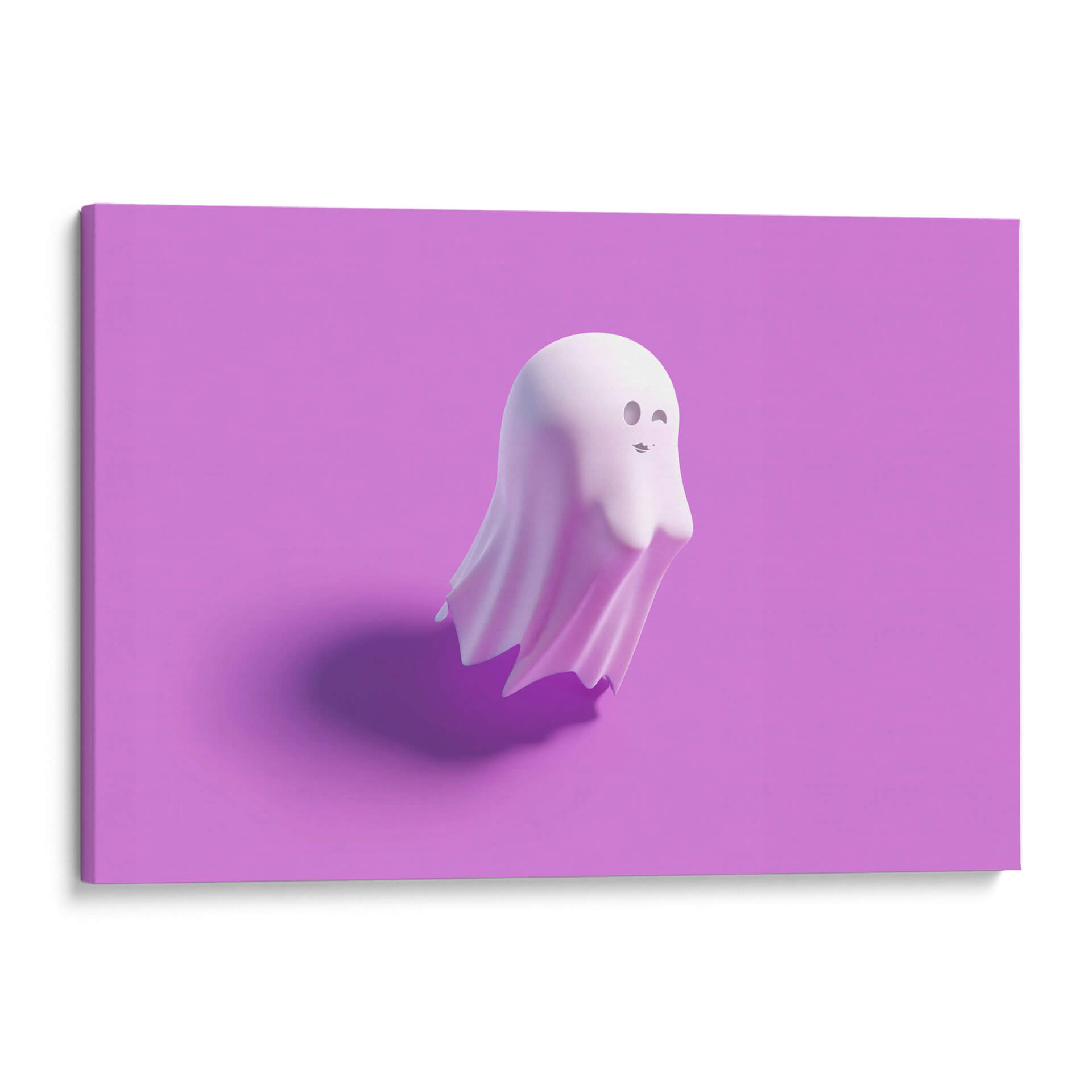 Descubre la encantadora obra 'B-o-o-bs, horizontal' de Artem Pozdniakov, un cuadro decorativo que irradia una dulzura juguetona y un estilo contemporáneo único. Esta pieza presenta una figura estilizada, similar a un fantasma, con un acabado suave y translúcido en un delicado tono pastel. La composición minimalista, sobre un fondo liso de color lavanda intenso, resalta la forma etérea del personaje, que guiña un ojo y muestra una pequeña boca con labios pintados, añadiendo un toque de picardía y personalidad. La iluminación sutil crea una sombra suave y definida en la superficie, aportando profundidad y un toque de realismo a la figura casi etérea. La paleta de colores, centrada en el lavanda y los tonos pálidos de la figura, evoca una sensación de calma, inocencia y diversión. Es una pieza perfecta para añadir un toque de originalidad y alegría a cualquier espacio, desde una habitación infantil hasta una sala de estar moderna o una oficina creativa. Este cuadro decorativo es ideal para quienes buscan arte que provoque una sonrisa y rompa con lo convencional, ofreciendo una dosis de encanto y buen humor en la decoración de interiores. Su simplicidad y el carisma del personaje lo convierten en un punto focal memorable.