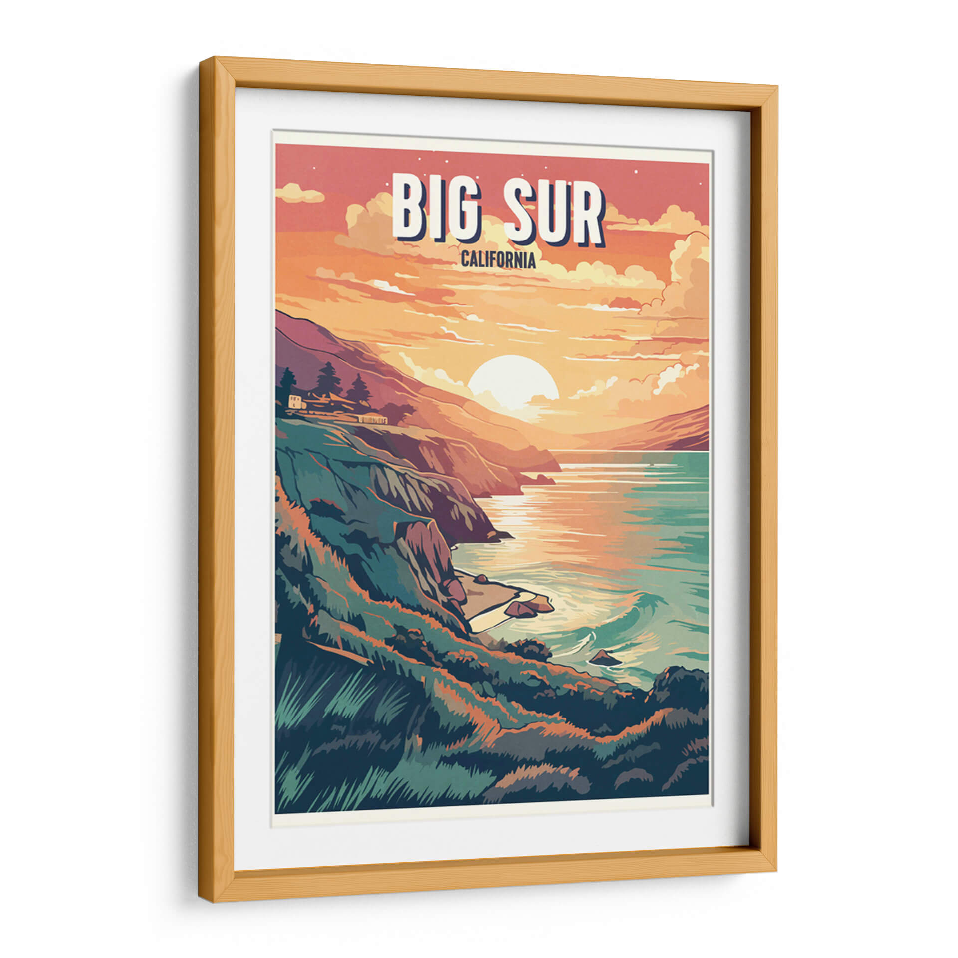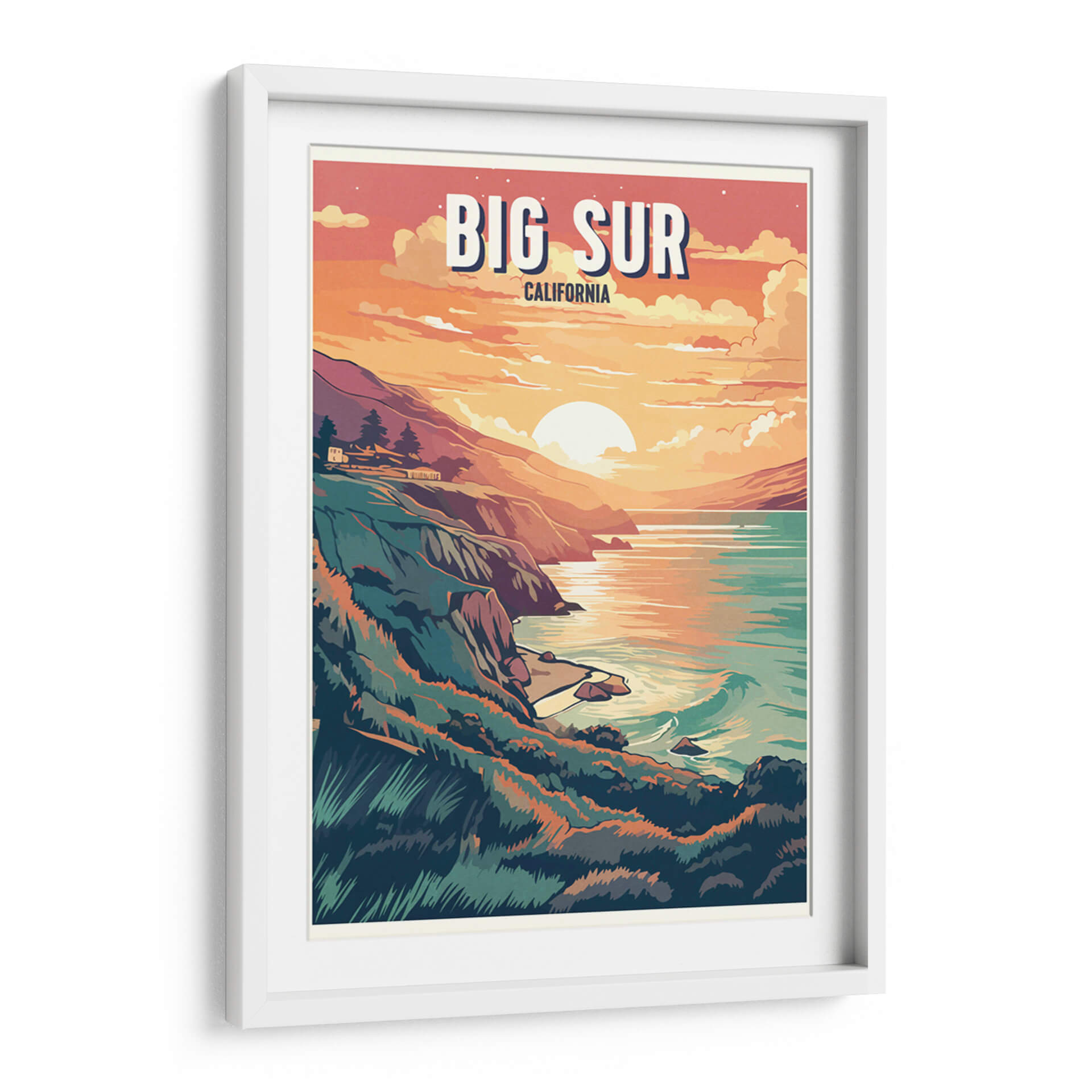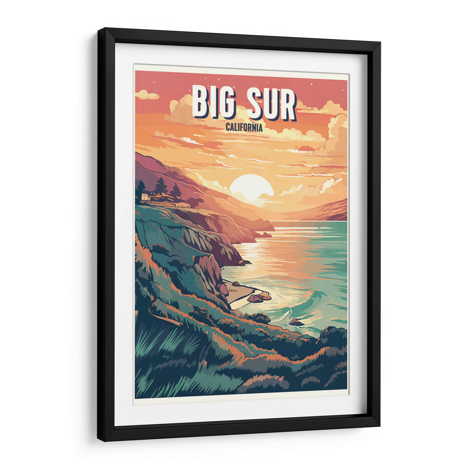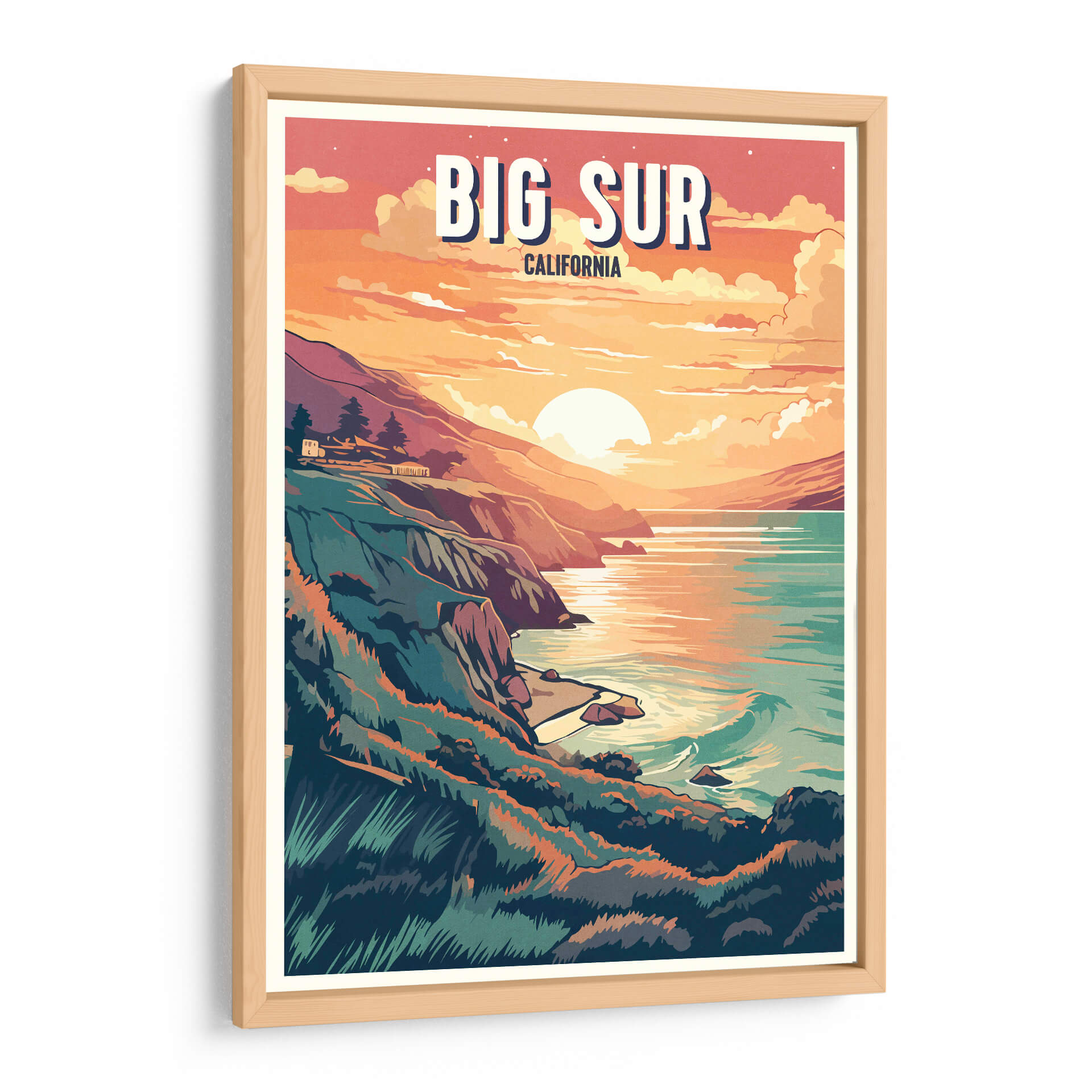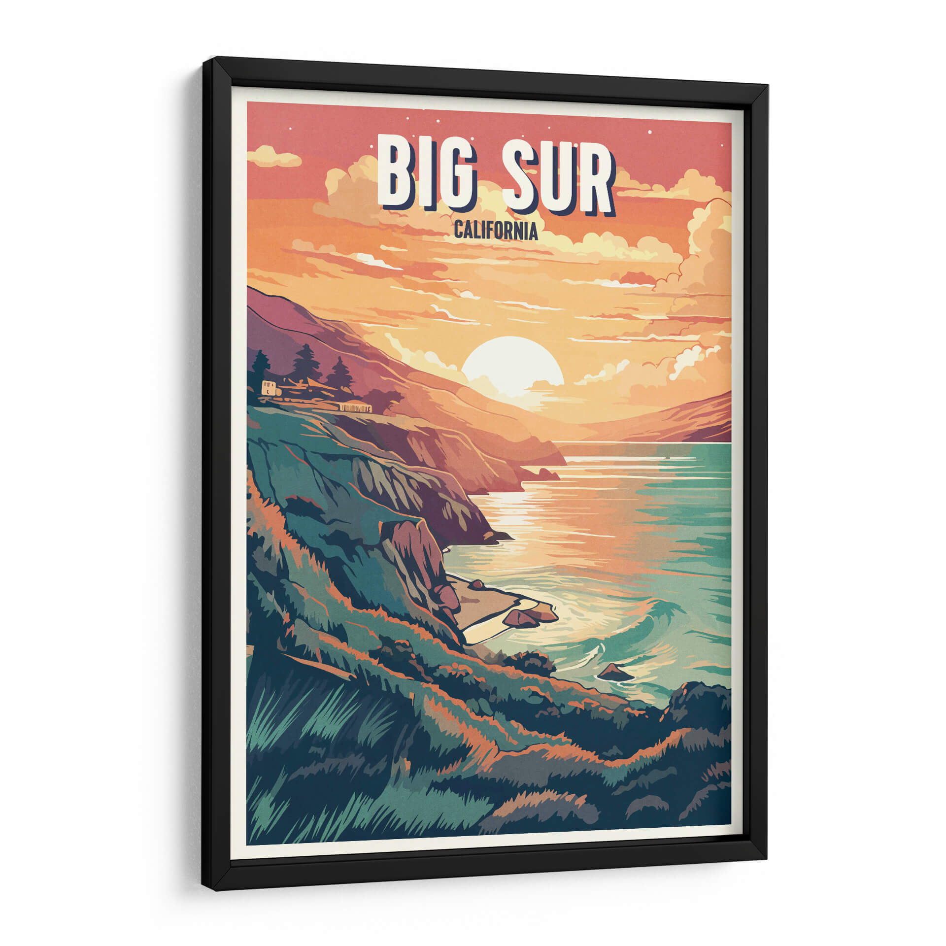 Sumérgete en la majestuosidad costera con nuestro cuadro decorativo "Big Sur". Esta obra captura la esencia de la legendaria costa de California, evocando un atardecer vibrante sobre el océano Pacífico. Los tonos cálidos del cielo, que transitan del naranja al rosa y se reflejan en las aguas turquesas, crean una atmósfera de serenidad y asombro. Las formaciones rocosas escarpadas, cubiertas por una vegetación exuberante en tonos verdes y ocres, contrastan con la calma del mar, salpicado por el suave oleaje. El estilo gráfico y estilizado de Thomas Chedeville dota a la escena de una profundidad y un carácter únicos, transformando un paisaje familiar en una pieza de arte cautivadora. Ideal para espacios que buscan transmitir paz y la belleza de la naturaleza, como salones, dormitorios o estudios. Este cuadro decorativo es una invitación a soñar con viajes y aventuras, aportando un toque de color y emoción a tu hogar u oficina. Añade una ventana a uno de los lugares más icónicos de América con "Big Sur", una obra que inspira y embellece cada rincón.