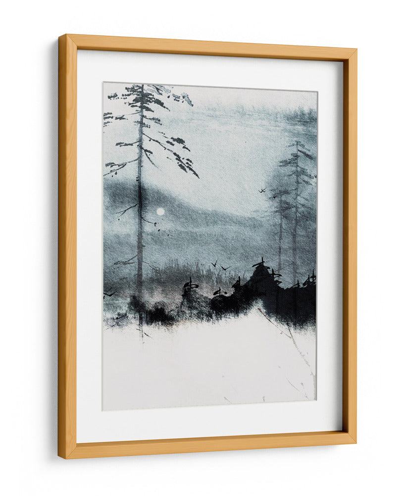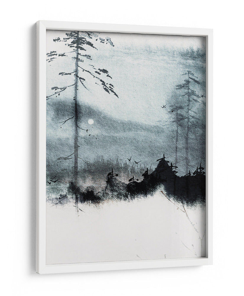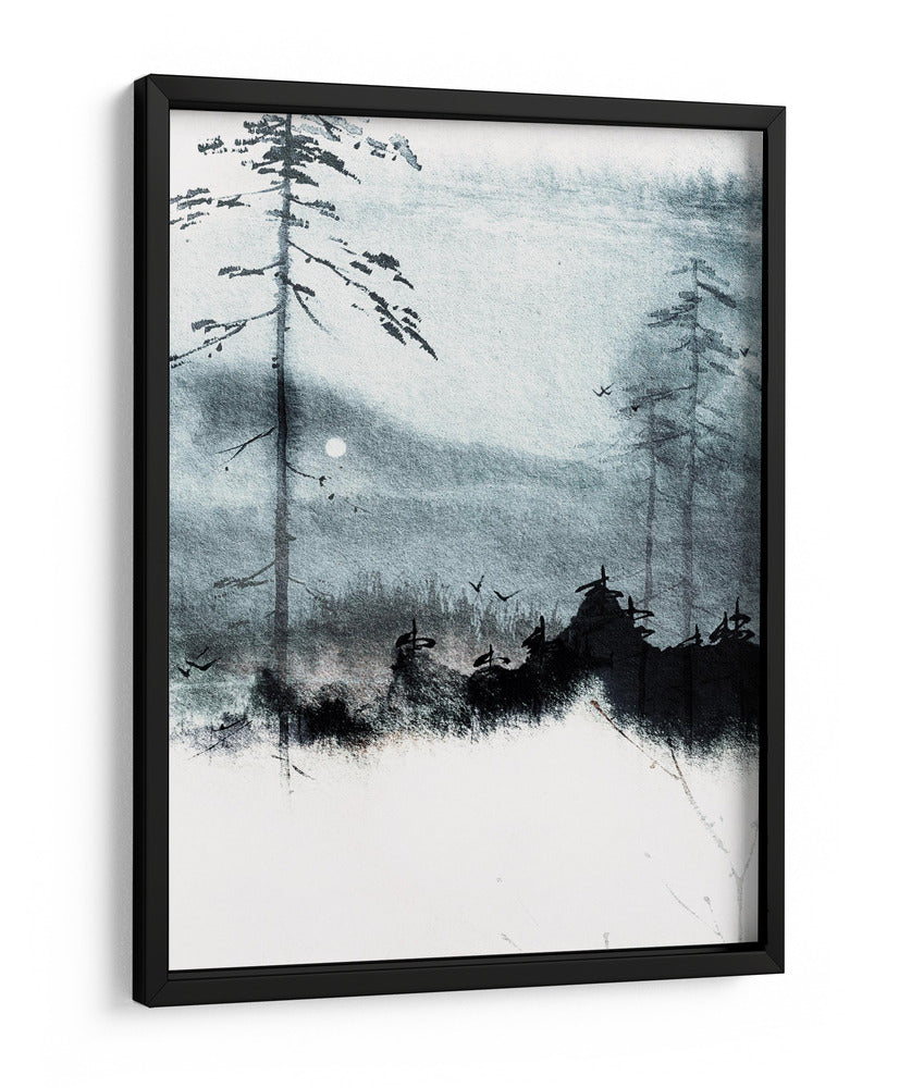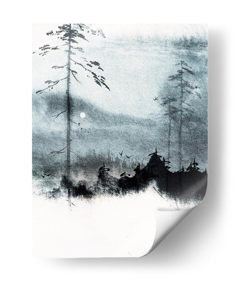 Sumérgete en la enigmática serenidad de "Bosque Iluminado por la Luna", una obra de arte que captura la atmósfera etérea de un paisaje nocturno. El artista Treechild nos transporta a un bosque profundo donde los árboles esbeltos se alzan como guardianes silenciosos bajo un cielo velado por la luz lunar. La paleta de colores, dominada por grises profundos, negros intensos y toques de blanco puro, evoca una sensación de calma, misterio y introspección. Las pinceladas sueltas y expresivas, reminiscentes de la técnica de acuarela o tinta, añaden una textura sutil y un dinamismo a la composición. Las siluetas oscuras de los árboles en primer plano contrastan con las formas más difuminadas del fondo, creando una profundidad cautivadora. Pequeños pájaros en vuelo añaden un toque de vida a esta escena tranquila. Este cuadro decorativo es ideal para crear un rincón de paz en tu hogar, aportando elegancia y un aire de contemplación a tu sala de estar, dormitorio o estudio. Su estilo abstracto y su atmósfera evocadora lo convierten en una pieza versátil que complementa tanto decoraciones modernas como clásicas, invitando a la reflexión y al disfrute visual.