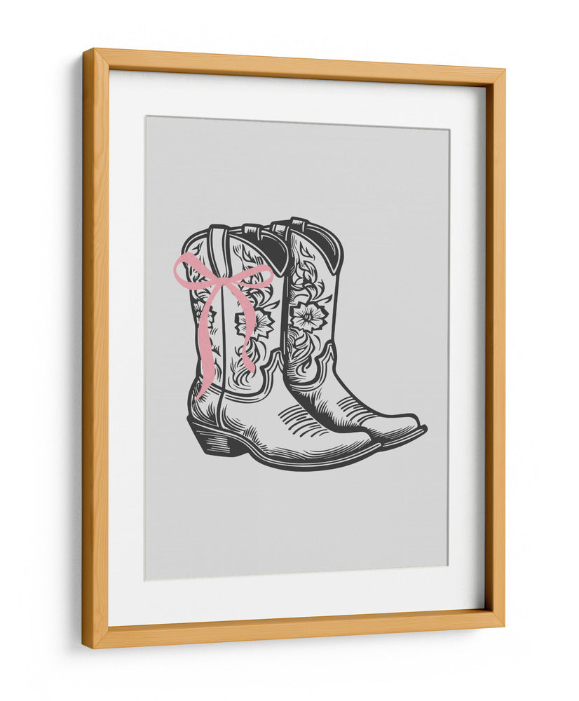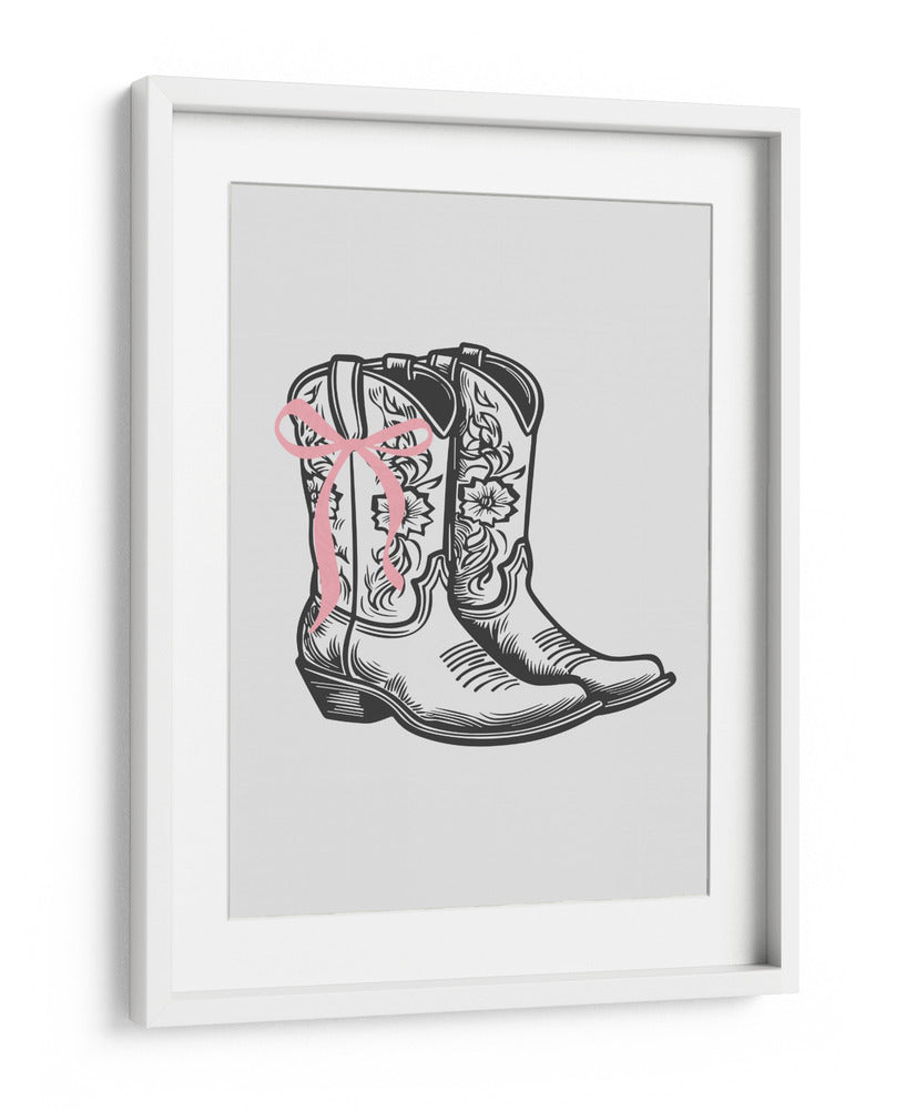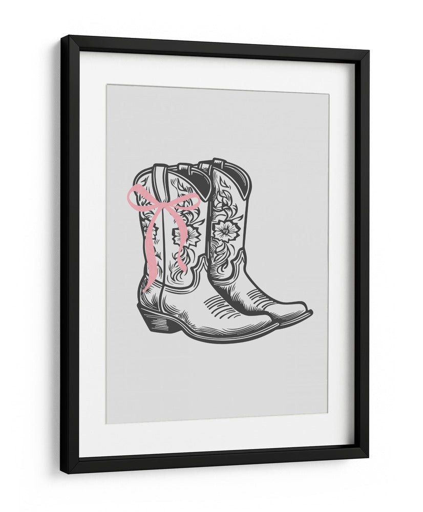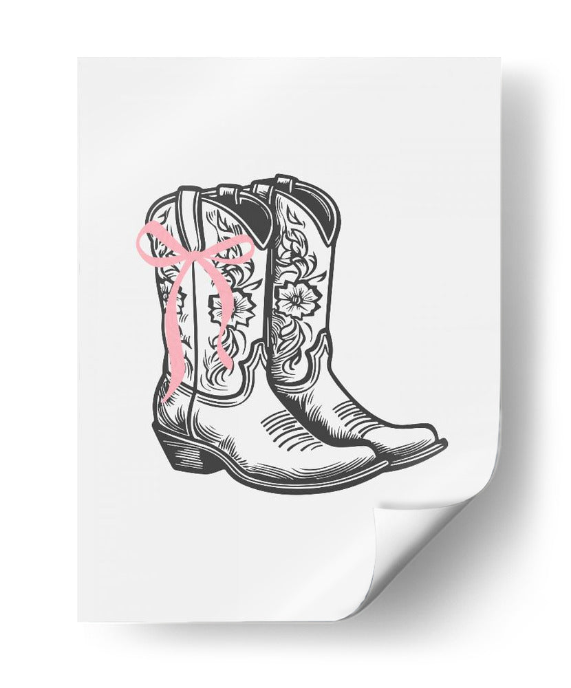 Añade un toque de encanto y estilo distintivo a tu espacio con este cautivador cuadro decorativo que presenta unas botas negras de vaquera adornadas con un delicado lazo rosa. La obra de arte, con su intrincado diseño de estilo grabado, evoca una sensación de nostalgia y carácter, mientras que el vibrante acento rosa aporta un toque de dulzura y feminidad. Las detalladas texturas y las líneas definidas de las botas, junto con los motivos florales grabados, crean una pieza visualmente rica que atrae la mirada. Este cuadro decorativo es perfecto para quienes buscan infundir personalidad en su hogar u oficina. Su estética única lo hace ideal para salas de estar, dormitorios o incluso un estudio creativo, añadiendo un punto focal que inspira conversación y refleja un gusto por lo audaz y lo elegante. Imagina esta pieza añadiendo un toque de estilo western moderno a una pared neutra, o complementando una decoración ecléctica con su singularidad. Es una elección excepcional para quienes aprecian el arte que combina lo rústico con lo refinado.