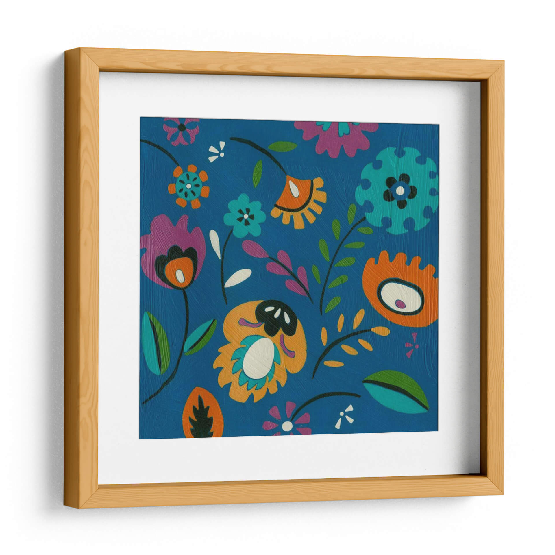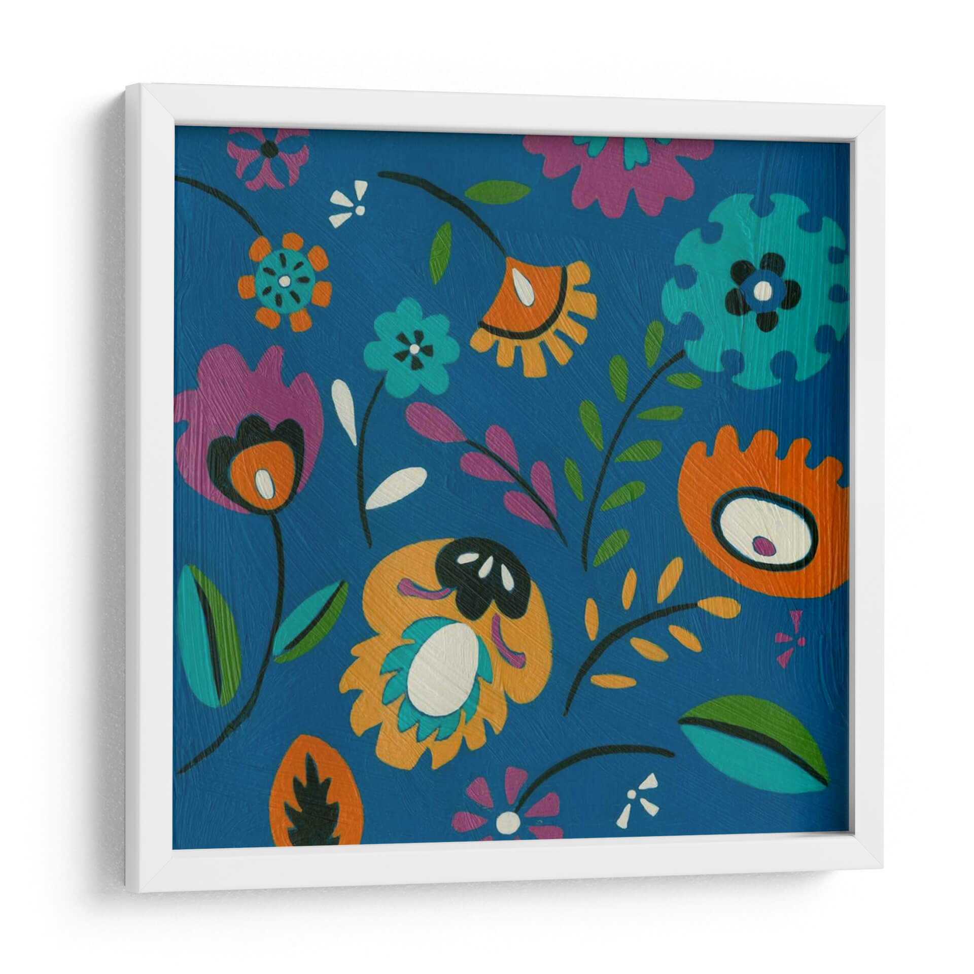 Sumérgete en la vibrante y alegre obra de arte "Calliope III" de Chariklia Zarris, un cuadro decorativo que irradia vitalidad y un espíritu juguetón. Esta pieza abstracta presenta un exuberante jardín de flores estilizadas y elementos botánicos en una paleta de colores audaz y contrastante. Predominan los azules profundos del fondo, que sirven como lienzo perfecto para las explosiones de color de las flores en tonos fucsia, naranja, turquesa y amarillo. Las formas son orgánicas y fluidas, con contornos marcados que aportan una cualidad gráfica y moderna a la composición. Cada flor parece tener su propia personalidad, desde las más grandes y llamativas hasta las pequeñas y delicadas, creando un patrón rítmico y cautivador. "Calliope III" es ideal para infundir energía y un toque artístico único en cualquier espacio, ya sea una sala de estar moderna, un dormitorio lleno de personalidad o una oficina creativa. Este cuadro decorativo no solo embellece, sino que también invita a la contemplación y a la apreciación de la belleza en su forma más pura y colorida, convirtiéndose en un punto focal inolvidable.