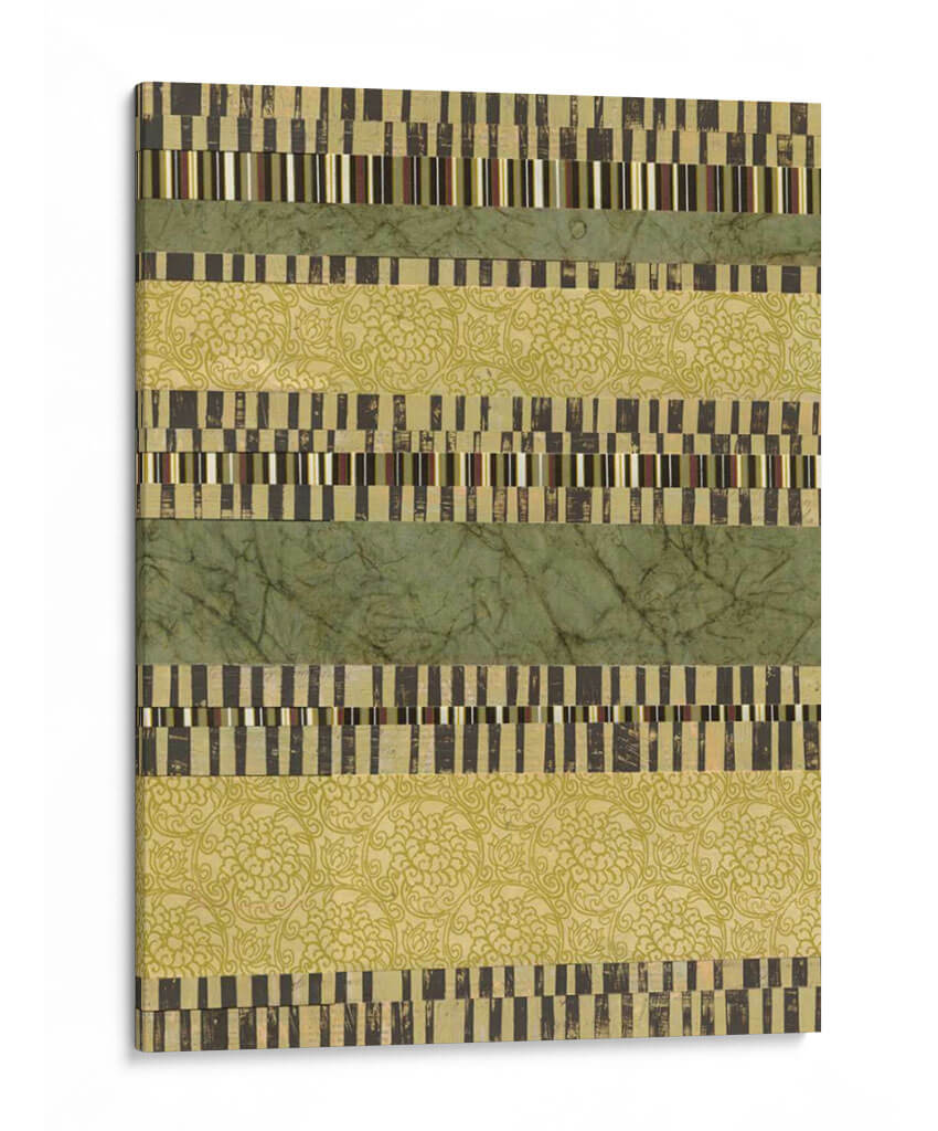Sumérgete en la serenidad y el orden visual con 'Capas Lineal I', una obra de arte contemporáneo de Jennifer Goldberger que redefine la abstracción a través de la textura y el color. Esta pieza cautiva con su disposición horizontal de capas, cada una presentando un patrón único que invita a la contemplación. La paleta de colores, dominada por tonos tierra, verdes musgo y toques de sepia y ocre, evoca una sensación de calma natural y sofisticación. Los patrones varían desde sutiles texturas marmoleadas y orgánicas hasta bandas de líneas verticales y rectangulares de diferente grosor y color, creando un ritmo visual fascinante y una profundidad intrigante. 'Capas Lineal I' es una excelente elección para quienes buscan añadir un elemento de diseño abstracto y orgánico a su hogar u oficina. Su composición equilibrada y su paleta de colores armoniosa la hacen ideal para salas de estar modernas, dormitorios que buscan tranquilidad o espacios de trabajo que necesitan inspiración sin distracciones. Este cuadro decorativo no solo embellece, sino que también estimula la mente, ofreciendo un diálogo silencioso entre la forma y el color. Descubre cómo esta obra puede transformar tu ambiente, aportando un toque de arte contemporáneo con raíces en la naturaleza y el diseño textil.