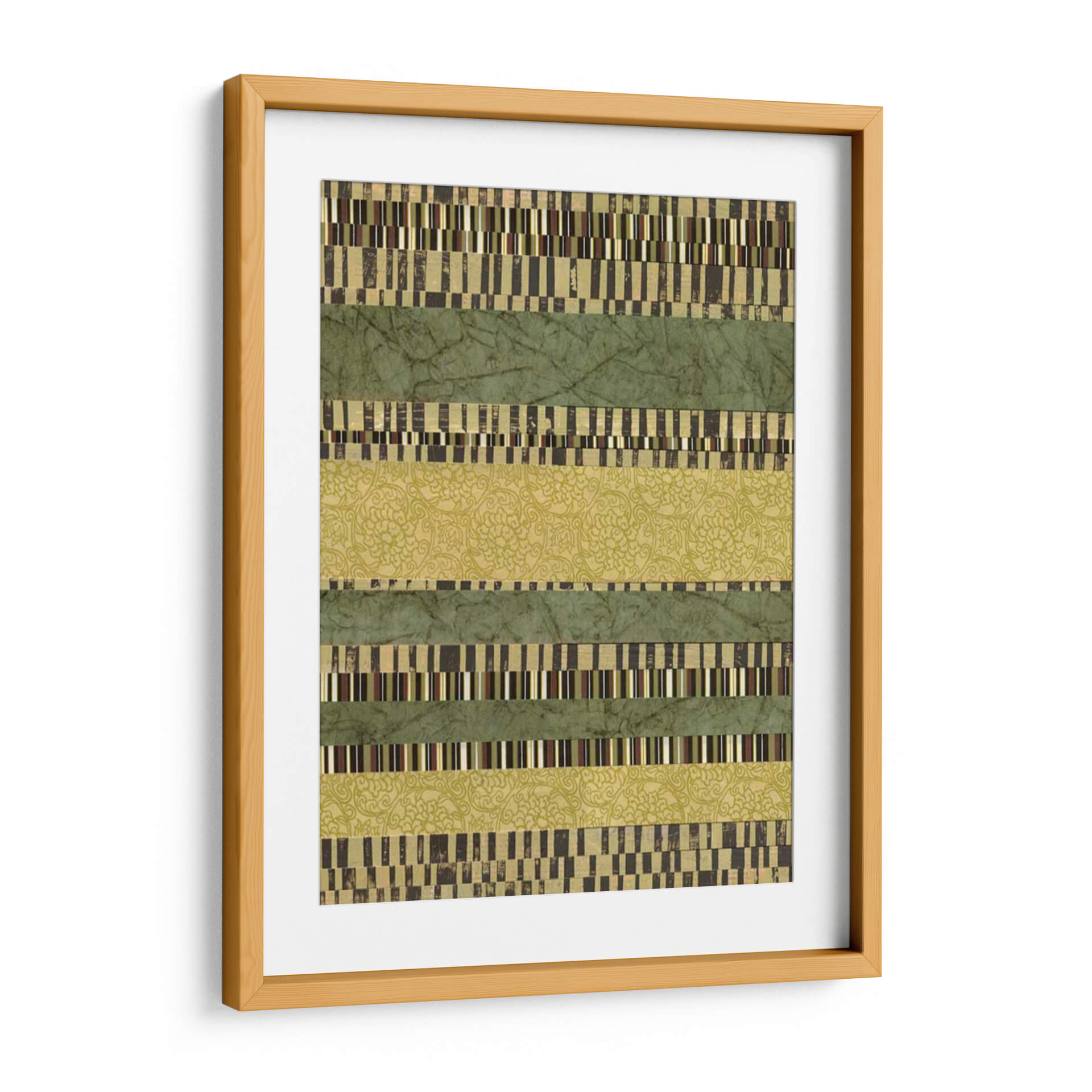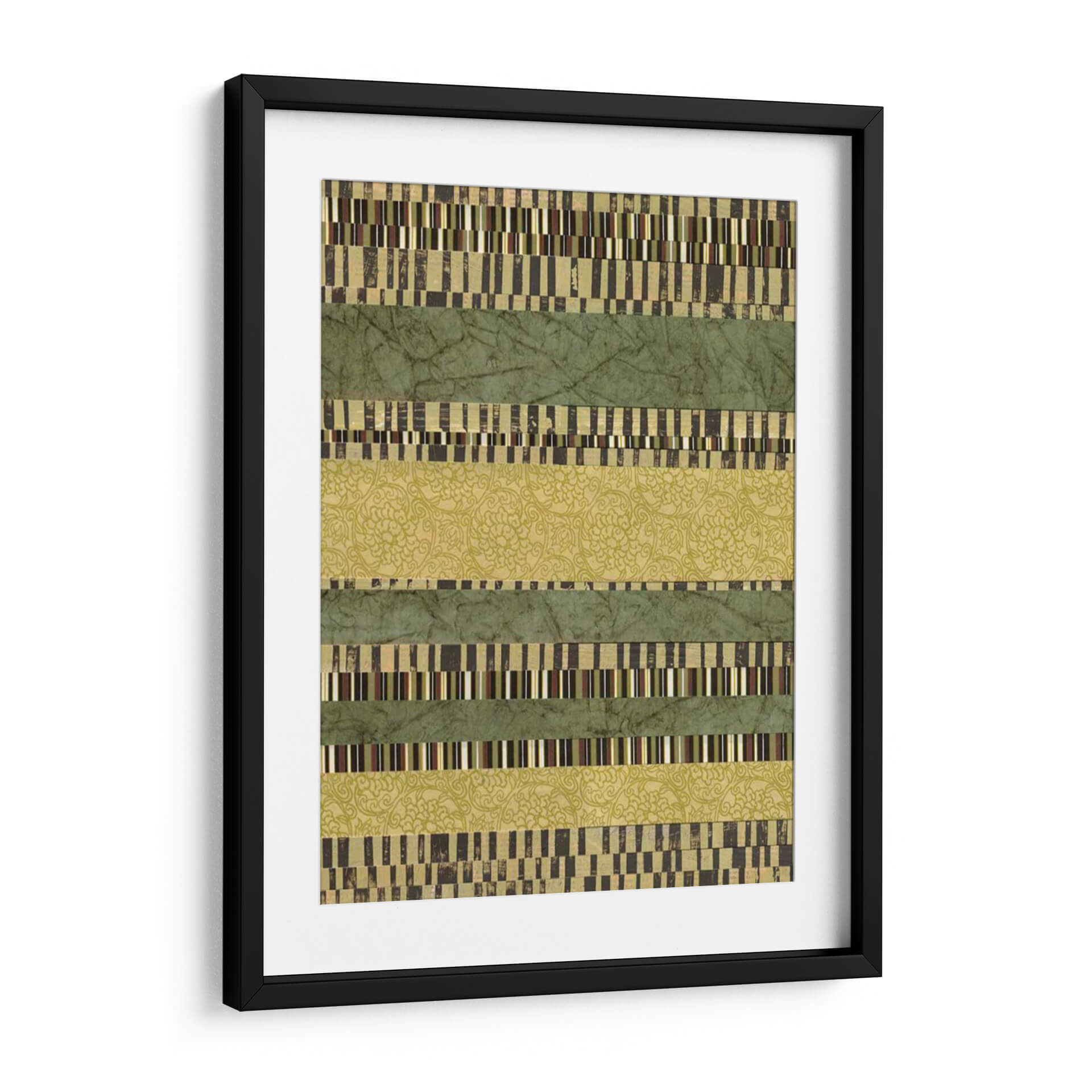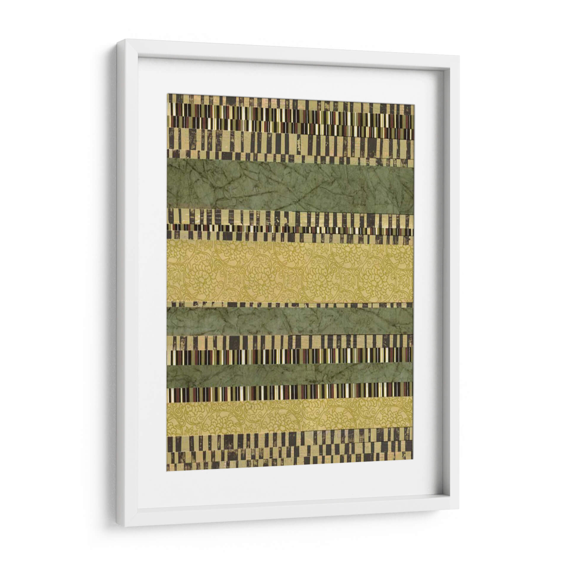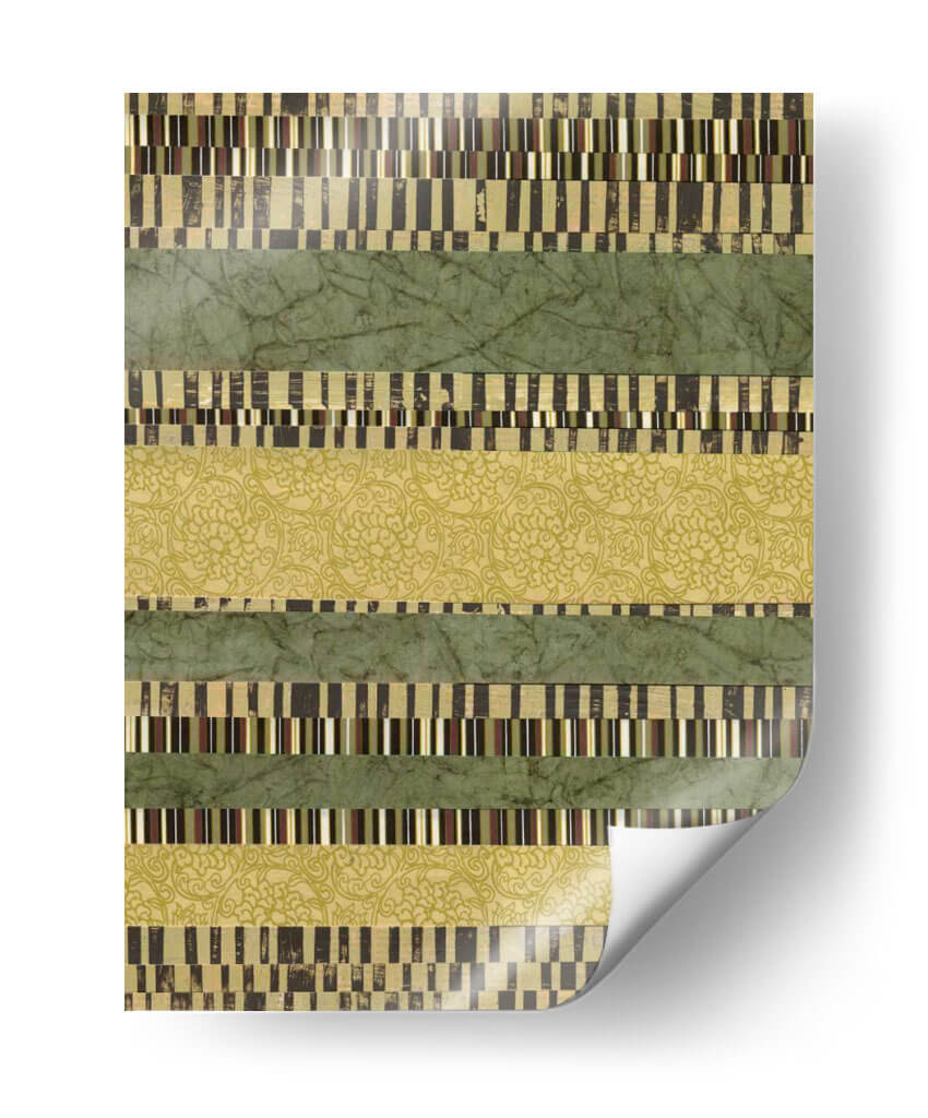 Sumérgete en la serenidad y el orden visual con "Capas Lineales II", una obra de arte contemporáneo de Jennifer Goldberger que redefine la abstracción geométrica. Esta pieza cautiva con su estructura de bandas horizontales, donde se entrelazan texturas y patrones que invitan a la contemplación. Las franjas verdes, en tonos musgo y esmeralda, evocan la calma de la naturaleza, mientras que las capas intercaladas de patrones intrincados y bloques de color rectangulares añaden profundidad y un toque de sofisticación. La paleta de colores, dominada por verdes terrosos y acentos dorados y marrones, crea una atmósfera de equilibrio y armonía, perfecta para cualquier espacio que busque transmitir tranquilidad y elegancia. "Capas Lineales II" es más que un simple cuadro decorativo; es una invitación a explorar la belleza de la repetición, la variación y la composición lineal. Ideal para salones modernos, oficinas o dormitorios, este cuadro decorativo aporta un toque de diseño contemporáneo y una sensación de paz. Añade esta pieza única a tu colección y transforma tu hogar en un santuario de estilo y serenidad.