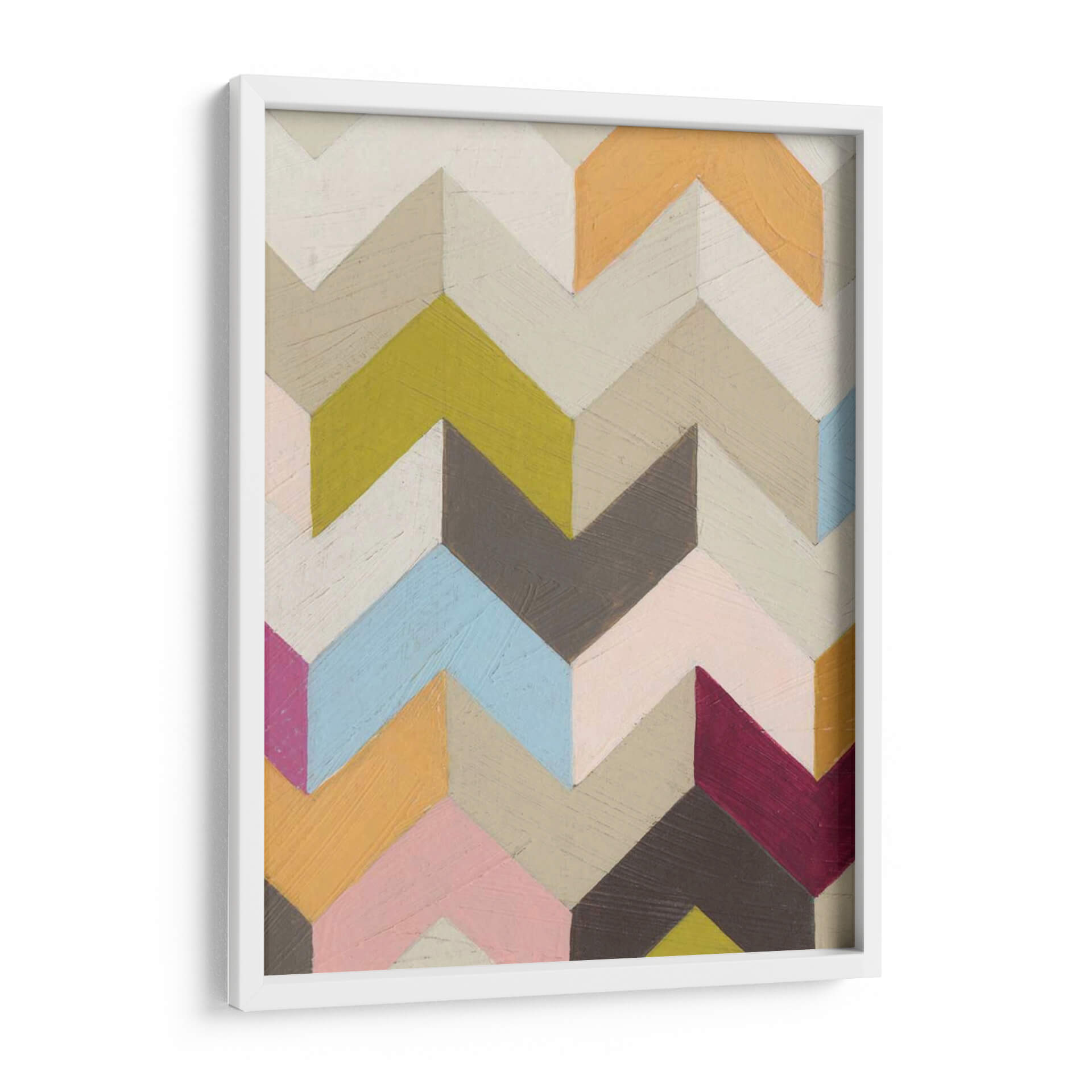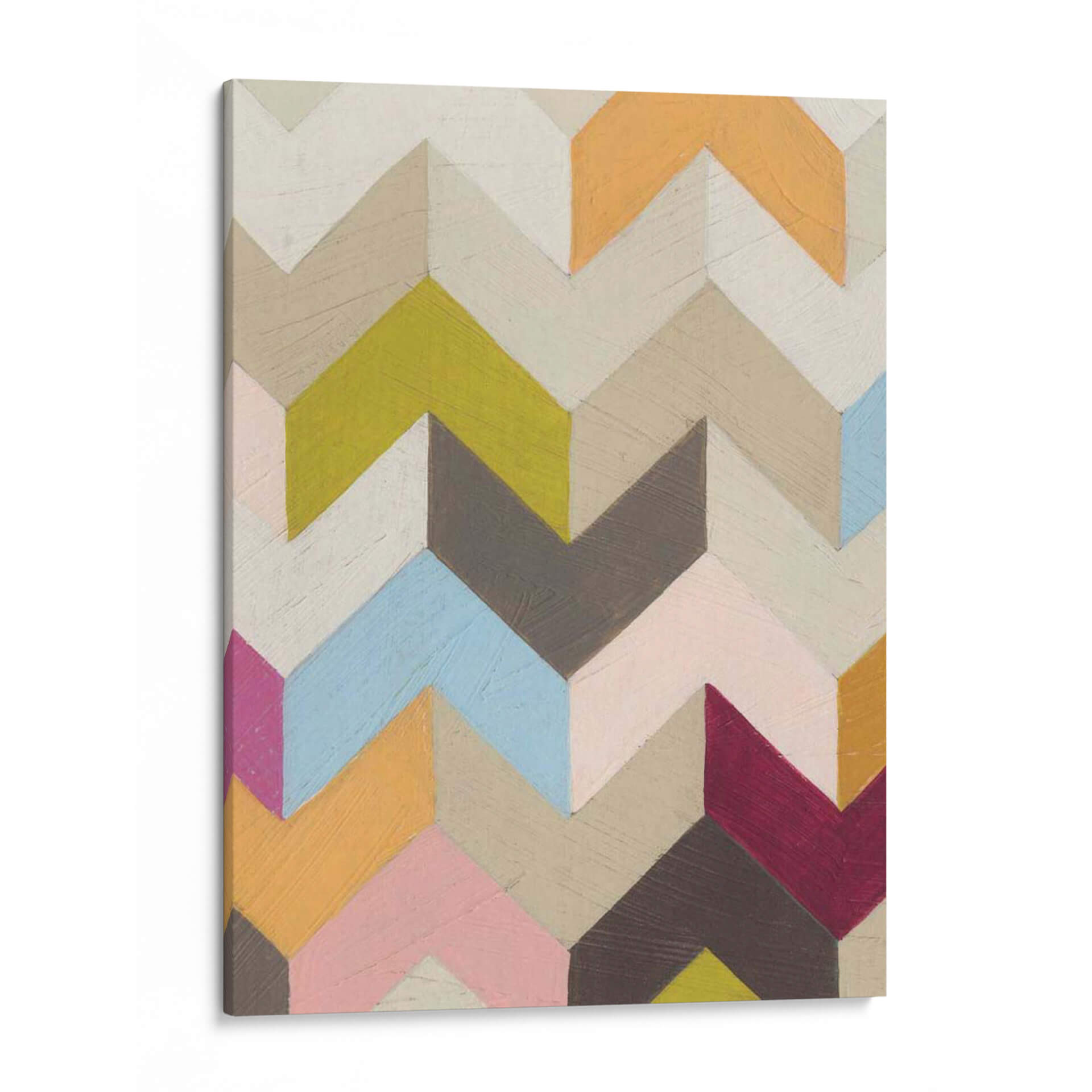 Sumérgete en la vibrante y enérgica obra de arte 'Confeti I' de June Erica Vess, una explosión de color y forma que transformará cualquier espacio. Este cuadro decorativo abstracto presenta un patrón geométrico dinámico, similar a un zig-zag o a confeti disperso, construido con una paleta de colores cuidadosamente seleccionada. Tonos tierra como el beige y el marrón se entrelazan con acentos audaces de amarillo mostaza, azul cielo, rosa pálido, fucsia y un profundo burdeos. La textura sutil y las pinceladas visibles añaden profundidad y carácter, haciendo que cada ángulo sea una nueva apreciación. 'Confeti I' es ideal para inyectar alegría y dinamismo a salas de estar modernas, estudios creativos o incluso dormitorios que buscan un toque de optimismo. Su diseño abstracto y contemporáneo lo convierte en un punto focal versátil, capaz de complementar tanto decoraciones minimalistas como eclécticas. Permite que esta pieza aporte una dosis de energía positiva y estilo artístico único a tu hogar u oficina, creando un ambiente inspirador y lleno de vida. Es la elección perfecta para quienes buscan un arte que hable de celebración y movimiento.
