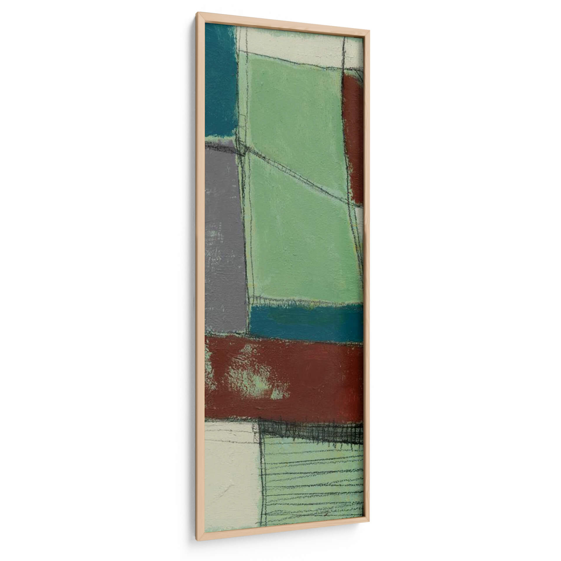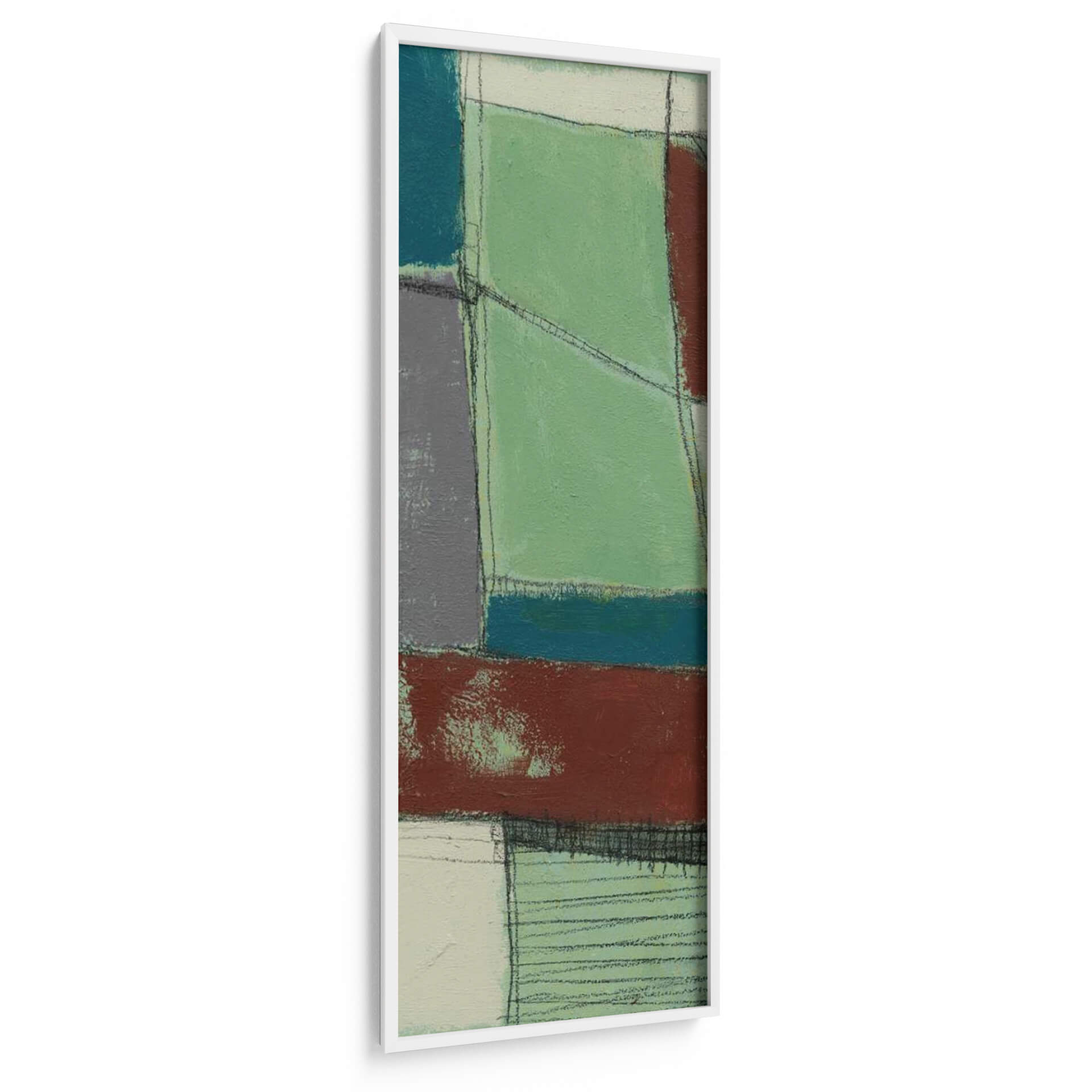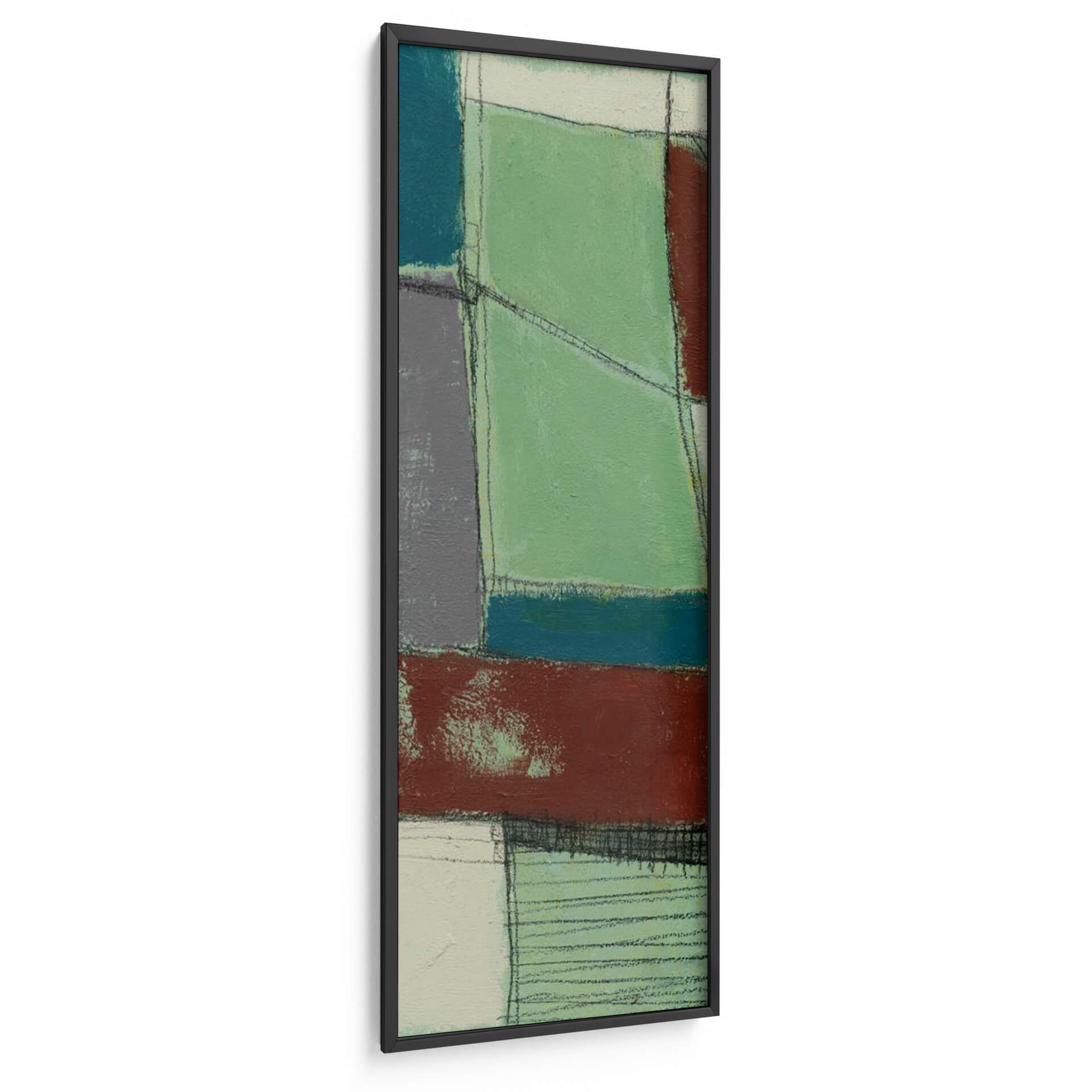 Sumérgete en la cautivadora abstracción de "Deconstruido IV", una obra que redefine la estética moderna con su audaz exploración de formas y colores. Jennifer Goldberger nos presenta un lienzo que desafía las convenciones, compuesto por bloques de color que varían desde verdes serenos y grises sutiles hasta intensos toques de terracota y azul petróleo. Las líneas finas y orgánicas que cruzan la composición añaden una capa de profundidad y dinamismo, invitando a la contemplación y al descubrimiento. Esta pieza es ideal para espacios que buscan un acento contemporáneo y sofisticado. Su paleta equilibrada y su estructura geométrica la convierten en el complemento perfecto para una sala de estar minimalista, un estudio o una oficina moderna, aportando un toque de intriga y buen gusto. "Deconstruido IV" no es solo un cuadro decorativo, sino una ventana a la creatividad que estimula la conversación y realza cualquier ambiente con su presencia artística única.