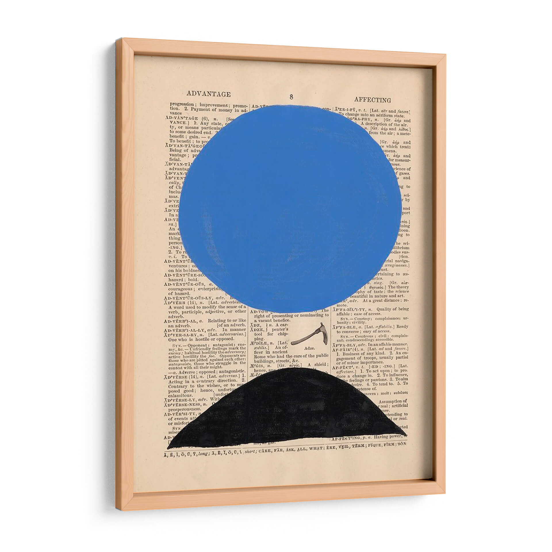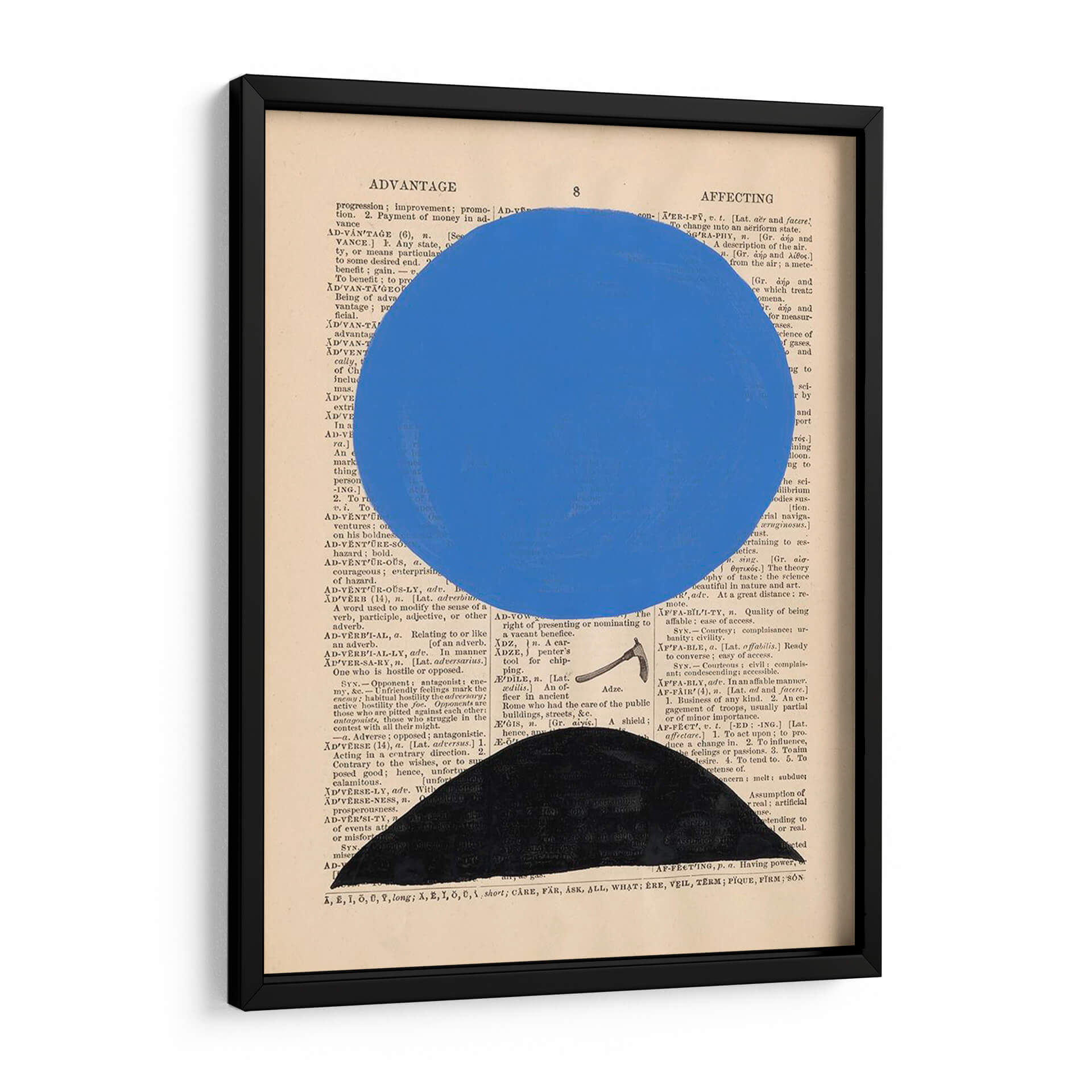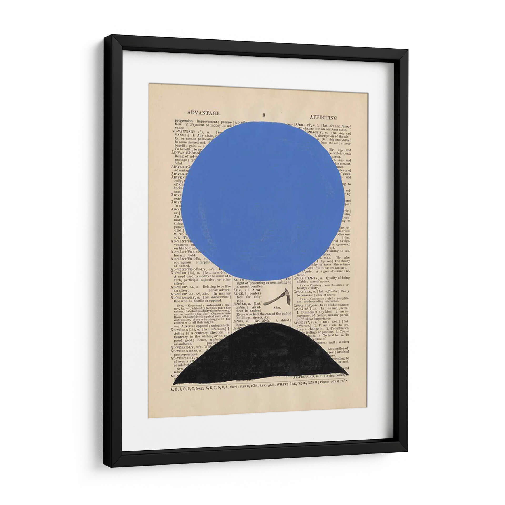 Descubre la cautivadora obra de arte "Definición Moderna III" de Renee W. Stramel, una pieza que fusiona lo abstracto con un toque conceptual sobre un fondo de texto vintage. Este cuadro decorativo presenta una audaz esfera azul suspendida sobre una base geométrica negra, todo ello superpuesto a páginas de diccionario antiguas, creando un contraste visual intrigante. Los colores vibrantes y las formas limpias de la composición generan una sensación de modernidad y sofisticación, ideal para espacios contemporáneos. La yuxtaposición del texto con los elementos abstractos invita a la reflexión, aportando profundidad y carácter a cualquier habitación. "Definición Moderna III" es perfecta para salas de estar, estudios u oficinas, donde su diseño minimalista pero impactante puede convertirse en un punto focal. Añade un toque de arte contemporáneo y originalidad a tu decoración con esta pieza única que evoca curiosidad e inteligencia.