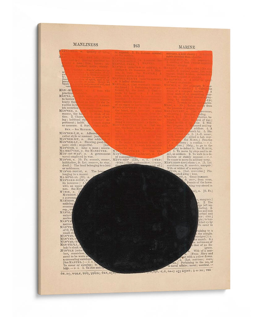 Este cautivador cuadro decorativo, "Definición Moderna Iv" de Renee W. Stramel, fusiona elementos de diseño contemporáneo con una estética atemporal. La obra presenta dos formas geométricas orgánicas: un semicírculo vibrante de color naranja intenso superpuesto sobre un círculo profundo de color negro, ambos elegantemente situados sobre un fondo que imita las páginas de un diccionario antiguo. La audaz yuxtaposición de los colores naranja y negro crea un contraste dinámico, atrayendo la mirada del espectador y generando una sensación de energía y sofisticación. El texto subyacente, con sus columnas de palabras y definiciones, añade una capa de profundidad e intriga intelectual, sugiriendo un diálogo entre el lenguaje y la forma visual. Esta pieza abstracta es ideal para infundir carácter y un toque moderno a cualquier espacio, desde una sala de estar minimalista hasta una oficina ejecutiva o un estudio creativo. Su composición equilibrada pero impactante la convierte en un punto focal perfecto para quienes buscan arte que desafíe la percepción y celebre la belleza de la abstracción geométrica. Añade un toque de arte contemporáneo y pensamiento conceptual a tu decoración con esta impresionante obra.