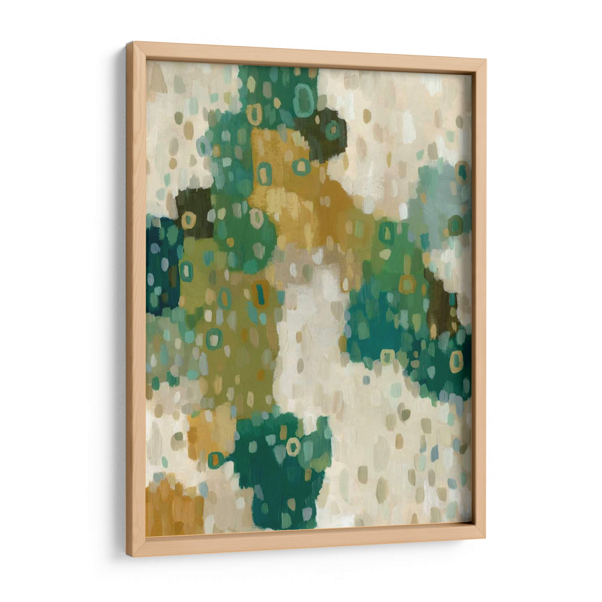Sumérgete en la serenidad y la belleza orgánica de "Delancey II", una obra de arte abstracta de Chariklia Zarris que captura la esencia de la naturaleza en una paleta de colores cautivadora. Esta pieza explora formas fluidas y texturas ricas, evocando la sensación de un paisaje acuático sereno o un jardín exuberante visto a través de una lente impresionista. Predominan los tonos verdes profundos y esmeralda, entrelazados con toques de ocre cálido y un fondo cremoso y texturizado que aporta luz y profundidad. Los pequeños detalles, como los toques de color vibrante y las formas circulares sutiles, invitan a una contemplación detallada, añadiendo una capa de intriga a la composición general. "Delancey II" es ideal para aquellos que buscan infundir calma y sofisticación en sus espacios vitales, ya sea una sala de estar moderna, un tranquilo dormitorio o una oficina que necesita un toque de inspiración natural. Este cuadro decorativo moderno se convierte en un punto focal que atrae la mirada y fomenta la relajación, transformando cualquier habitación en un refugio de paz y estilo contemporáneo, perfecto para añadir un toque de arte abstracto que conecte con la esencia de la naturaleza.