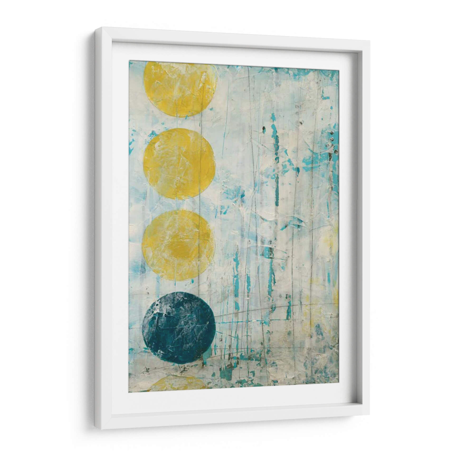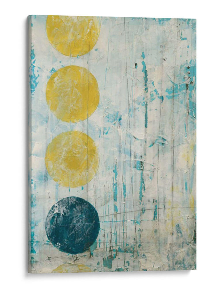 Sumérgete en la cautivadora obra de arte abstracto "Desplazamiento De Fase I" de June Erica Vess, una pieza que invita a la contemplación y añade un toque moderno a cualquier espacio. Esta composición vibrante presenta una serie de círculos superpuestos en tonos amarillos brillantes y un profundo azul verdoso, contrastando con un fondo texturizado de blanco, azul claro y toques de gris. Las líneas verticales y las salpicaduras de pintura crean una sensación de movimiento y profundidad, evocando una atmósfera de energía contenida y descubrimiento. El estilo abstracto y la paleta de colores equilibrada hacen de este cuadro decorativo una elección versátil para salas de estar contemporáneas, oficinas creativas o dormitorios que buscan un punto focal interesante. "Desplazamiento De Fase I" no es solo una decoración, es una invitación a explorar la percepción y añadir un elemento de sofisticación y arte contemporáneo a tu hogar, una obra que captura la mirada y estimula la imaginación.