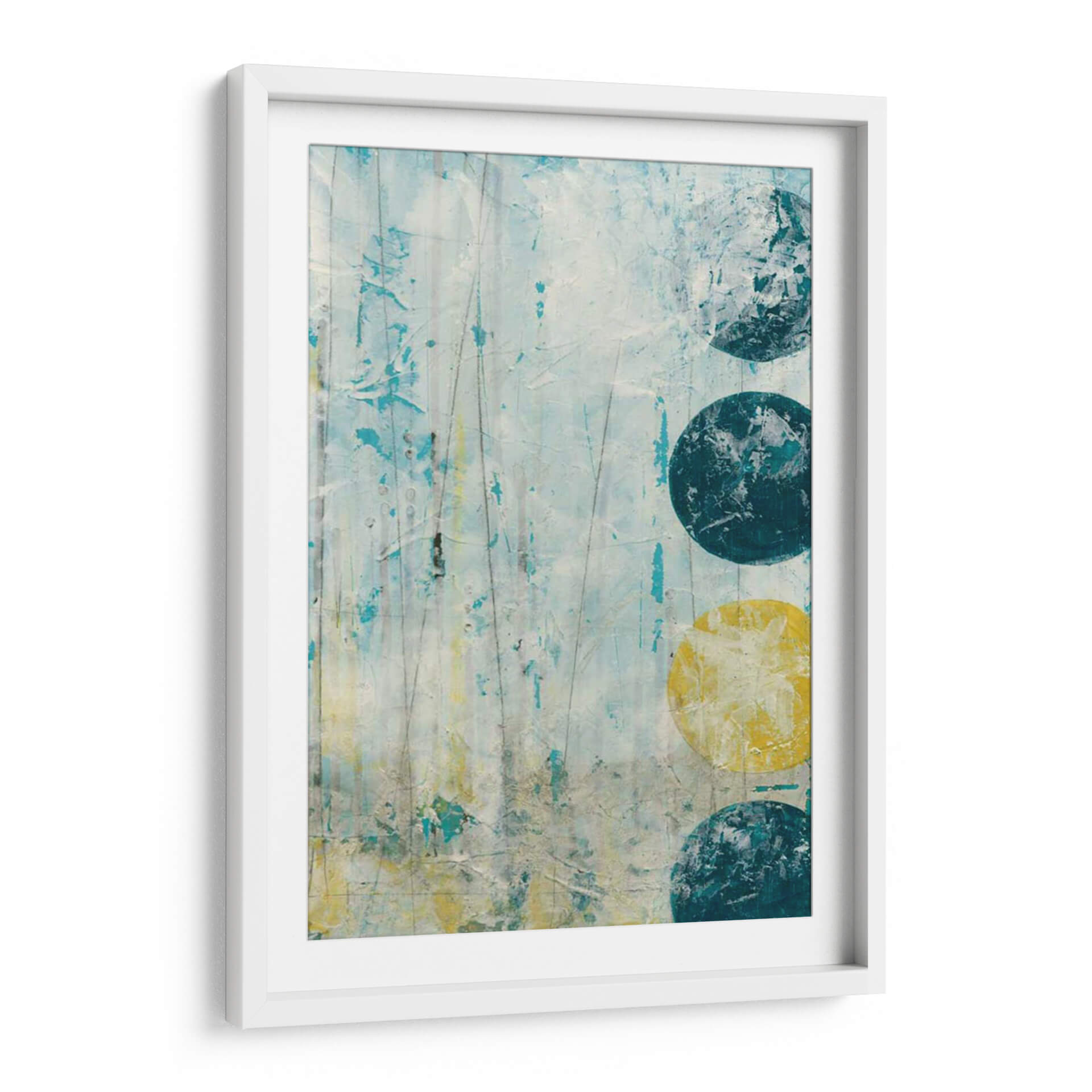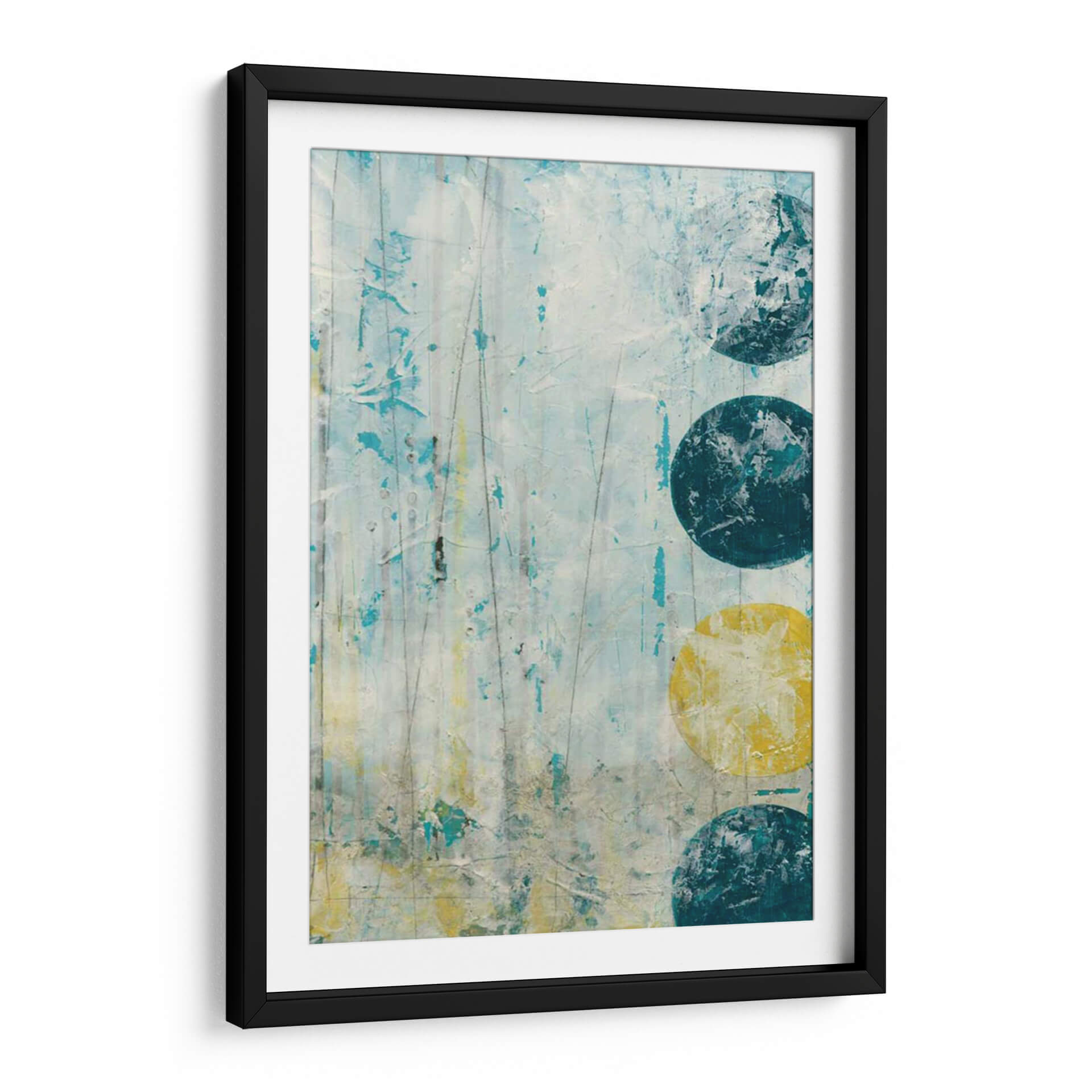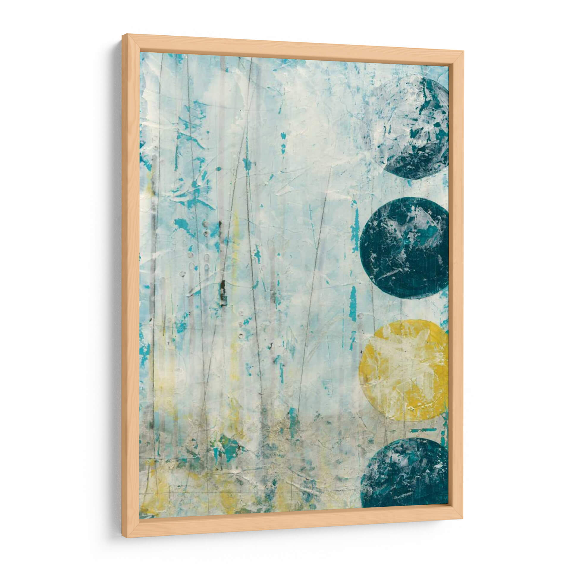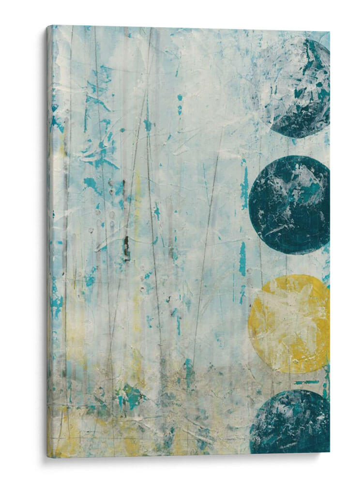 Sumérgete en la atmósfera etérea de "Desplazamiento De Fase II", una obra abstracta contemporánea de June Erica Vess que invita a la contemplación. Esta pieza se caracteriza por su texturizada superficie, donde delicadas pinceladas y sutiles capas de pintura crean una profundidad visual cautivadora. La paleta de colores, dominada por suaves tonos celestes y blancos rotos, se ve acentuada por vibrantes toques de turquesa y notas cálidas de amarillo, evocando una sensación de calma y energía a la vez. La composición, con sus líneas verticales y círculos orgánicos que parecen flotar, sugiere un movimiento suave y una exploración del espacio. "Desplazamiento De Fase II" es ideal para añadir un toque de sofisticación moderna a cualquier hogar u oficina, funcionando como un punto focal sereno o un acento de color intrigante en salas de estar, dormitorios o estudios. Este cuadro decorativo contemporáneo es perfecto para aquellos que buscan arte abstracto que inspire tranquilidad y estimule la imaginación, convirtiéndose en una adición única a tu colección de decoración de pared.