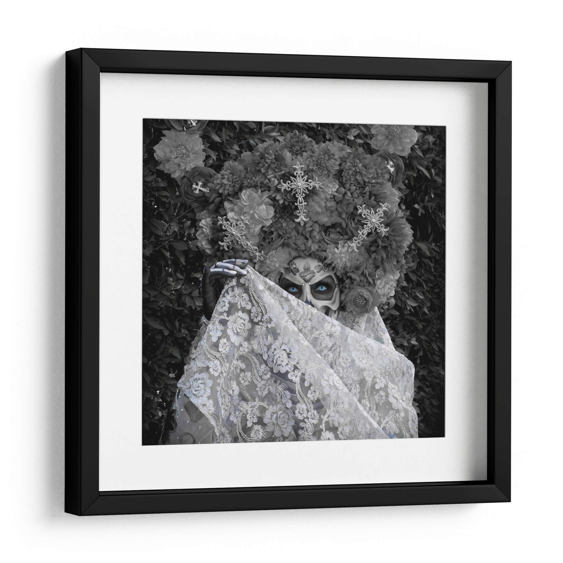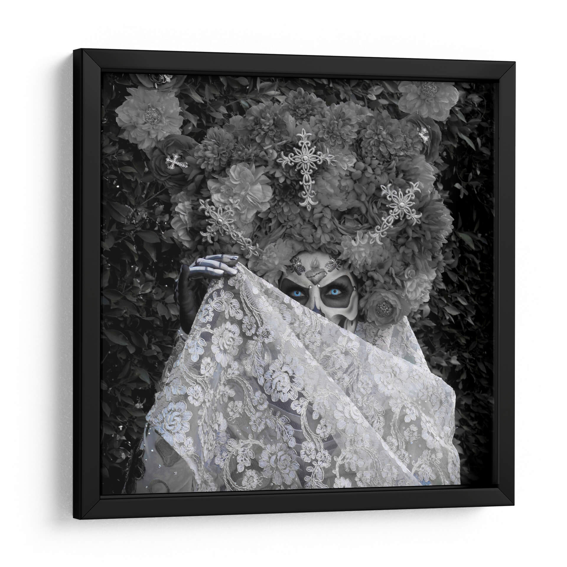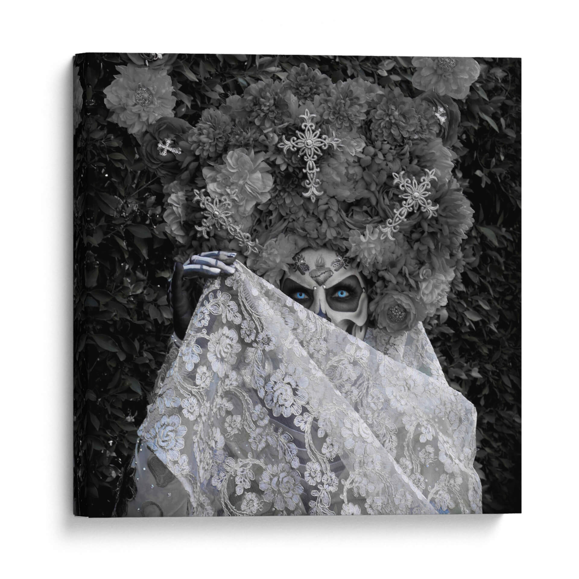 Sumérgete en la enigmática belleza de "Día de los Muertos" de C. Ray Roth, un cuadro decorativo que trasciende lo ordinario. Esta obra maestra captura la esencia de la festividad mexicana con una profundidad visual cautivadora. En primer plano, una figura velada por un delicado encaje floral, revela unos penetrantes ojos azules que invitan a la contemplación. El maquillaje de catrina, intrincado y artístico, acentúa la dualidad entre la vida y la muerte, un tema recurrente y poderoso en el arte. La explosión de flores que corona la cabeza de la figura, en contraste con el fondo sombrío y texturizado, crea un impacto visual dramático y lleno de simbolismo. Los tonos predominantes, aunque presentados en un estilo gráfico y de alto contraste, sugieren una paleta que podría incluir blancos, negros y toques vibrantes, haciendo de esta pieza un punto focal ideal para cualquier espacio que busque carácter y profundidad. Ideal para salones modernos, estudios o incluso como una pieza de conversación audaz en una oficina, este cuadro decorativo evoca misterio, celebración y una profunda conexión con la tradición. Añade un toque de arte contemporáneo con un trasfondo cultural rico a tu hogar.