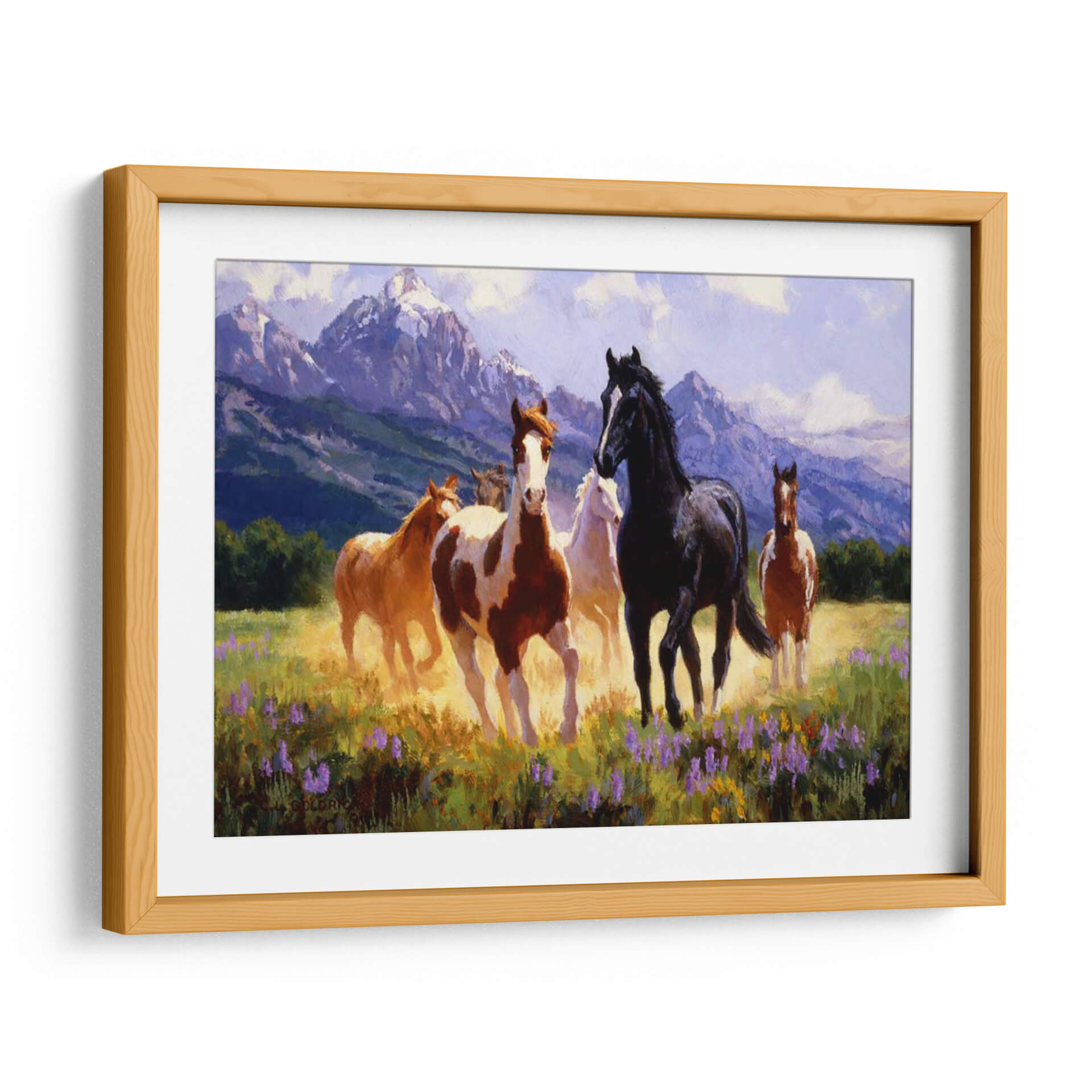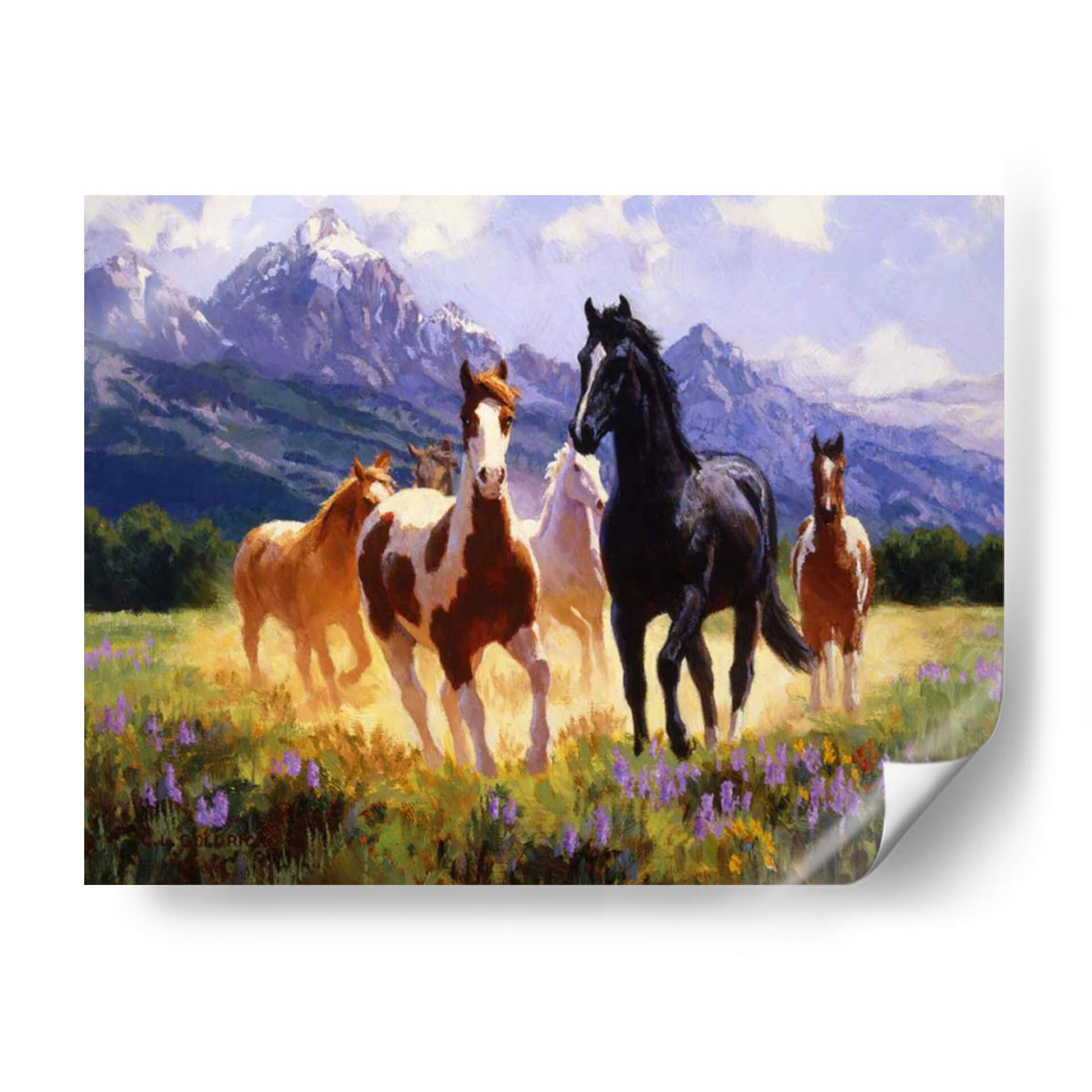 Sumérgete en la majestuosidad de la naturaleza con "Días De Verano", una obra de arte que captura la esencia salvaje y libre de los caballos en su esplendor. Esta pieza, pintada por Christina Long, te transporta a un prado vibrante salpicado de flores silvestres, con imponentes montañas nevadas como telón de fondo. La paleta de colores, dominada por tonos tierra, verdes intensos, y toques de púrpura y azul cielo, crea una atmósfera de energía y vitalidad, evocando la frescura de un día soleado. Los caballos, representados con pinceladas audaces y realistas, irradian fuerza y movimiento, capturando la dinámica de una manada en plena carrera. El estilo pictórico, con texturas ricas y un juego de luces y sombras que realza el volumen de las figuras y el paisaje, invita a admirar cada detalle. Este cuadro decorativo es ideal para quienes buscan infundir en su hogar u oficina una sensación de libertad, conexión con la naturaleza y un toque de elegancia rústica. Perfecto para salas de estar, estudios o cualquier espacio que desee una inyección de vida y serenidad, "Días De Verano" es una invitación a contemplar la belleza indómita del mundo natural. Añade esta obra maestra a tu colección y deja que la poderosa presencia de los caballos transforme tu ambiente.