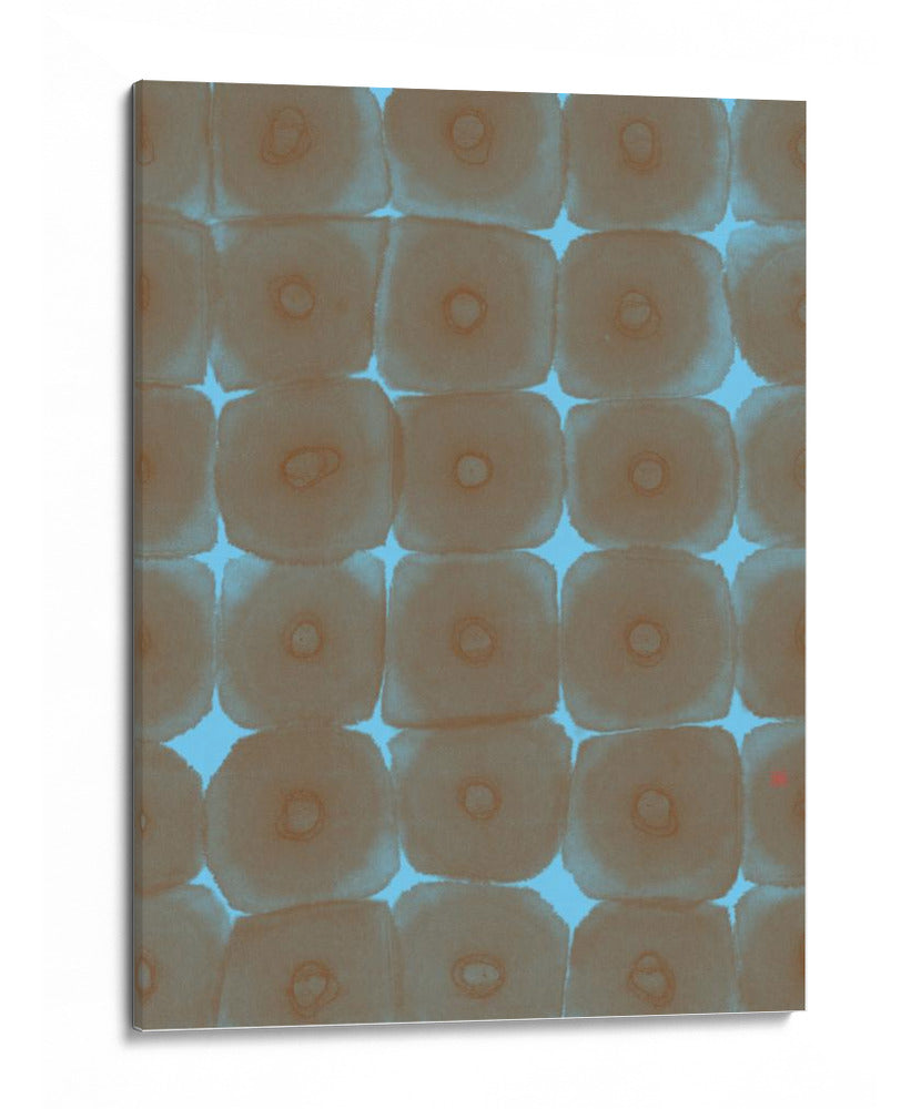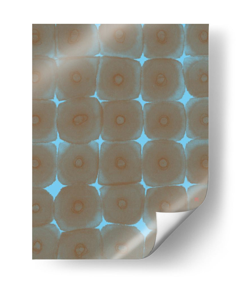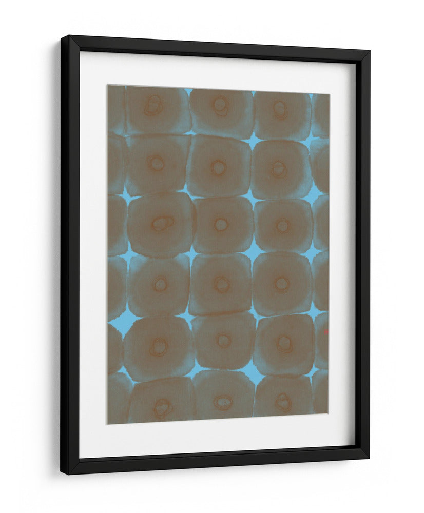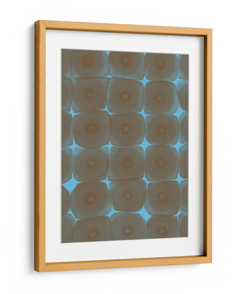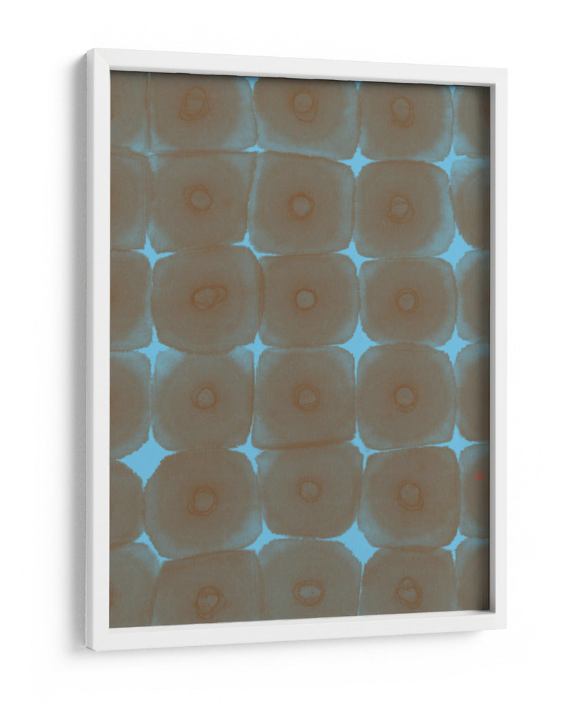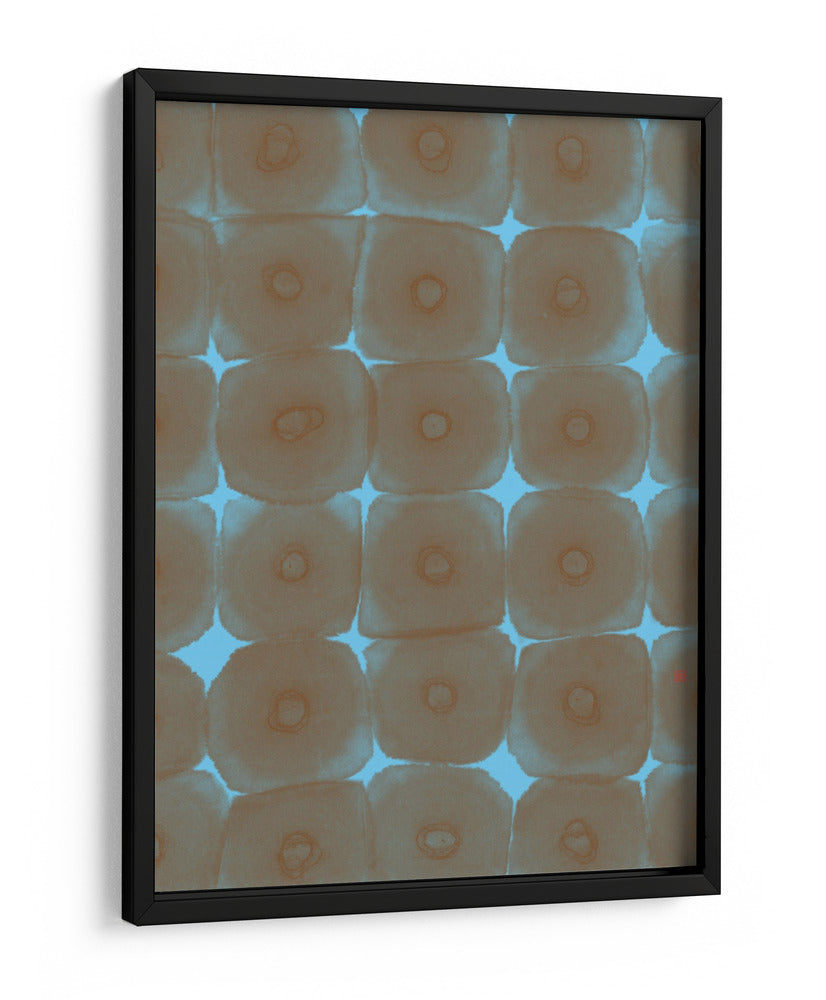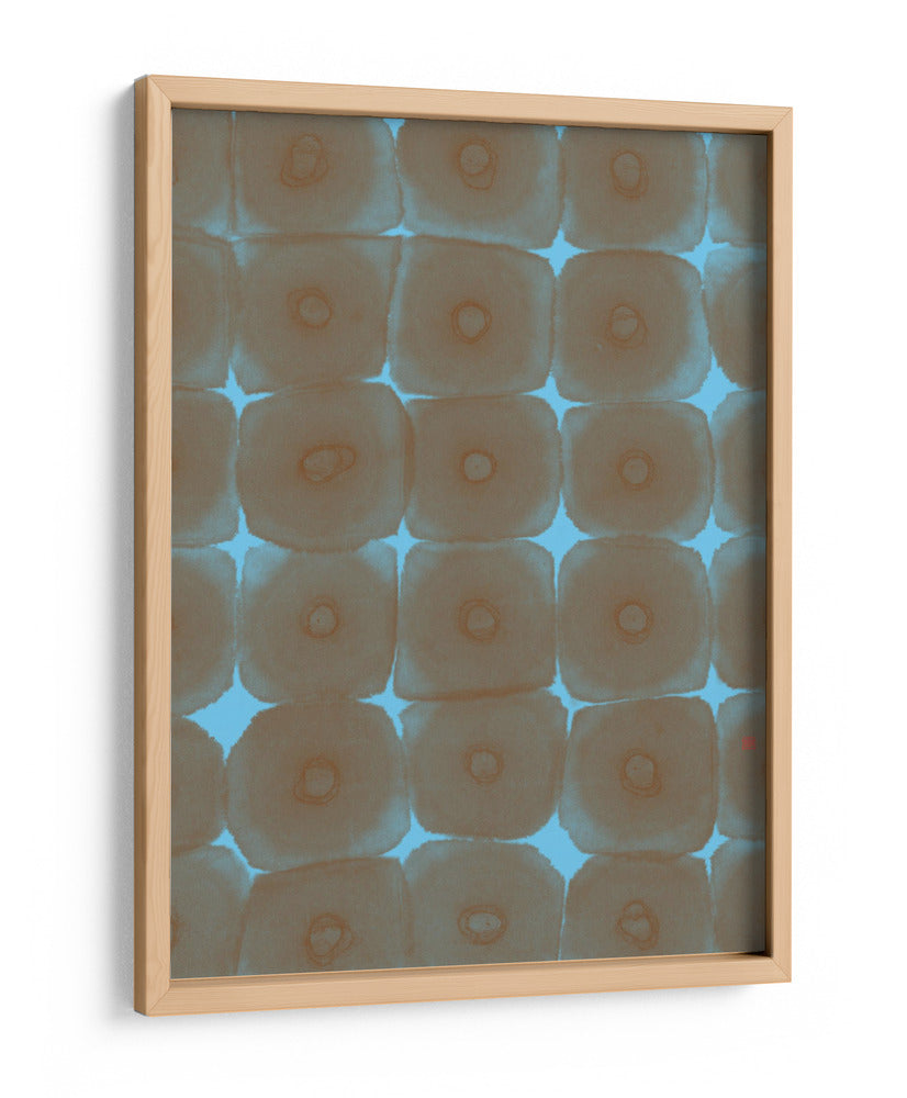 Sumérgete en la cautivadora obra 'El espacio intermedio' de Thoth Adan, una pieza abstracta que invita a la contemplación. La composición se organiza en una cuadrícula de formas orgánicas, suaves y redondeadas, de un tono marrón terroso, que parecen flotar sobre un vibrante fondo azul cielo. Cada forma presenta un sutil centro circular, sugiriendo un punto focal o un ojo observador. La técnica acuarelada aporta una textura delicada y una sensación de fluidez, fusionando los colores de manera armoniosa y creando una atmósfera de calma y profundidad. El contraste entre los tonos cálidos y terrosos y el azul energizante genera un equilibrio visual intrigante. Este cuadro decorativo es perfecto para añadir un toque de serenidad moderna a tu sala de estar, un acento contemporáneo a tu oficina o una pincelada de color y tranquilidad a tu dormitorio. Su diseño abstracto y orgánico lo convierte en una adición versátil para cualquier espacio que busque una conexión con lo sutil y lo etéreo, transformando tu hogar en una galería personal llena de significado.