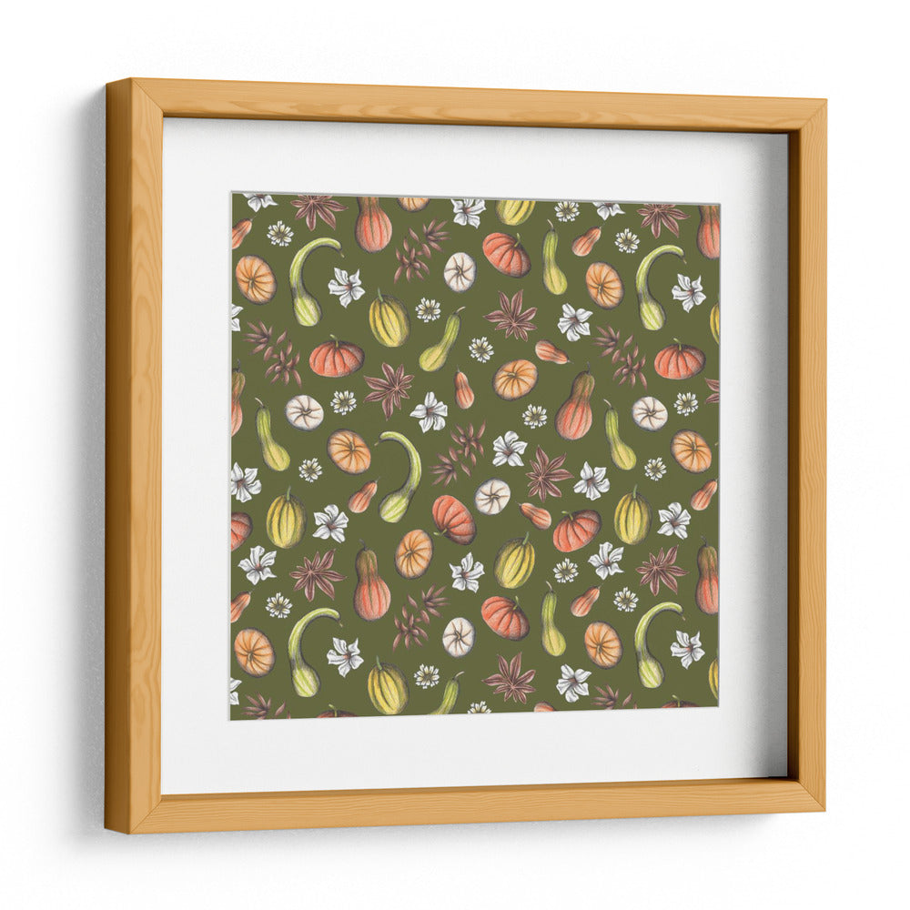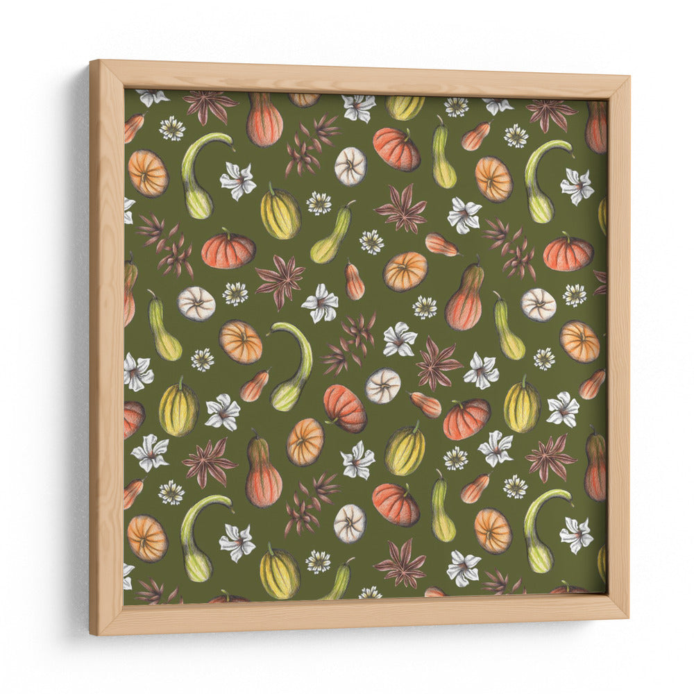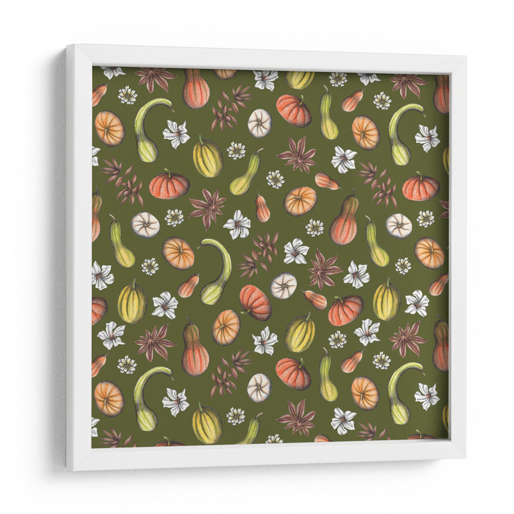 Celebra la abundancia de la temporada con "El otoño está en el aire VIII", una obra de Cecilia Battaini que captura la esencia del otoño a través de un encantador patrón de calabazas, flores delicadas y especias aromáticas. Los tonos cálidos y terrosos, dominados por verdes oliva profundos, naranjas vibrantes, amarillos dorados y toques de blanco y marrón rojizo, crean una atmósfera acogedora y rústica. Cada elemento, dibujado con un estilo detallado que evoca las ilustraciones botánicas clásicas pero con un toque contemporáneo, se presenta en una repetición armoniosa que aporta ritmo y profundidad al diseño. Este cuadro decorativo es perfecto para infundir calidez en cualquier espacio, desde una cocina campestre hasta una sala de estar moderna o un comedor familiar. Imagina cómo estas formas orgánicas y colores otoñales transformarán tu hogar en un refugio de confort y estilo, evocando la nostalgia y la belleza de la cosecha. Ideal para quienes buscan añadir un toque de naturaleza y sofisticación a su decoración interior, "El otoño está en el aire VIII" es una pieza que celebra la transición y la belleza efímera de la estación.