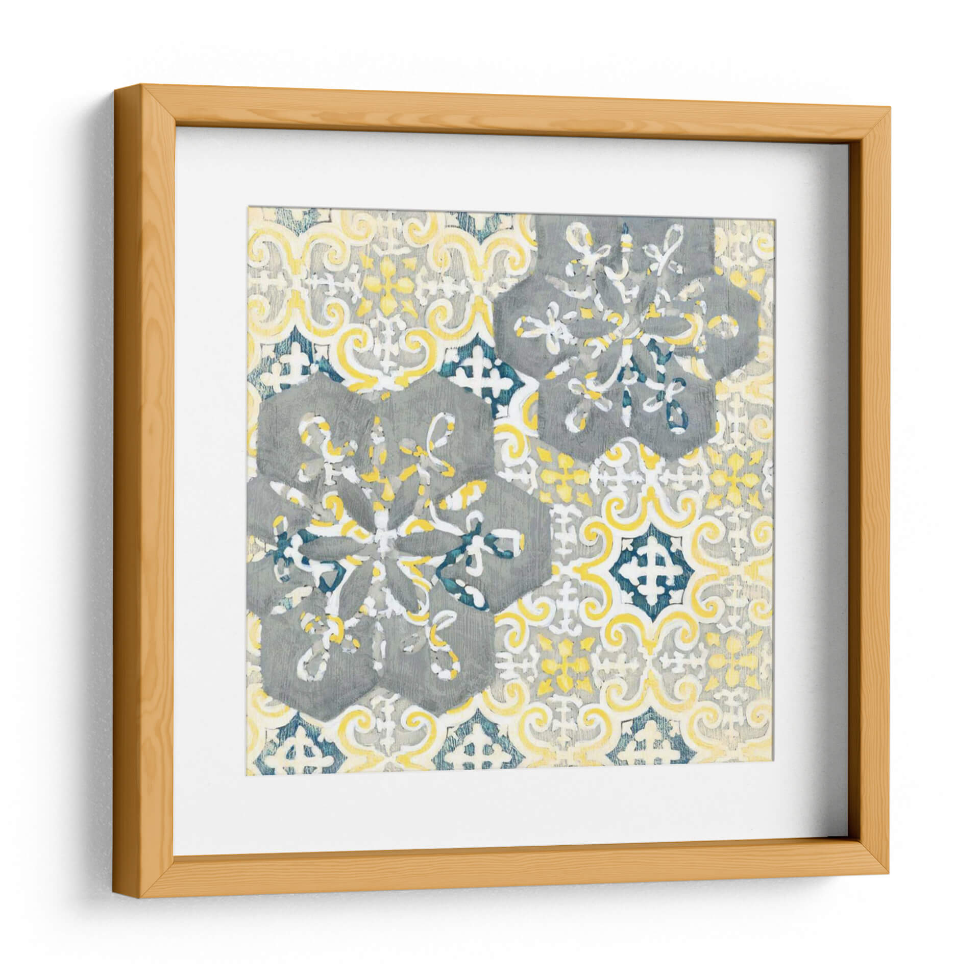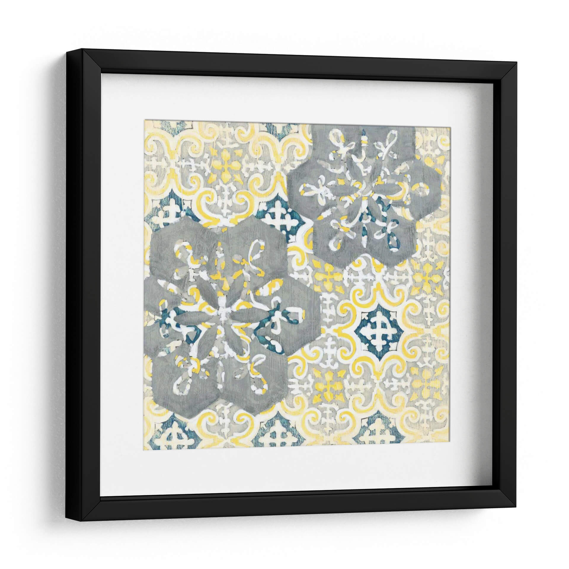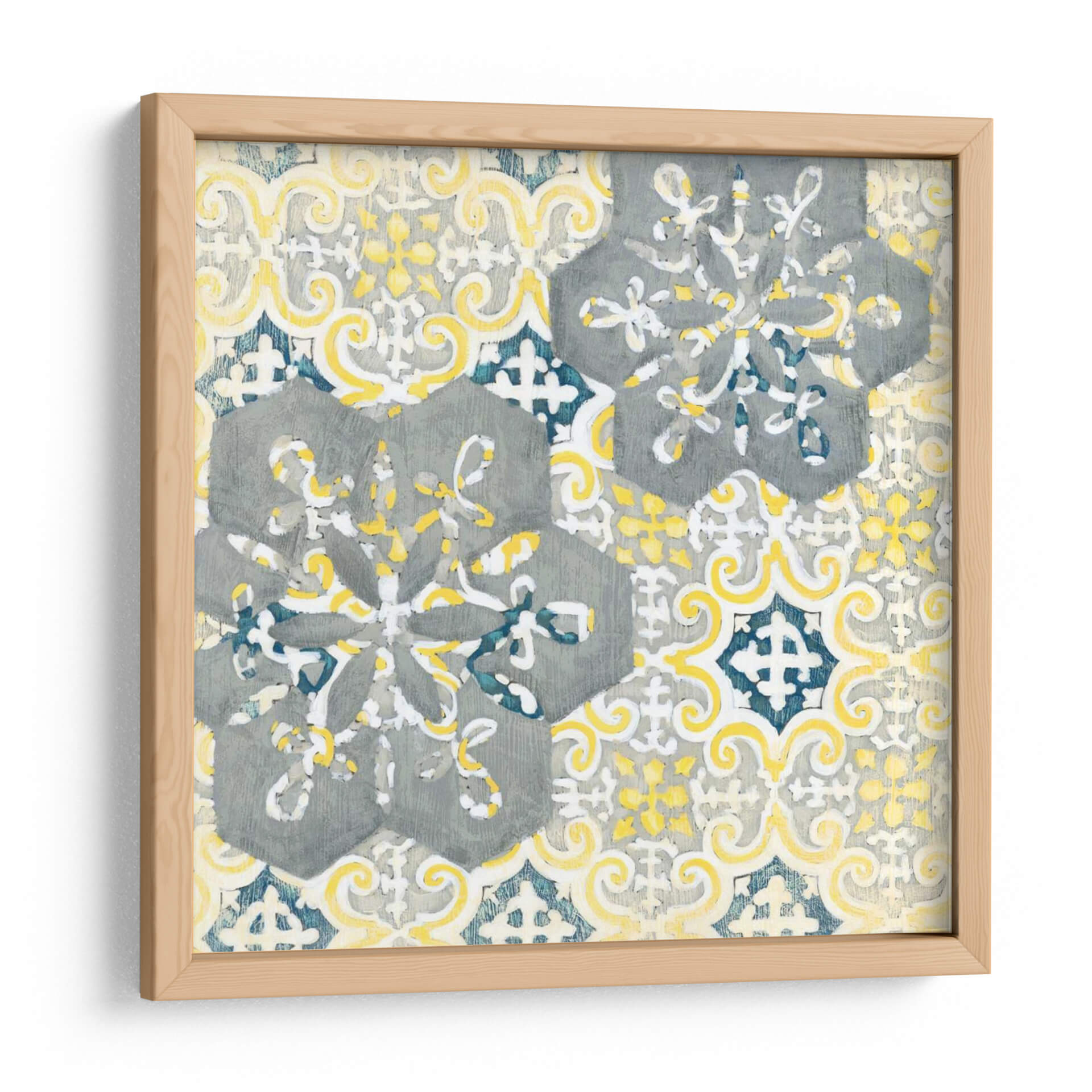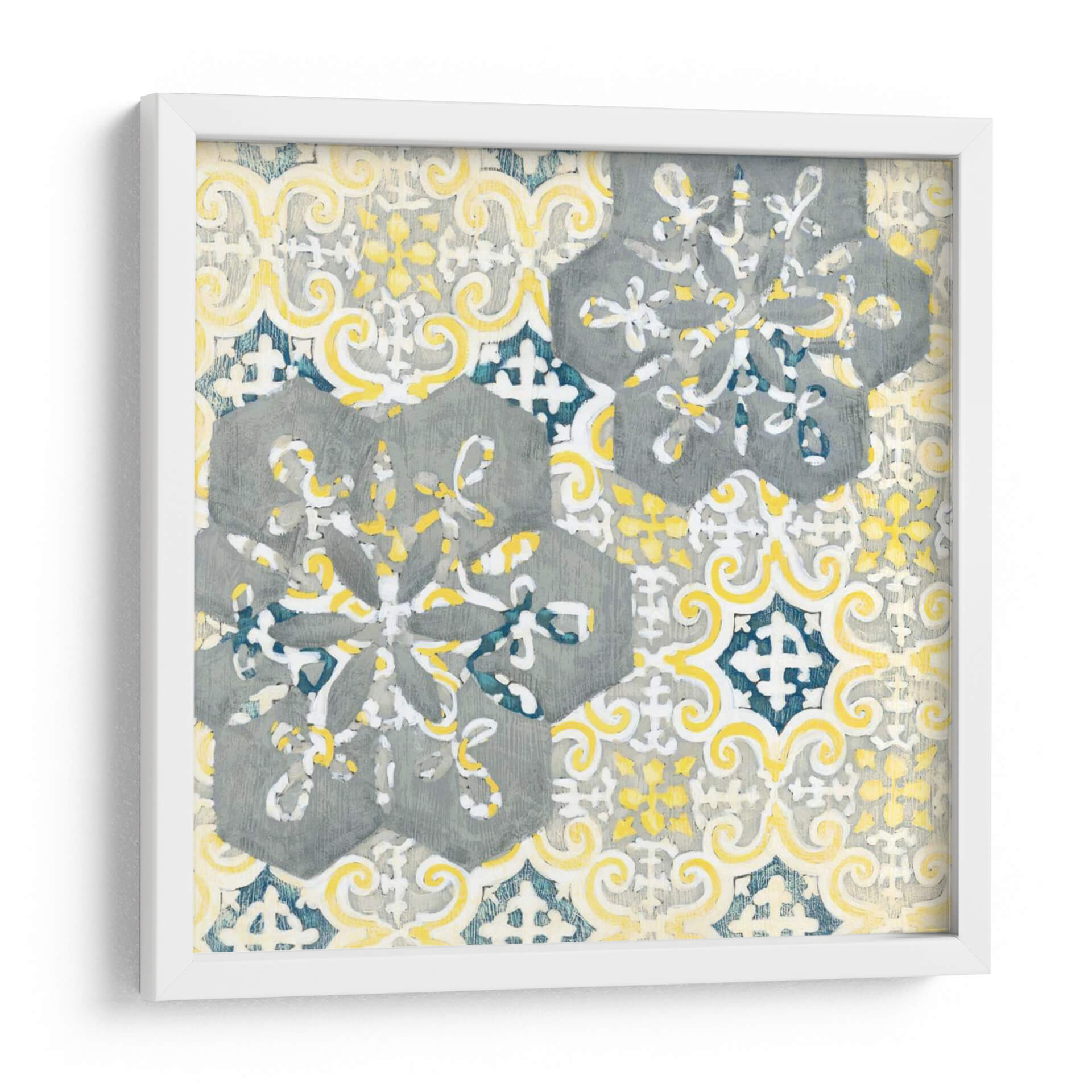 Añada un toque de sofisticación geométrica y calidez otoñal a su hogar con "Elegante Noviembre I", una obra de arte original del artista Chariklia Zarris. Este cautivador cuadro decorativo presenta un intrincado patrón inspirado en azulejos tradicionales, reimaginado con un enfoque contemporáneo. La paleta de colores, dominada por tonos grises serenos, amarillos vibrantes y acentos de azul profundo, evoca la sensación acogedora y la belleza sutil de un día de noviembre. Los hexágonos grises, adornados con delicados detalles florales en blanco y amarillo, se entrelazan con un fondo texturizado que recuerda a patrones de cerámica marroquí o de estilo hidráulico. La composición, equilibrada y rítmica, crea un flujo visual que atrae la mirada y añade profundidad a cualquier pared. "Elegante Noviembre I" es la elección perfecta para quienes buscan infundir a sus espacios un aire de elegancia atemporal con un toque moderno. Ideal para salones, comedores, estudios o cualquier rincón que desee embellecer con arte abstracto que combine diseño y emoción. Déjese envolver por la armonía de esta pieza única y transforme su decoración.