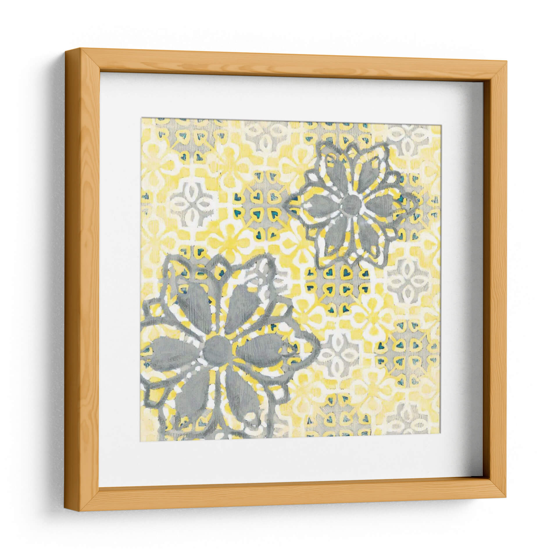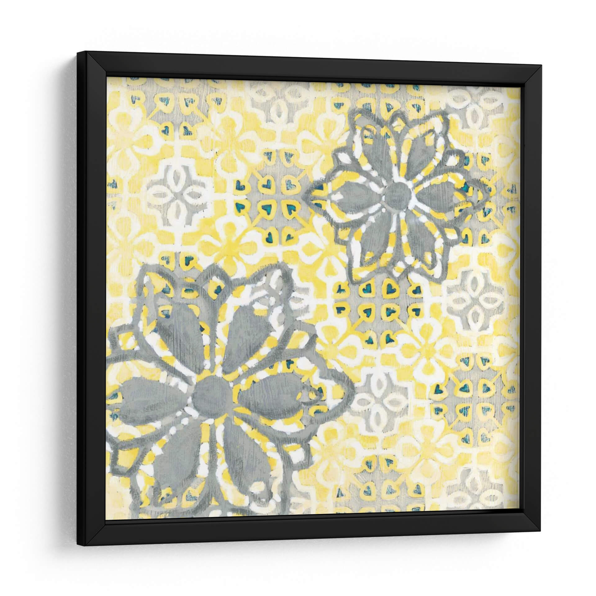 Inyecta vitalidad y un toque de elegancia bohemia a tu espacio con "Elegante Noviembre II", una cautivadora obra de arte de Chariklia Zarris. Este cuadro decorativo presenta un patrón intrincado inspirado en azulejos, dominado por una vibrante paleta de amarillos y grises, salpicada con sutiles toques de azul. Las formas florales estilizadas, con un diseño casi mandala, se repiten en un patrón hipnótico que evoca una sensación de orden y armonía. La textura visual de la pintura sugiere una técnica de empaste ligero o acuarela, añadiendo profundidad y carácter a la composición. "Elegante Noviembre II" es más que una simple decoración; es una pieza que invita a la contemplación, aportando luz y una energía positiva a cualquier habitación. Su diseño versátil lo hace ideal para complementar una decoración moderna, escandinava o incluso de estilo rústico chic. Imagina este cuadro como el punto focal de tu sala de estar, aportando un aire de sofisticación y calidez, o como un toque de inspiración diaria en tu oficina. Deja que sus patrones cautivadores y su alegre combinación de colores transformen tu hogar en un santuario de estilo y confort.