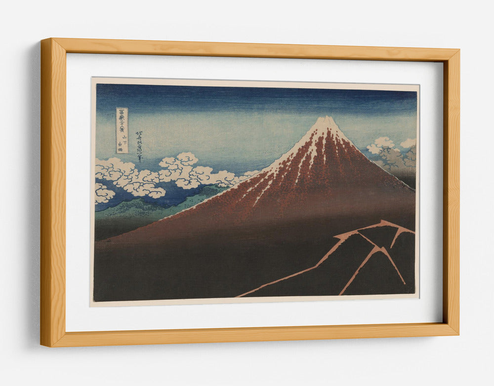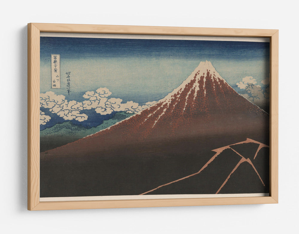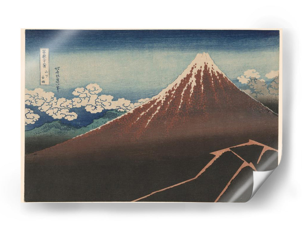 Sumérgete en la majestuosidad de 'Espectáculo Debajo de la Cumbre', una obra maestra del icónico artista Katsushika Hokusai, reinterpretada para tu espacio. Este cuadro decorativo captura la imponente presencia del Monte Fuji, coronado con nieve, bajo un cielo azul profundo y nubes etéreas que añaden profundidad y dinamismo a la escena. La paleta de colores, dominada por tonos terrosos, azules intensos y blancos contrastantes, crea una atmósfera de serenidad y poder natural. El estilo distintivo de Hokusai, con sus líneas definidas y su composición equilibrada, evoca una sensación de calma contemplativa, invitando a la reflexión sobre la grandeza de la naturaleza. Este cuadro es ideal para transformar cualquier habitación, ya sea un salón moderno, un estudio tranquilo o un dormitorio, aportando un toque de sofisticación y una conexión con el arte clásico japonés. La composición visual, centrada en la montaña icónica, genera un punto focal que inspira paz y admiración, convirtiéndolo en una pieza de decoración de pared que trasciende el tiempo y las tendencias. Una invitación visual a contemplar la belleza serena y la fuerza indomable del paisaje.