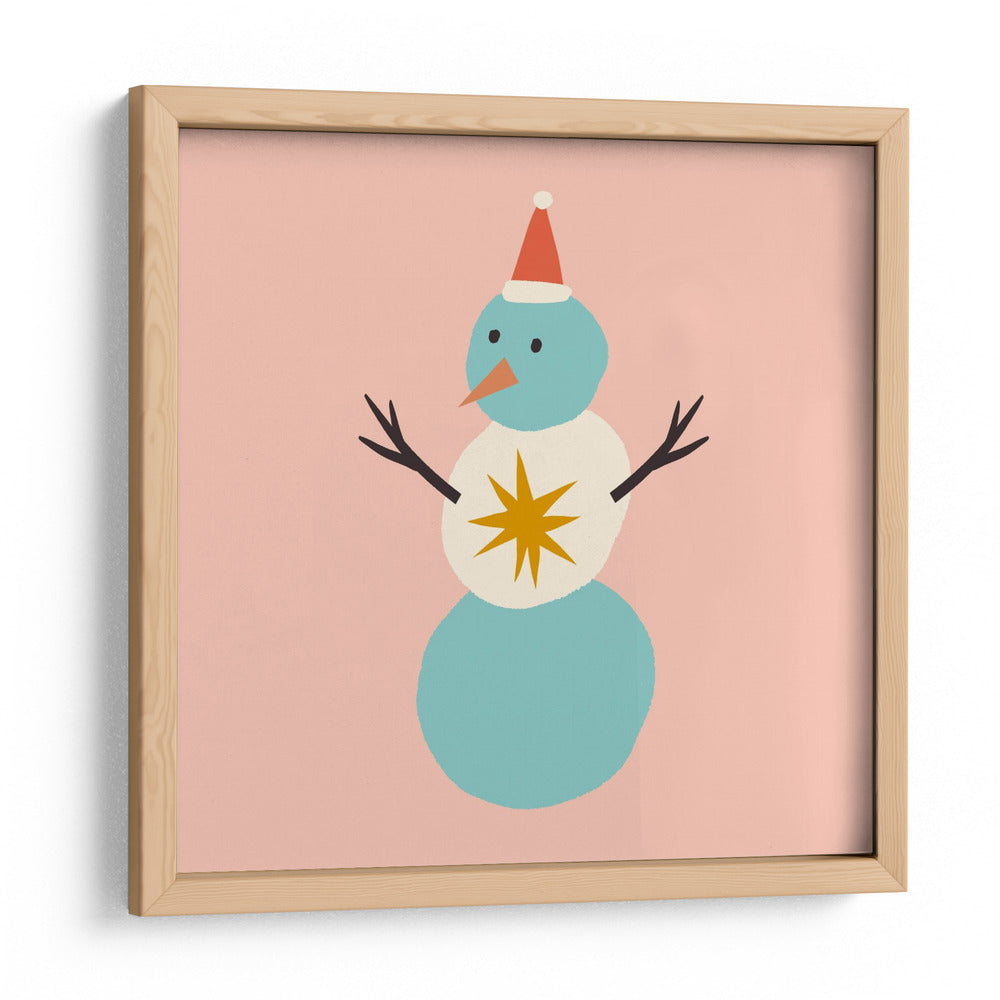 Celebra la temporada con "Feliz Navidad No.23", una encantadora obra de arte digital que captura la alegría y la simplicidad del invierno. Este cuadro decorativo presenta un simpático muñeco de nieve, representado con formas geométricas suaves y una paleta de colores pastel que evoca calidez y dulzura. El fondo de color melocotón suave crea un contraste armonioso con el azul tierno del muñeco y el toque vibrante del gorro navideño naranja, complementado por una estrella amarilla en su pecho que irradia optimismo. El estilo minimalista y juguetón, atribuido al artista Treechild, hace que esta pieza sea perfecta para añadir un toque de festividad y ternura a cualquier espacio. Ideal para decorar salones, dormitorios infantiles o como un detalle acogedor en tu oficina durante las fiestas, este cuadro decorativo invita a la sonrisa y a la contemplación de los momentos sencillos pero mágicos del invierno. Su composición centrada y sus líneas limpias aseguran que se integre bellamente en decoraciones contemporáneas y tradicionales, convirtiéndose en un punto focal lleno de encanto navideño.