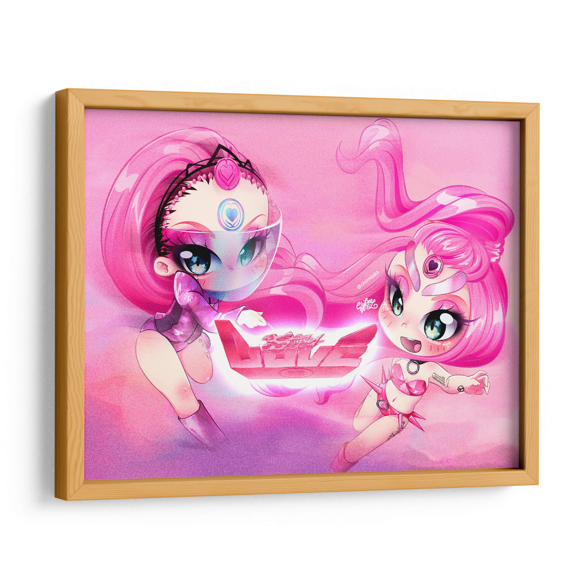 Sumérgete en un universo de fantasía vibrante con "FREAK OUT" de Monoceroz, una obra de arte digital que redefine el estilo kawaii con un toque futurista y audaz. Esta pieza cautiva con sus dos personajes de estética anime, vestidos con atuendos que evocan la moda cyberpunk y espacial, enmarcados por una paleta de colores predominantemente rosa y violeta. Los grandes ojos expresivos, el cabello exuberante y los detalles intrincados en la vestimenta y accesorios, como tiaras y visores, crean una atmósfera juguetona pero a la vez poderosa. La composición dinámica, con los personajes interactuando alrededor de un objeto brillante y translúcido, sugiere una narrativa de aventura o descubrimiento. Ideal para espacios juveniles, estudios de diseño o cualquier lugar que busque un estallido de color y originalidad, este lienzo es perfecto para añadir un toque de ensueño moderno y personalidad a tu decoración. "FREAK OUT" es más que una imagen; es una declaración de estilo contemporáneo y un portal a un mundo imaginativo.