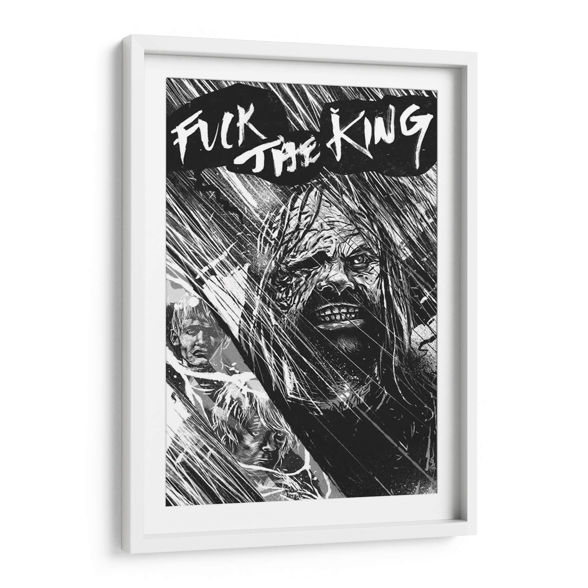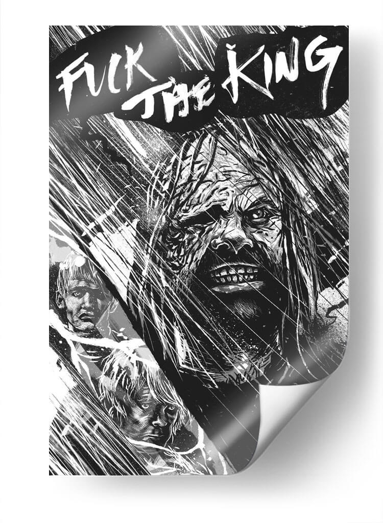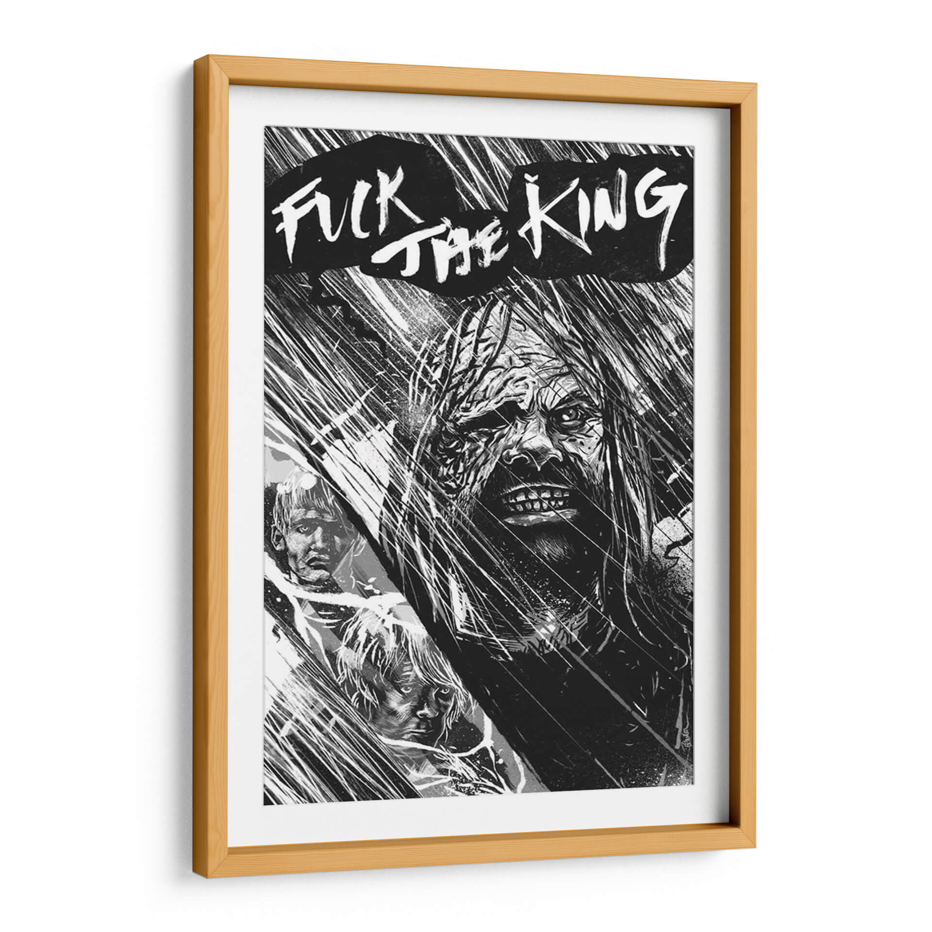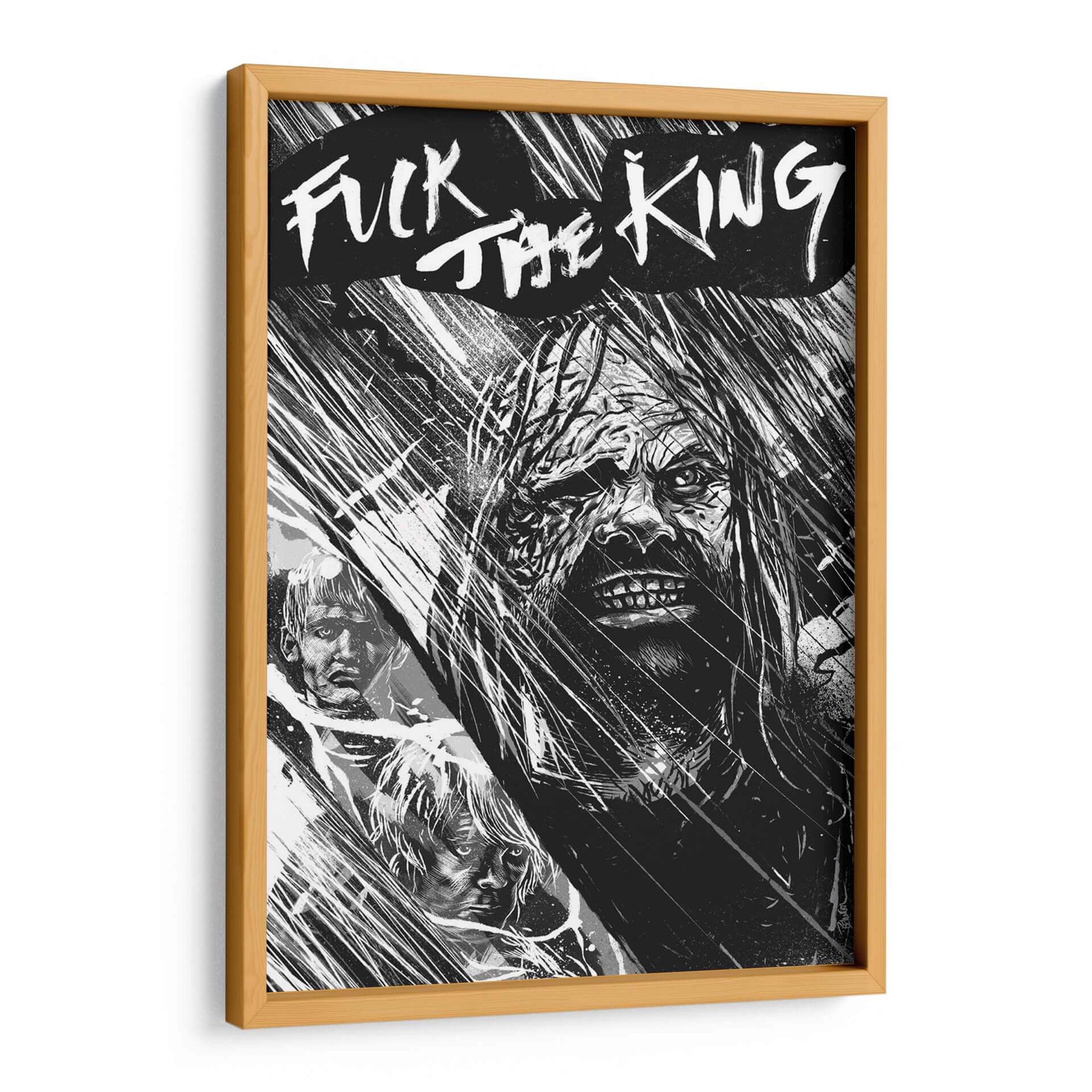 Sumérgete en la intensidad cruda y el impacto visual de este cuadro decorativo, una obra que desafía las convenciones y provoca la reflexión. La pieza presenta un primer plano dramático de un rostro rugoso y expresivo, con una mirada penetrante que parece cargar con el peso de la historia y la rebelión. Alrededor, emergen figuras infantiles, sus rostros jóvenes y serios contrastando con la figura principal, creando una narrativa visual compleja y evocadora. La paleta de colores, estrictamente monocromática en blanco y negro con intensos contrastes de luz y sombra, añade una capa de dramatismo y urgencia, acentuando las texturas y los detalles finos. El estilo, que recuerda al grabado o al dibujo a trazo, confiere a la obra una energía visceral y un toque de rebeldía. "Fuck the King" es más que una imagen; es una declaración de poder, resistencia y una crítica social que resonará en espacios audaces y contemporáneos. Ideal para quienes buscan piezas de arte que generen conversación y aporten un carácter distintivo a su hogar u oficina, esta obra es un punto focal innegable que inyectará personalidad y un espíritu desafiante a cualquier decoración moderna. Su fuerte composición y mensaje la convierten en una elección perfecta para salas de estar, estudios o espacios creativos que buscan expresar audacia.