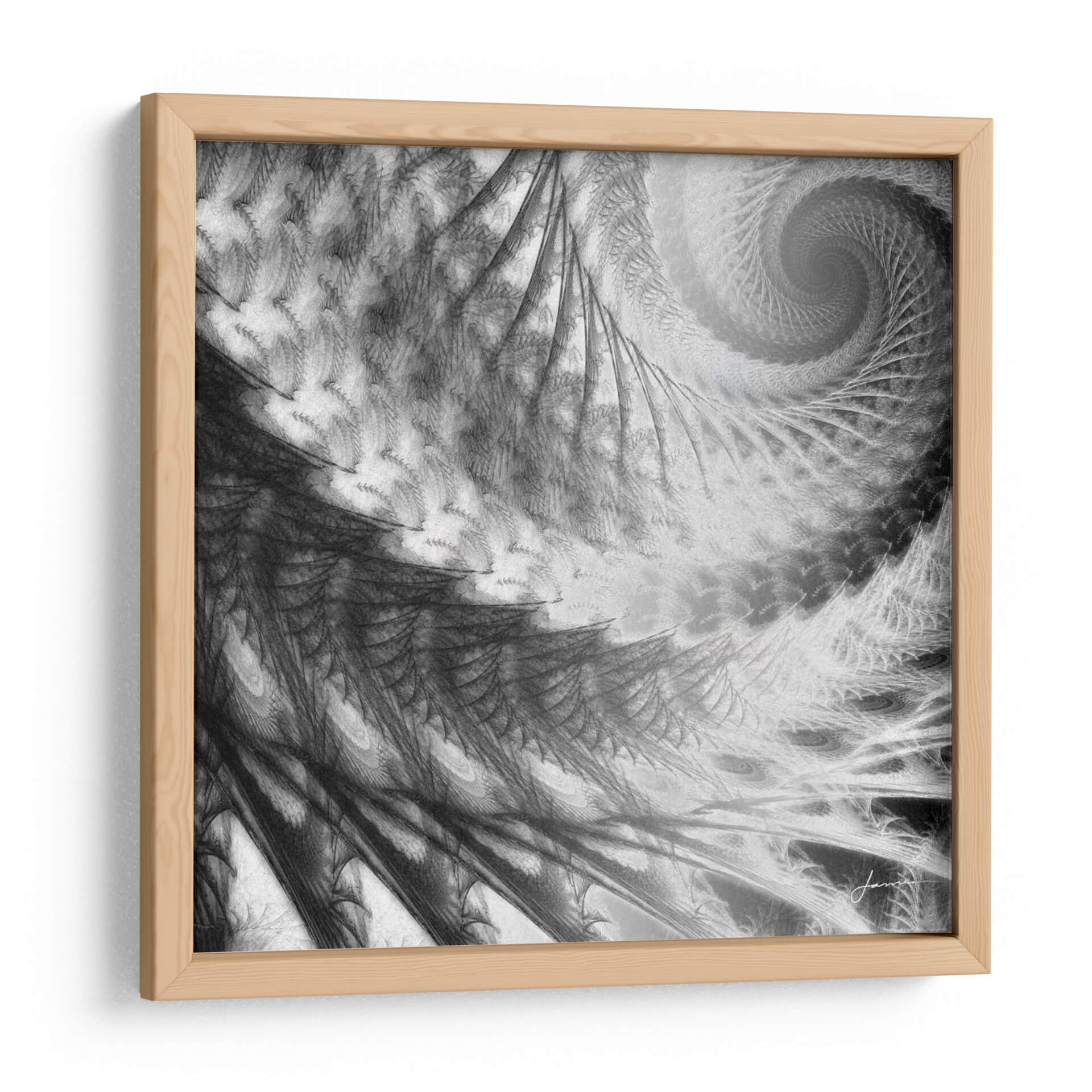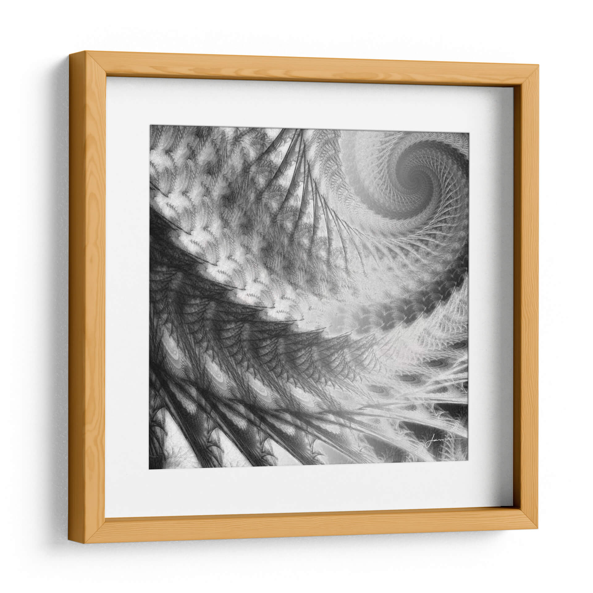 Sumérgete en la hipnótica belleza de "Helix Ii", una obra de arte digital que evoca la fascinación por las espirales y las estructuras fractales de la naturaleza. El artista James Burghardt crea un fascinante juego de luces y sombras a través de una paleta monocromática, donde las intrincadas formas se despliegan como un remolino cósmico o una delicada estructura biológica. La composición, que se expande desde un punto central hacia los bordes, guía la mirada del espectador a través de un viaje visual lleno de detalles y texturas. Esta pieza abstracta, con su atmósfera de misterio y descubrimiento, es ideal para añadir un toque de sofisticación moderna a cualquier espacio, ya sea una sala de estar, un estudio o una oficina. "Helix Ii" no es solo una decoración, es una invitación a la contemplación, un diálogo entre la precisión matemática y la expresión artística que sin duda capturará la atención y generará conversación. Transforma tu pared en una ventana a un universo de formas en constante evolución con este impactante cuadro decorativo.