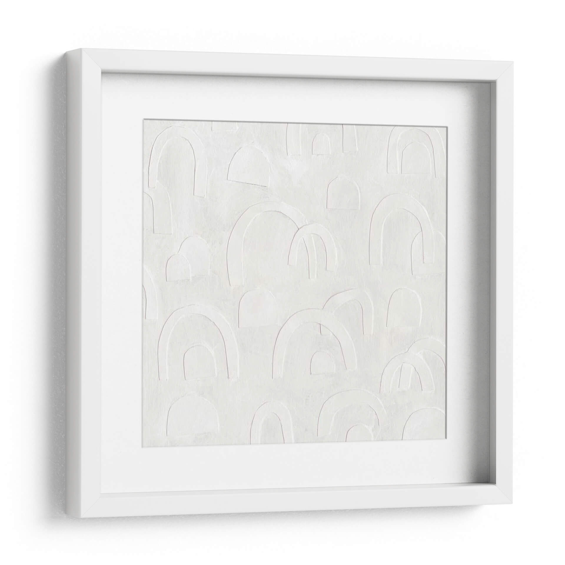Sumérgete en la serenidad y la simplicidad con 'Hopscotch I', una obra de arte de Emma Scarvey que redefine la elegancia minimalista. Este cuadro decorativo presenta un patrón rítmico de arcos y formas semicirculares en relieve, creando una textura visual intrigante sobre un fondo neutro y texturizado. La paleta de colores predominantemente blanca o de tonos muy claros aporta una sensación de calma y pureza, lo que la convierte en la pieza ideal para cualquier espacio que busque transmitir tranquilidad y sofisticación. El estilo abstracto y contemporáneo de Scarvey se manifiesta en la repetición lúdica de sus formas, evocando una sensación de juego y ligereza, similar a las casillas de un juego de rayuela. Esta obra es perfecta para añadir un toque sutil pero impactante a salas de estar, dormitorios, pasillos o incluso oficinas, complementando una amplia gama de decoraciones interiores, desde las más modernas y escandinavas hasta las más bohemias y orgánicas. Su composición cuidadosamente equilibrada y su enfoque en la forma y la textura la convierten en una adición versátil y atemporal a tu colección de arte mural, invitando a la contemplación y añadiendo profundidad a tu entorno.