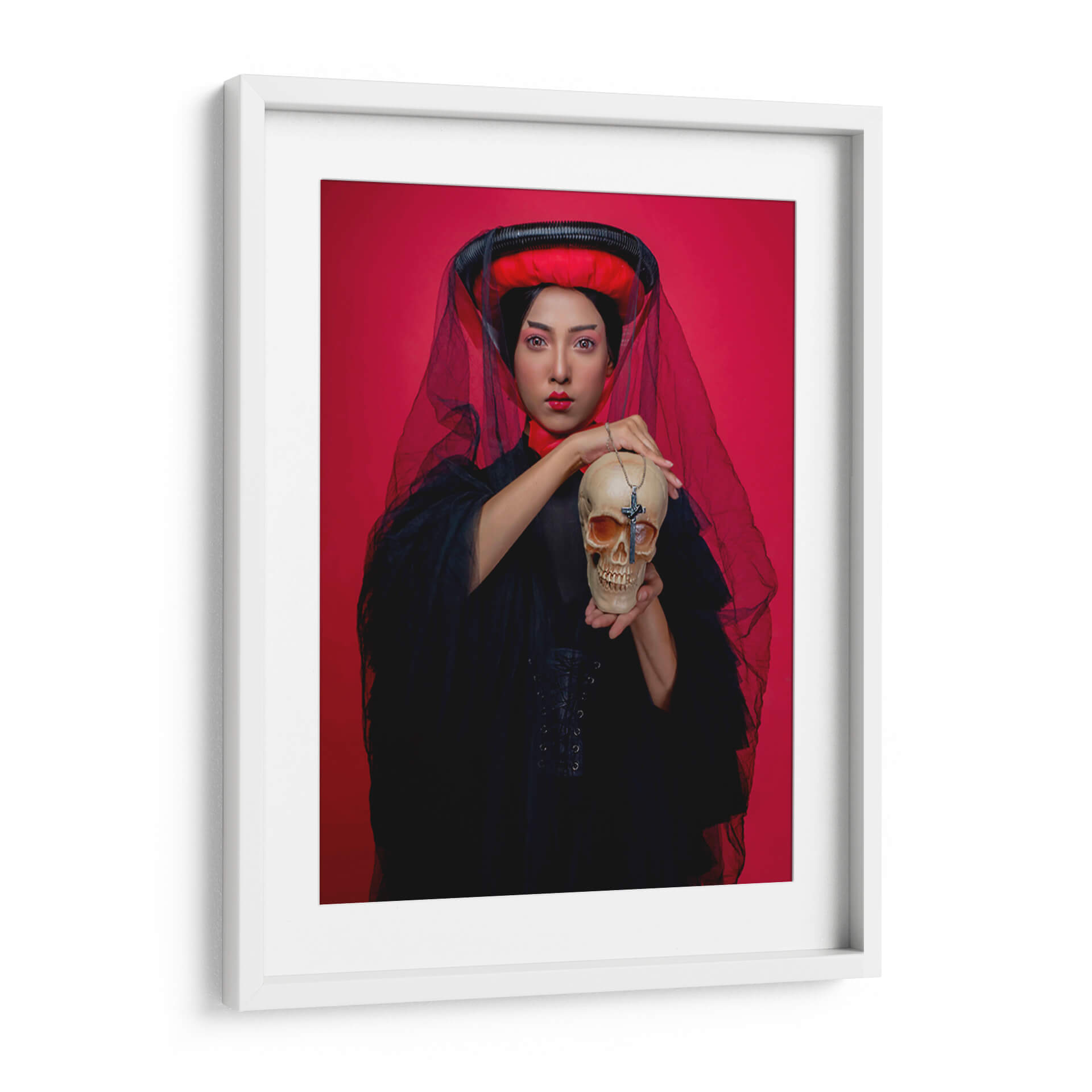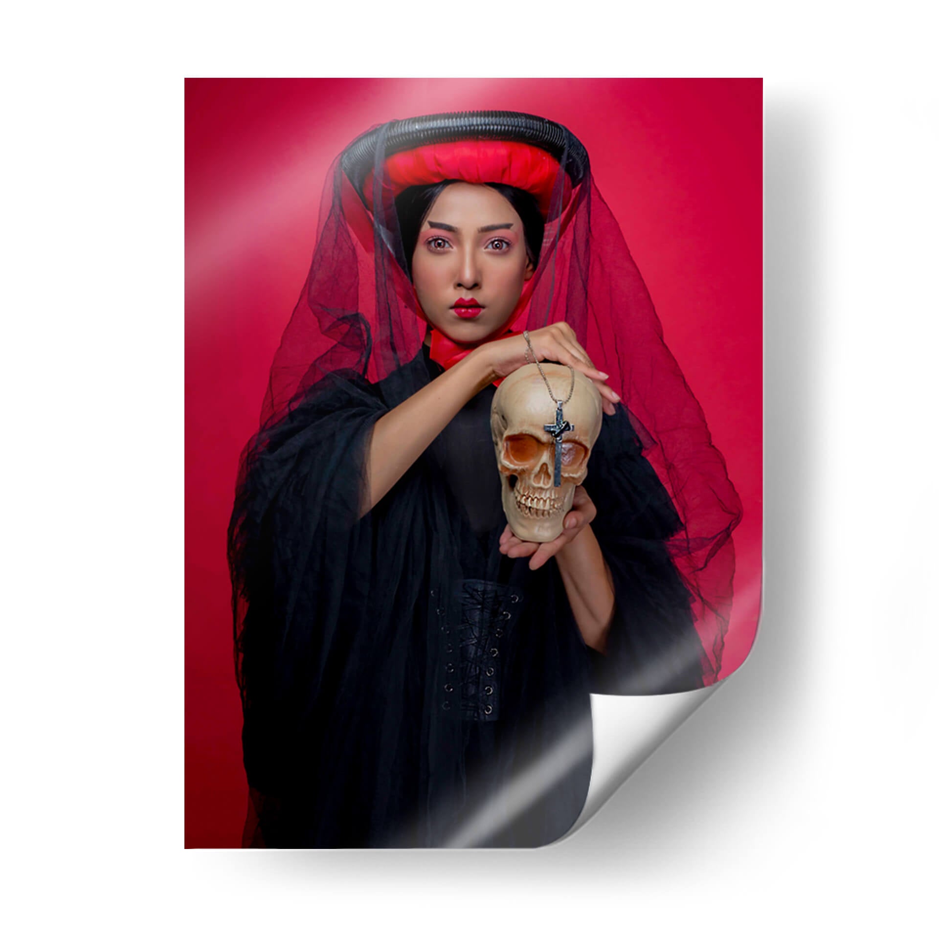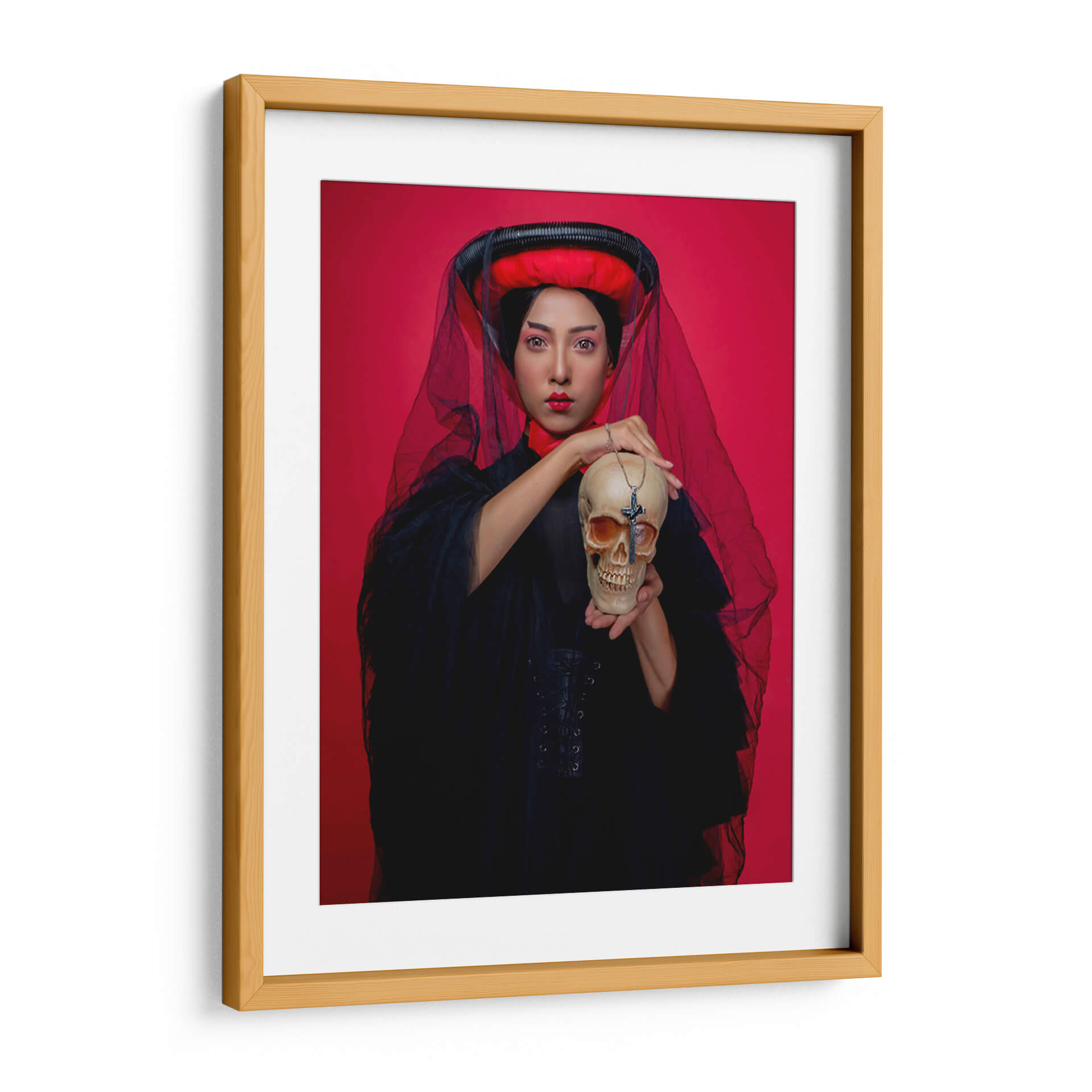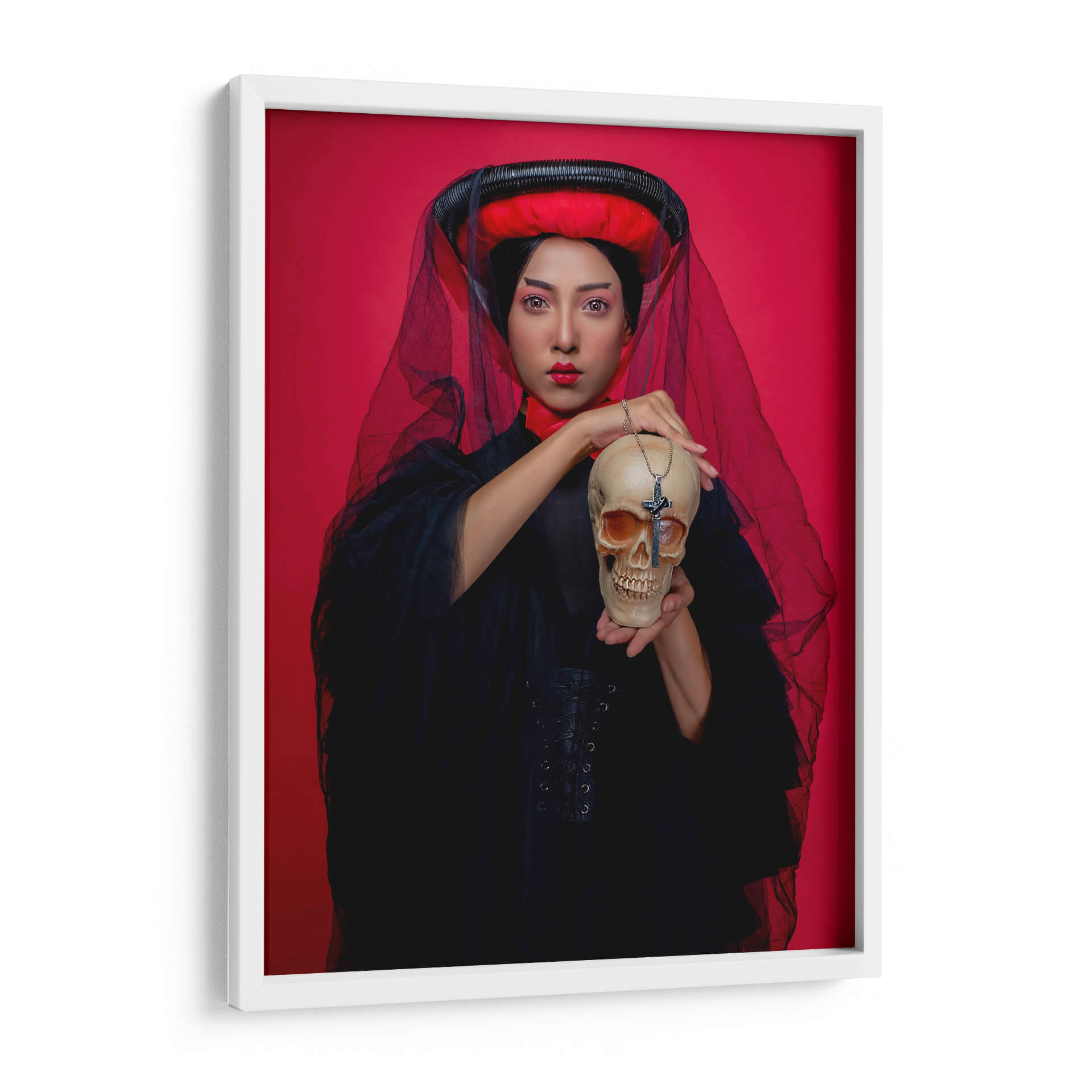 Sumérgete en el enigmático mundo de "JAPONESES MISTERIOSOS", una obra de arte contemporáneo que trasciende lo ordinario. Esta cautivadora pieza visual presenta a una figura femenina vestida con atuendos oscuros y un velo etéreo, su mirada intensa fija en el espectador mientras sostiene un cráneo adornado con un colgante cruciforme. El vibrante fondo rojo intensifica el drama y el misterio de la escena, creando un contraste impactante con la figura central y el tono pálido del cráneo. La composición, con su enfoque directo y la pose deliberada de la modelo, evoca una atmósfera de intriga, poder y reflexión sobre la dualidad de la vida y la muerte, o quizás sobre la feminidad y la fuerza interior. La paleta de colores, dominada por el rojo escarlata y los profundos negros, junto con los tonos tierra del cráneo, añade una dimensión de sofisticación y audacia. Ideal para espacios que buscan un toque de vanguardia y conversación, este cuadro decorativo es perfecto para salas de estar modernas, estudios creativos u oficinas que desean proyectar una imagen de carácter y profundidad. La habilidad del artista Debasish Chattopadhyay para capturar una narrativa visual tan potente en "JAPONESES MISTERIOSOS" la convierte en una adición imprescindible para los amantes del arte que aprecian las piezas con significado y una estética audaz. Transforma tu entorno con esta obra que invita a la contemplación y añade un aire de misterio contemporáneo.