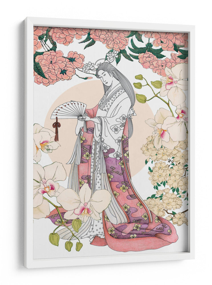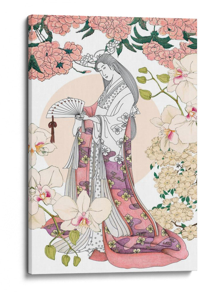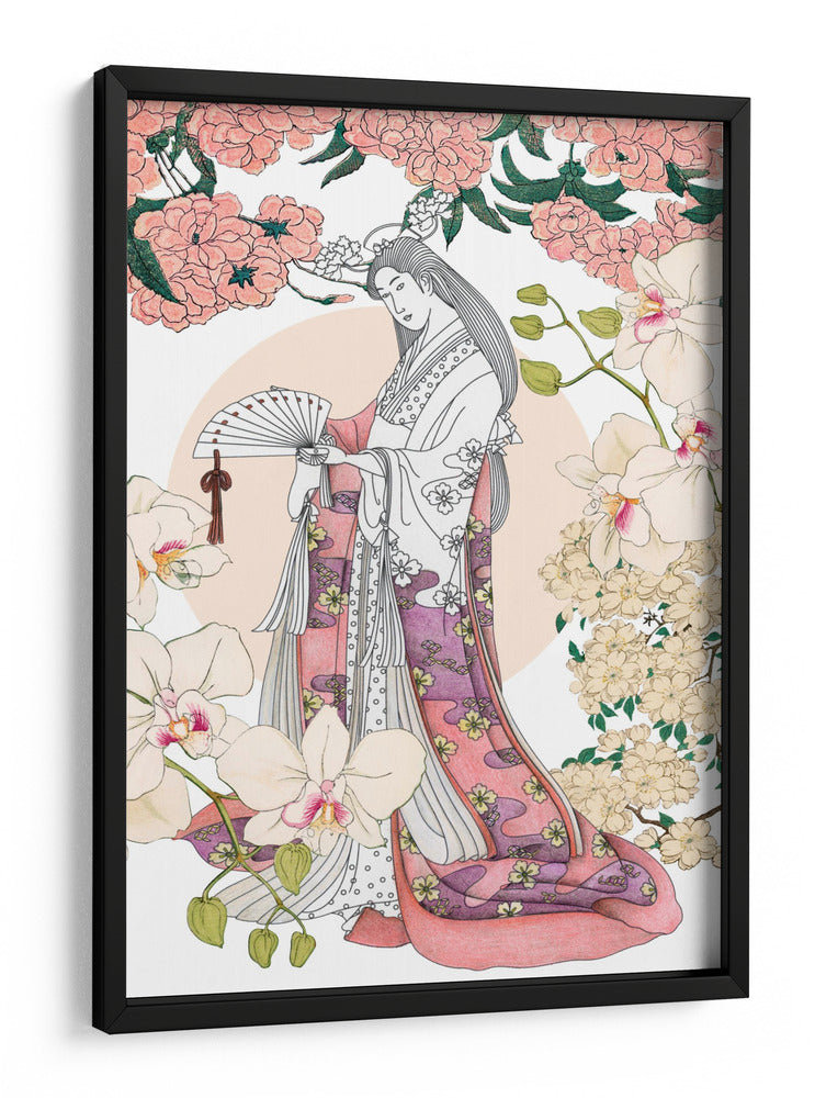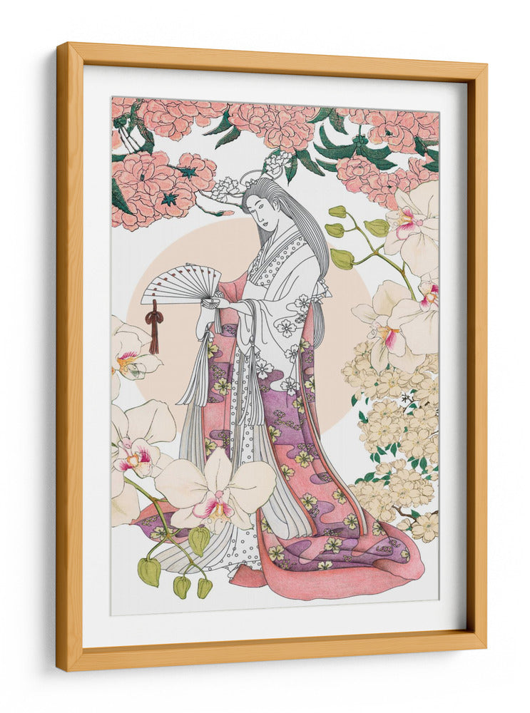 Sumérgete en la serena belleza de "Jardín Japonés un Collage", una obra de arte inspirada en la estética oriental que captura la gracia y la delicadeza. Esta pieza presenta una figura femenina elegantemente vestida con un kimono detallado, adornado con motivos florales y patrones fluidos en tonos rosados y púrpuras. La composición está enmarcada por exuberantes flores de cerezo en tonos pastel y orquídeas delicadas, creando una atmósfera de tranquilidad y armonía natural. Los colores suaves, predominantemente rosados, blancos y toques de verde y púrpura, evocan una sensación de paz y refinamiento, ideal para añadir un toque de sofisticación a cualquier espacio. El estilo de "collage" sugiere una técnica cuidadosa que fusiona elementos para crear una narrativa visual cautivadora. Este cuadro decorativo es perfecto para quienes buscan infundir calma y belleza en su hogar u oficina, sirviendo como un punto focal elegante en salas de estar, dormitorios o estudios, transportando al espectador a un oasis de serenidad y encanto japonés. Una elección exquisita para embellecer tus paredes con arte que inspira contemplación.