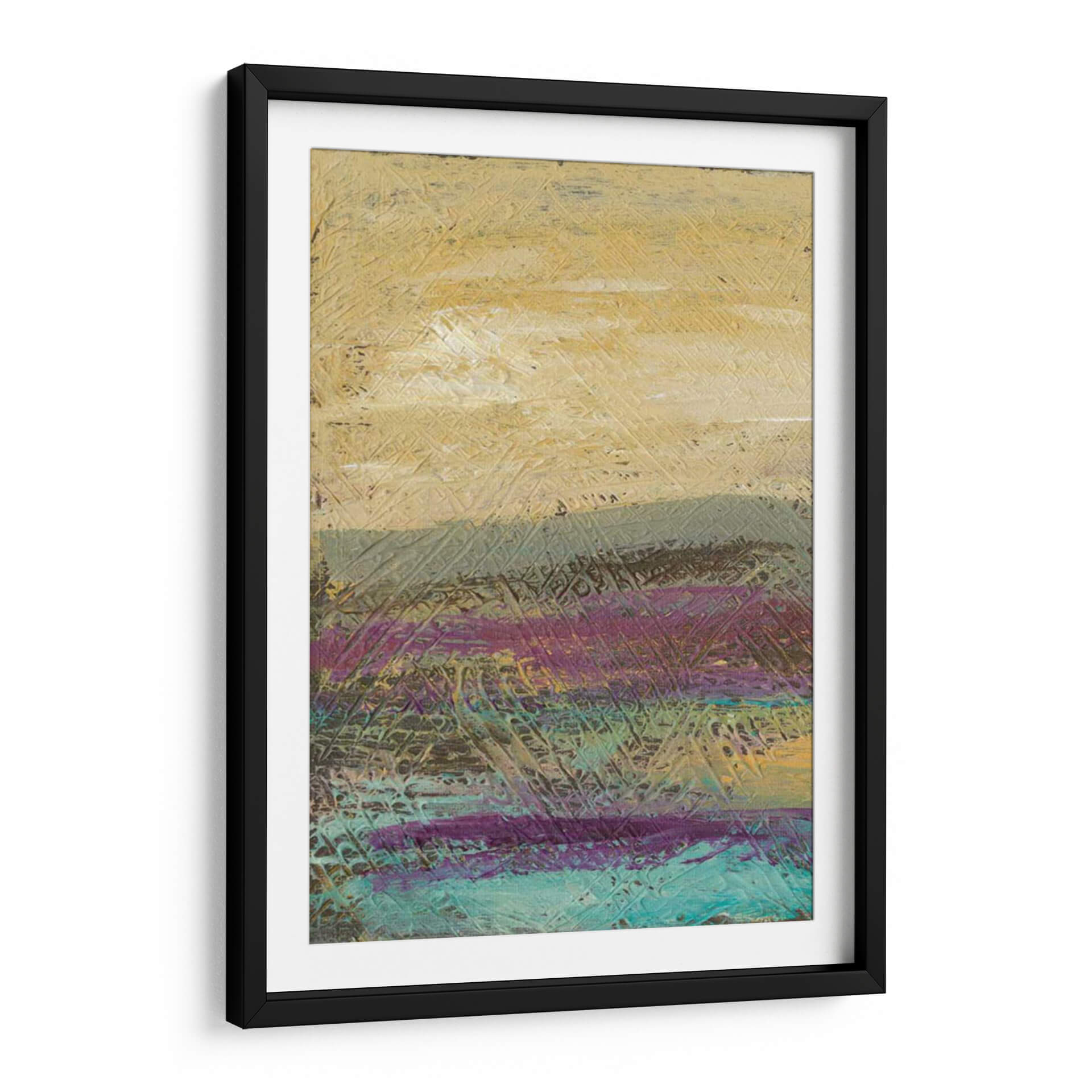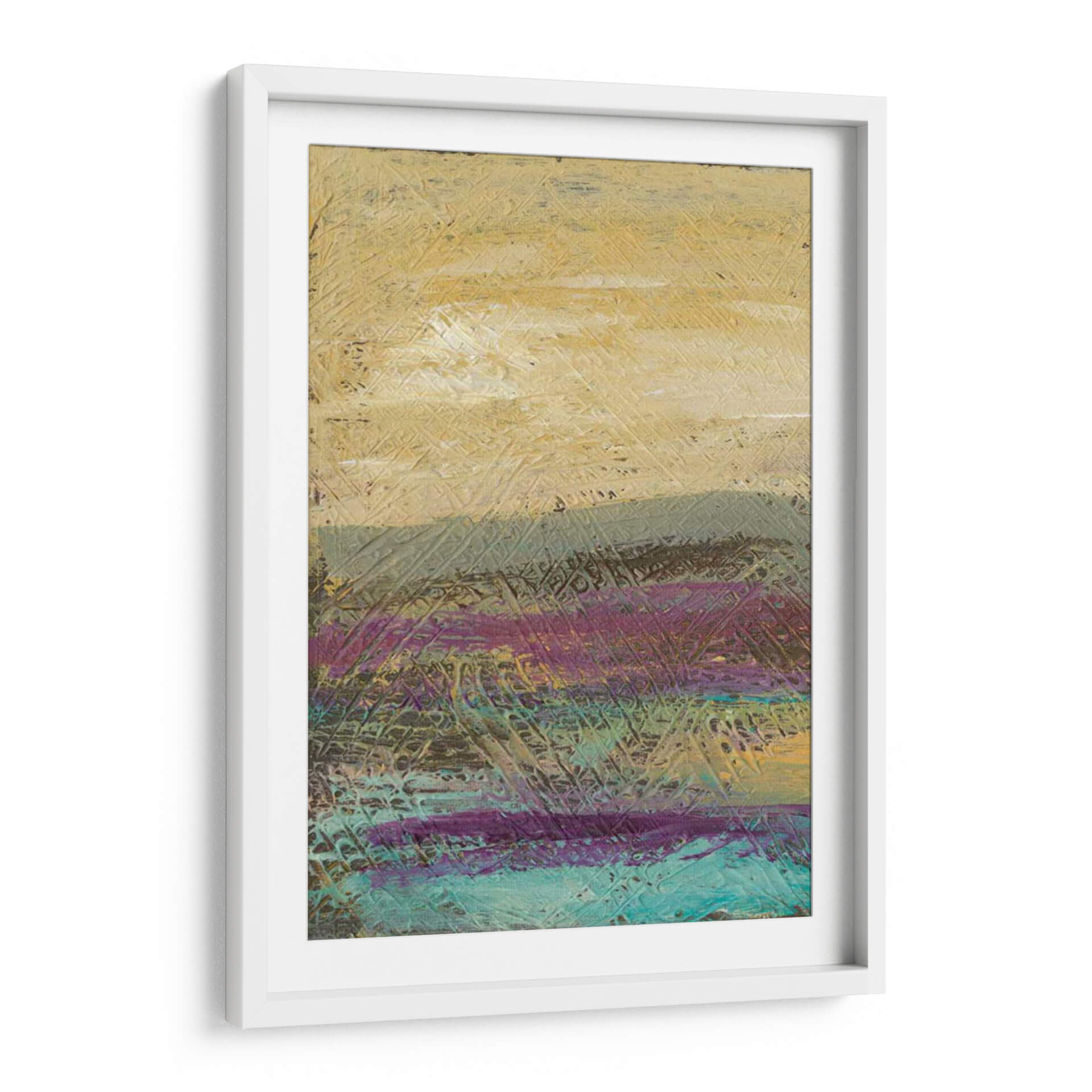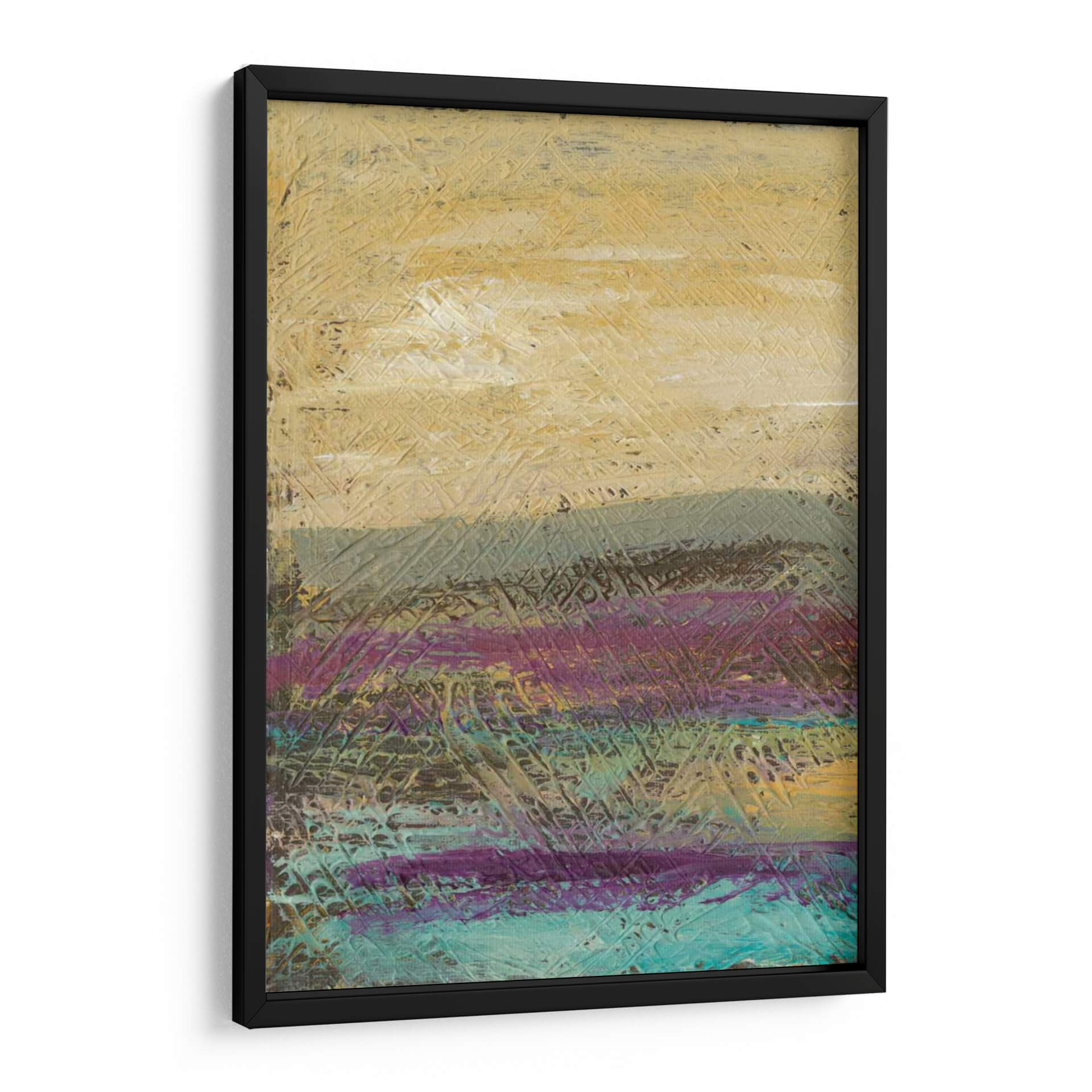 Sumérgete en la evocadora obra de arte "Me Desertscape" de Lisa Choate, una pieza que captura la esencia de un paisaje desértico con un toque contemporáneo. A través de una paleta de colores cálidos y terrosos, que incluye ocres, grises apagados y vibrantes toques de púrpura y turquesa, esta pintura abstracta crea una atmósfera de serenidad y misterio. Las texturas ricas y las pinceladas audaces sugieren el paso del tiempo y la belleza indómita de la naturaleza, invitando a la contemplación. El estilo abstracto de Choate permite una interpretación personal, haciendo de este cuadro decorativo una adición versátil para cualquier espacio, desde un hogar acogedor hasta una oficina moderna que busca un punto focal inspirador. Ideal para quienes aprecian el arte contemporáneo con profundidad emocional y una estética distintiva. Transforma tu pared en una ventana a un mundo de texturas y colores que invitan a la calma y la reflexión.