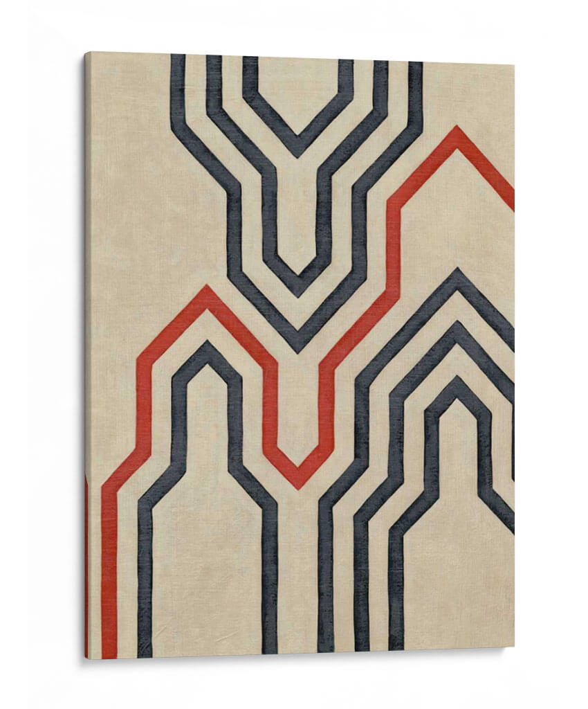 Sumérgete en la cautivadora obra de arte 'Me Desvío' de Chariklia Zarris, una pieza que redefine la abstracción geométrica con una paleta de colores sobria pero impactante. Este cuadro decorativo presenta un diseño lineal intrincado, donde las líneas oscuras azul marino y los vibrantes toques de rojo se entrelazan sobre un fondo texturizado de tono arena. La composición, cuidadosamente equilibrada, evoca una sensación de movimiento y profundidad, invitando al espectador a perderse en sus patrones repetitivos y su sutil asimetría. La obra trasciende la mera decoración, ofreciendo una experiencia visual que estimula la mente y añade un toque de sofisticación moderna a cualquier espacio. Ideal para salas de estar contemporáneas, estudios o incluso oficinas que buscan un elemento de diseño audaz y refinado. "Me Desvío" no es solo un adorno; es una declaración de estilo que dialoga con el entorno, aportando carácter y una energía controlada a través de sus formas geométricas limpias y su armoniosa combinación cromática. Añade esta pieza única a tu colección y transforma tu pared en un lienzo de expresión artística.