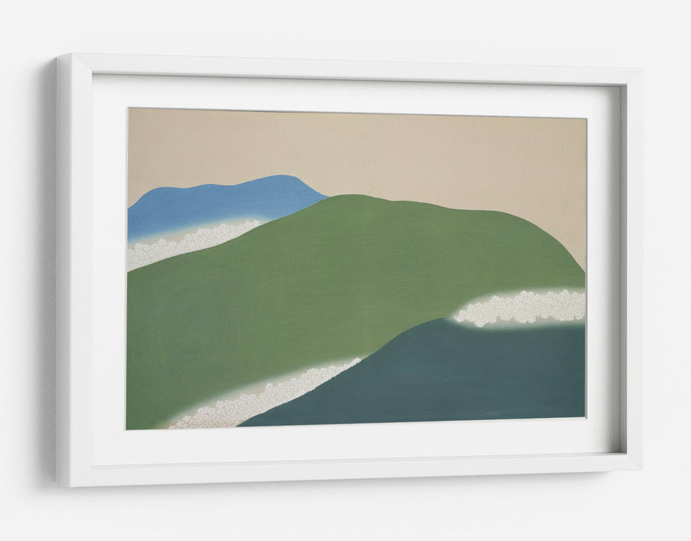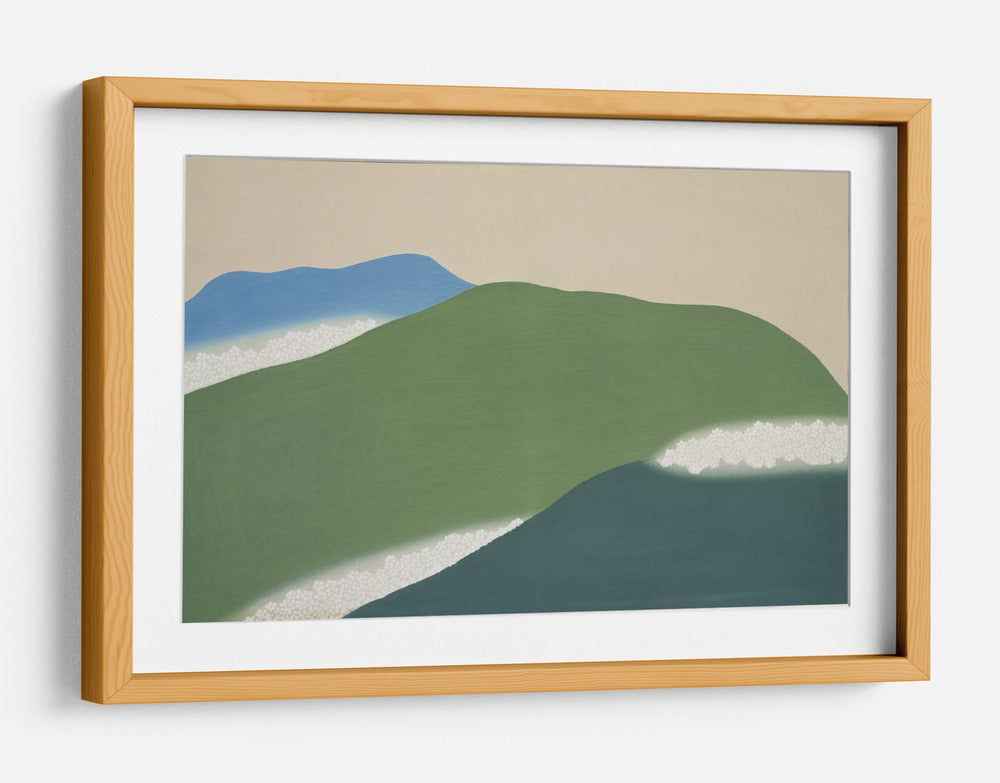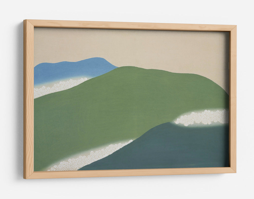 Sumérgete en la serenidad de "Montañas Verdes de Momoyogusa", una obra de arte que captura la esencia de la naturaleza con un estilo japonés distintivo. Este cuadro decorativo presenta suaves laderas verdes que se deslizan hacia un profundo azul marino, evocando la tranquilidad de un paisaje sereno. Delicadas líneas de blanco salpican la composición, sugiriendo espuma marina o la textura de la vegetación, añadiendo un toque etéreo a la escena. El fondo, de un tono pálido y cálido, permite que los elementos naturales destaquen, creando una atmósfera de calma y contemplación. Inspirada en el arte tradicional japonés, esta pieza combina formas simplificadas y una paleta de colores armónica para crear un efecto visual relajante y elegante. "Montañas Verdes de Momoyogusa" es ideal para añadir un toque de sofisticación natural a tu sala de estar, dormitorio o estudio, transformando cualquier espacio en un refugio de paz y belleza. Su diseño minimalista y evocador lo convierte en una adición perfecta para interiores modernos y contemporáneos, aportando una conexión con la naturaleza y una sensación de equilibrio.
