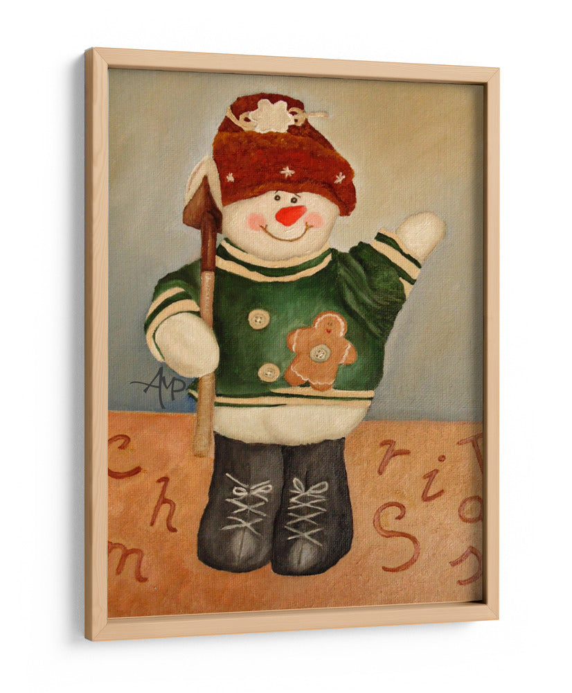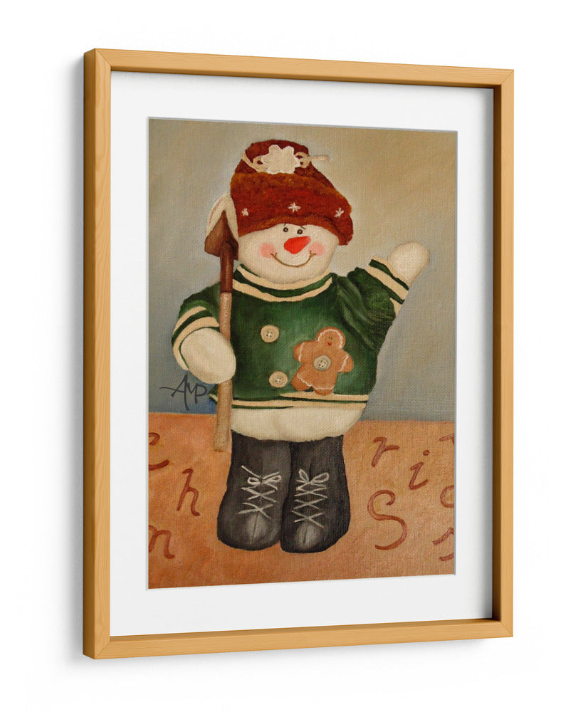 Celebra la alegría de la temporada con "Muñeco de Nieve Junior", una encantadora obra de arte de Ángeles M. Pomata que irradia calidez y espíritu festivo. Esta pieza captura la esencia de la infancia y la magia invernal a través de su encantadora representación de un muñeco de nieve con un suéter verde vibrante y detalles de galleta de jengibre. Los colores cálidos y terrosos del fondo, junto con las sutiles letras que sugieren la palabra "Christmas", crean una atmósfera acogedora y nostálgica. El estilo de pintura, con sus pinceladas visibles y su encanto artesanal, lo convierte en un cuadro decorativo perfecto para añadir un toque de personalidad a cualquier espacio. Ideal para habitaciones infantiles, cocinas o cualquier rincón donde se desee infundir un espíritu alegre y acogedor. "Muñeco de Nieve Junior" no es solo una imagen, es una invitación a revivir los momentos más dulces del invierno y a decorar tu hogar con arte que habla al corazón. Su diseño es versátil, encajando maravillosamente en decoraciones rústicas, vintage o contemporáneas que buscan un elemento lúdico y tierno. Añade esta pieza única a tu colección y deja que su encanto atemporal llene tu vida de sonrisas.