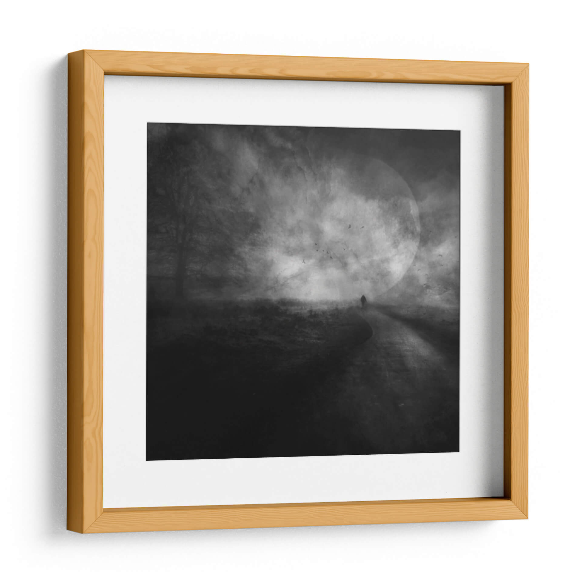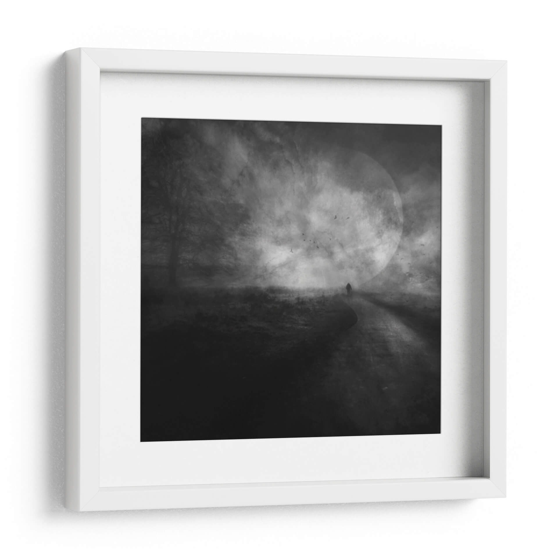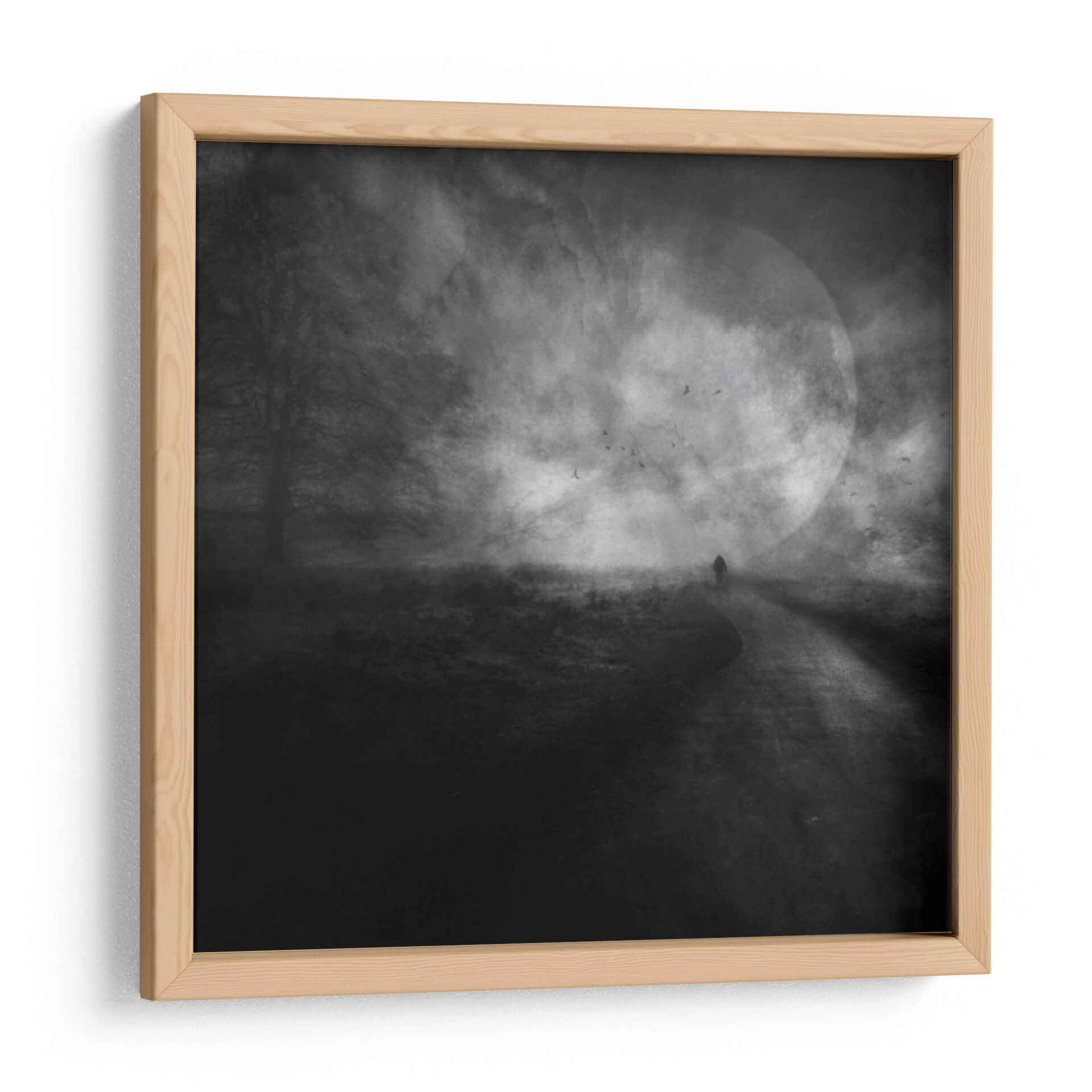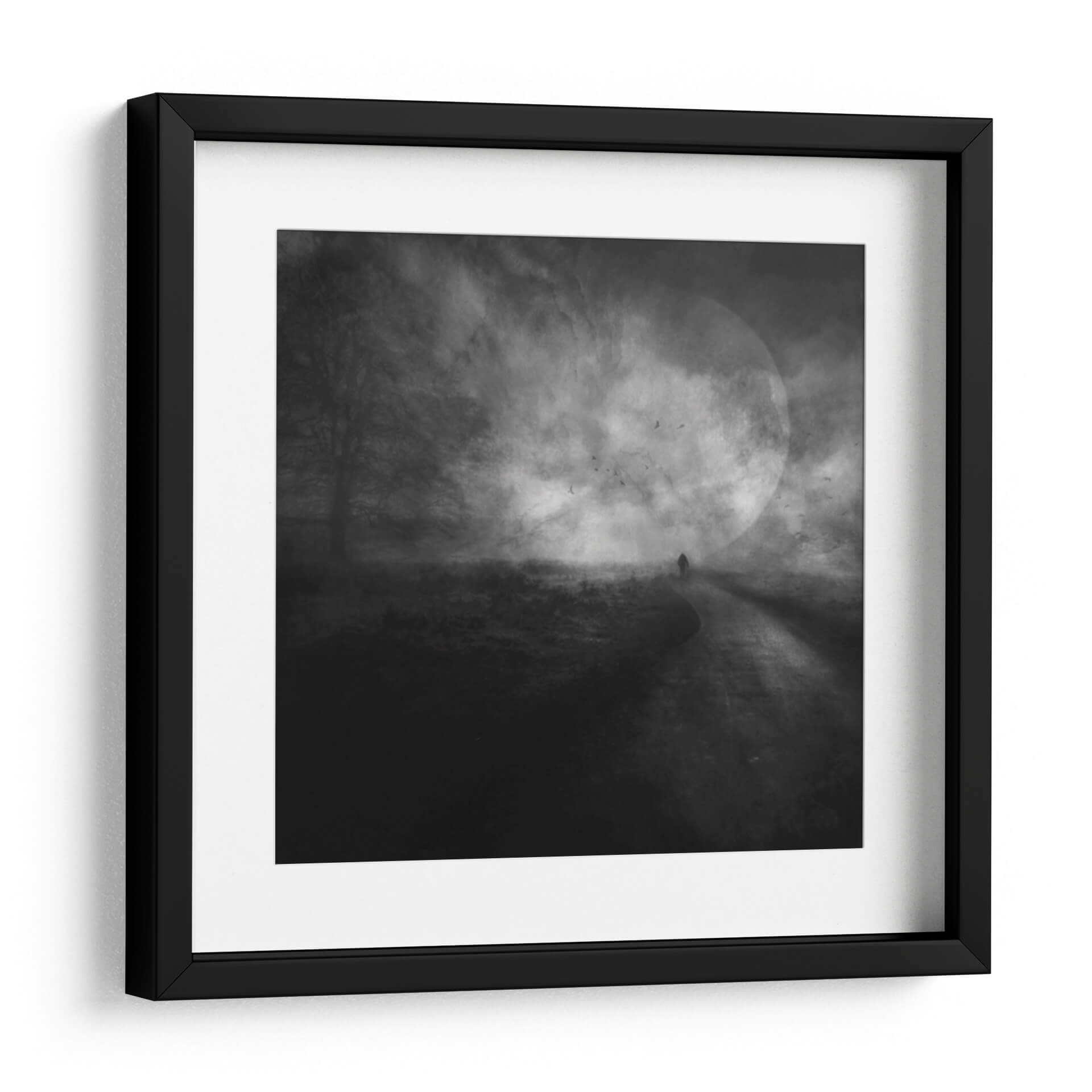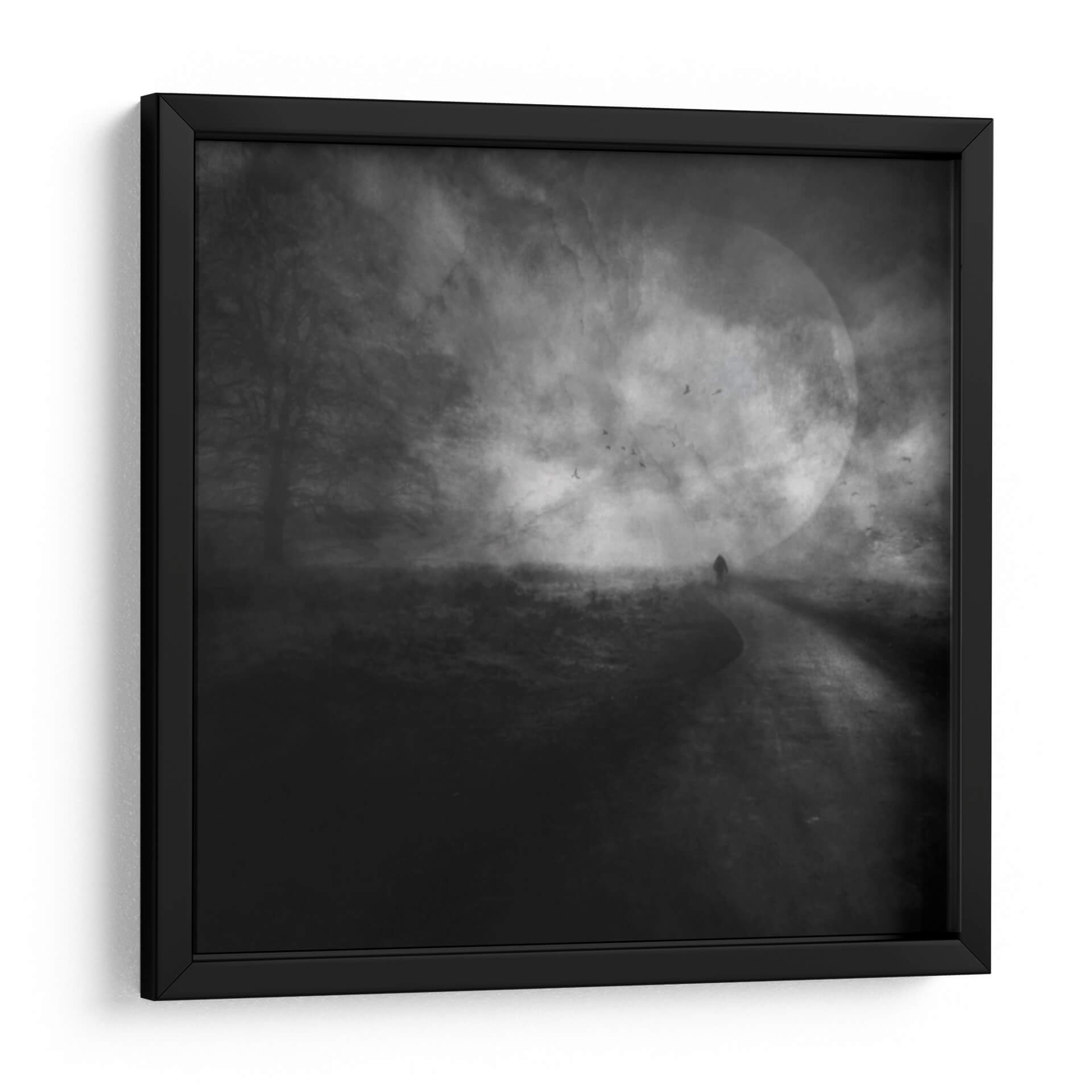 Sumérgete en la misteriosa y evocadora atmósfera de "Noche en blanco y negro..." de Robert Fabrowski, un cuadro decorativo que captura la esencia de la soledad y el viaje personal. Esta obra, en una paleta monocromática de intensos negros, grises profundos y blancos etéreos, presenta un paisaje onírico dominado por una luna grande y brumosa que ilumina un camino sinuoso. Una figura solitaria camina hacia el horizonte, invitando a la reflexión sobre el destino y la introspección. El estilo evocador y la composición dramática, con la silueta de un árbol a la izquierda y un grupo de pájaros en el cielo, crean una narrativa visual cautivadora. "Noche en blanco y negro..." es ideal para aquellos que buscan añadir un toque de profundidad emocional y sofisticación a su hogar u oficina. Este cuadro decorativo es perfecto para espacios que buscan transmitir calma, misterio y una conexión con la naturaleza o el viaje interior. Su estética minimalista y artística lo convierte en una pieza versátil, capaz de complementar desde un salón moderno hasta un estudio sereno, aportando una atmósfera de introspección y elegancia atemporal a cualquier ambiente, convirtiéndose en un punto focal que invita a la contemplación.
