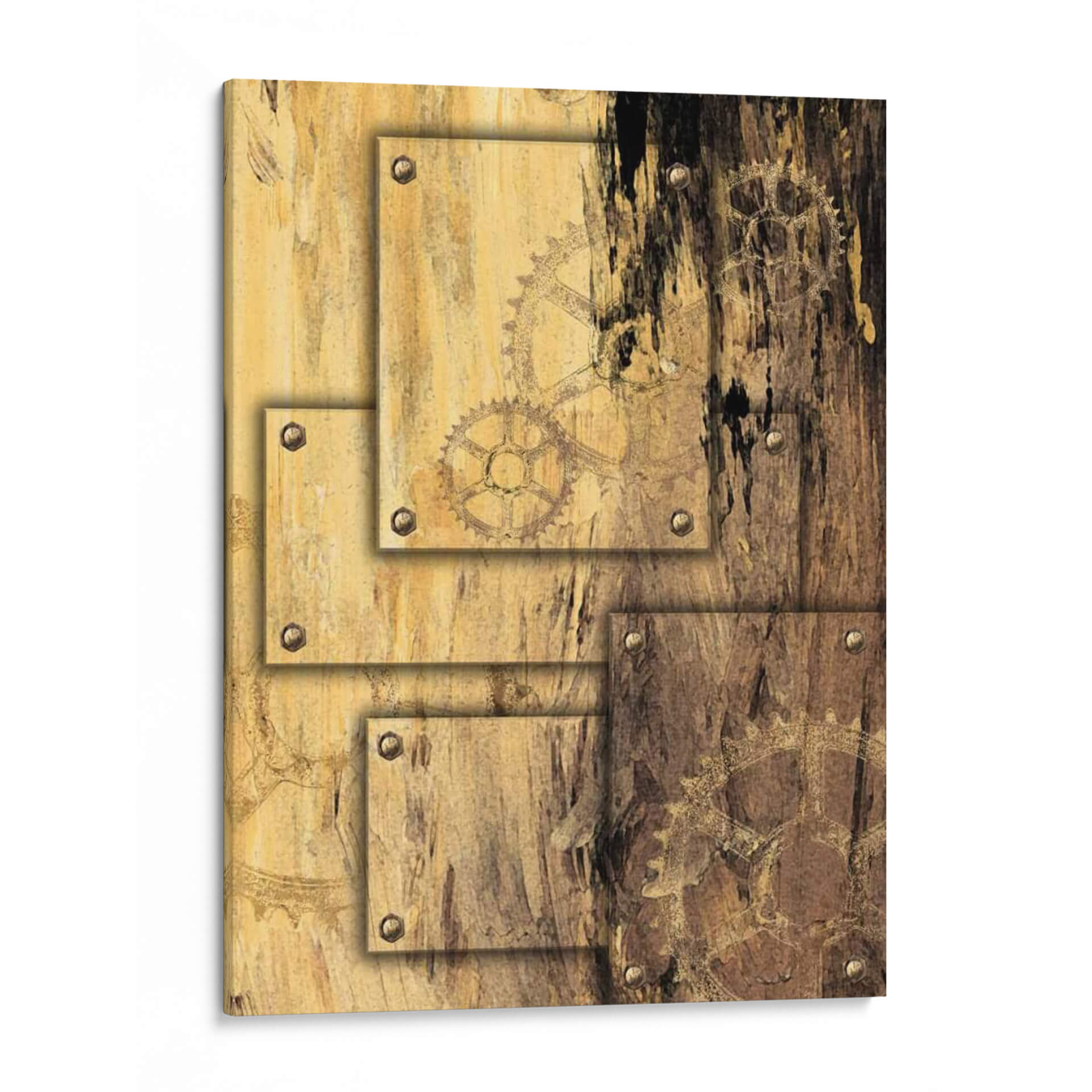 Sumérgete en la intrincada belleza del cuadro decorativo "Nuevo Punk V" de Andrea James. Esta obra maestra visual evoca una atmósfera de ingenio y estética industrial, fusionando texturas rústicas de madera con detalles mecánicos de engranajes. La paleta de colores, dominada por tonos tierra, dorados y marrones profundos, crea una sensación de calidez y robustez, mientras que la composición superpuesta de paneles y remaches añade una dimensión táctil y una sensación de profundidad. Los intrincados detalles de los engranajes, con su diseño grabado, sugieren un mundo de maquinaria intrincada y un espíritu de la era steampunk, aportando un toque de misterio y sofisticación. "Nuevo Punk V" es la elección perfecta para añadir un carácter distintivo y un toque de arte conceptual a tu hogar u oficina. Ideal para espacios que buscan un acento de diseño industrial, vintage o ecléctico, este cuadro decorativo se convertirá en un punto focal que inspira conversación y admiración. Su capacidad para evocar la complejidad y la belleza de la ingeniería lo hace perfecto para estudios, salas de estar o cualquier lugar donde se aprecie la originalidad y la fuerza visual.