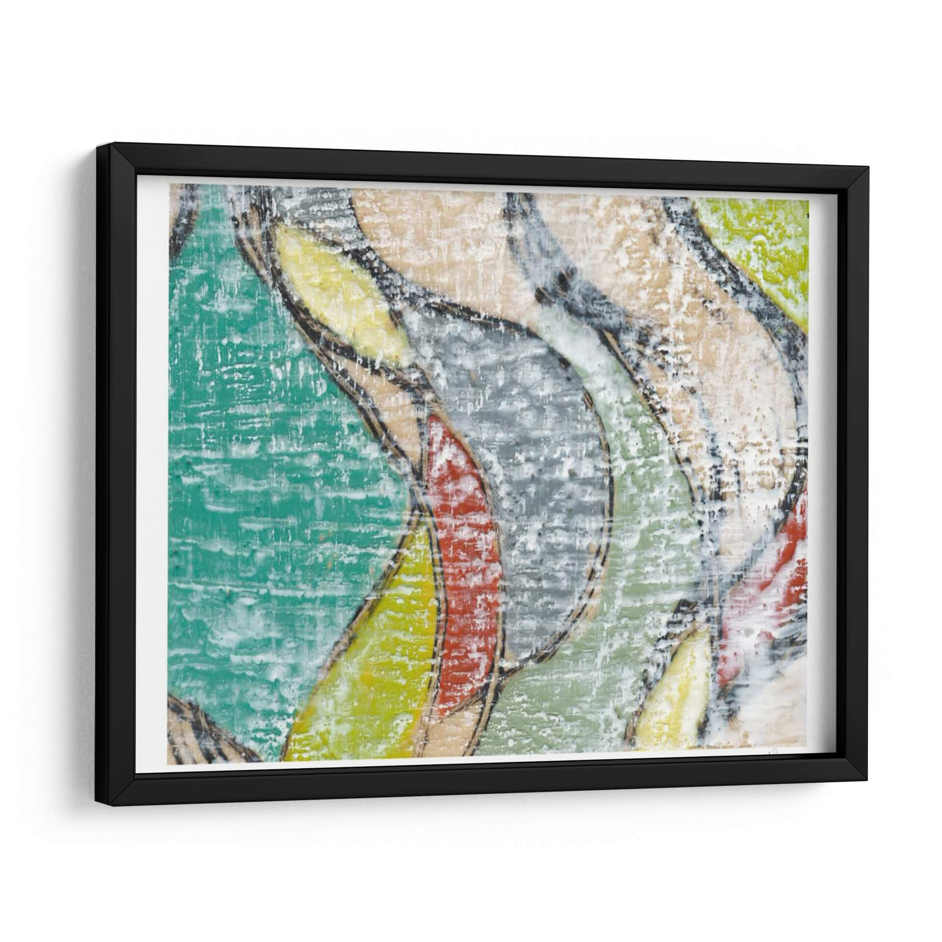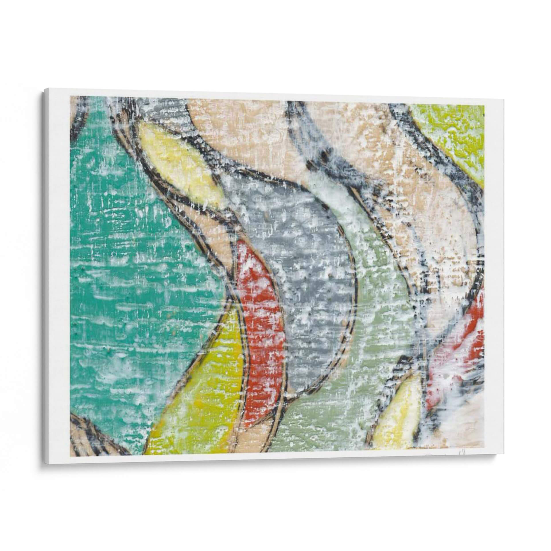 Sumérgete en la vibrante energía de "Ondulado Color IV", una obra de arte abstracta contemporánea de Jennifer Goldberger que captura la fluidez y el movimiento a través de una paleta de colores audaz y texturas ricas. Este cuadro decorativo presenta formas orgánicas y sinuosas entrelazadas, definidas por contornos oscuros que crean una sensación de profundidad y dinamismo. La combinación de tonos vibrantes como el turquesa y el amarillo, con toques de rojo y gris, genera un contraste visual cautivador que aporta vida y carácter a cualquier espacio. La técnica de Goldberger, que parece evocar la pincelada gestual y la aplicación textural, añade una dimensión táctil y visual única, invitando a la contemplación. Ideal para salas de estar modernas, oficinas creativas o cualquier ambiente que busque un punto focal artístico lleno de personalidad y estilo. "Ondulado Color IV" no es solo una pieza decorativa, sino una invitación a experimentar la alegría y la vitalidad a través del arte abstracto. Añade un toque de sofisticación contemporánea a tu hogar u oficina con esta pieza única que promete inspirar y energizar.