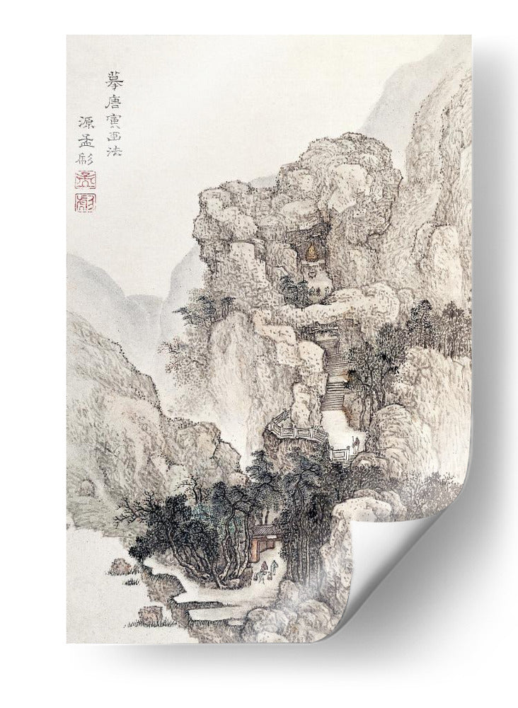 Paisaje rocoso japonés, ilustración vintage - Ko Fuyo
