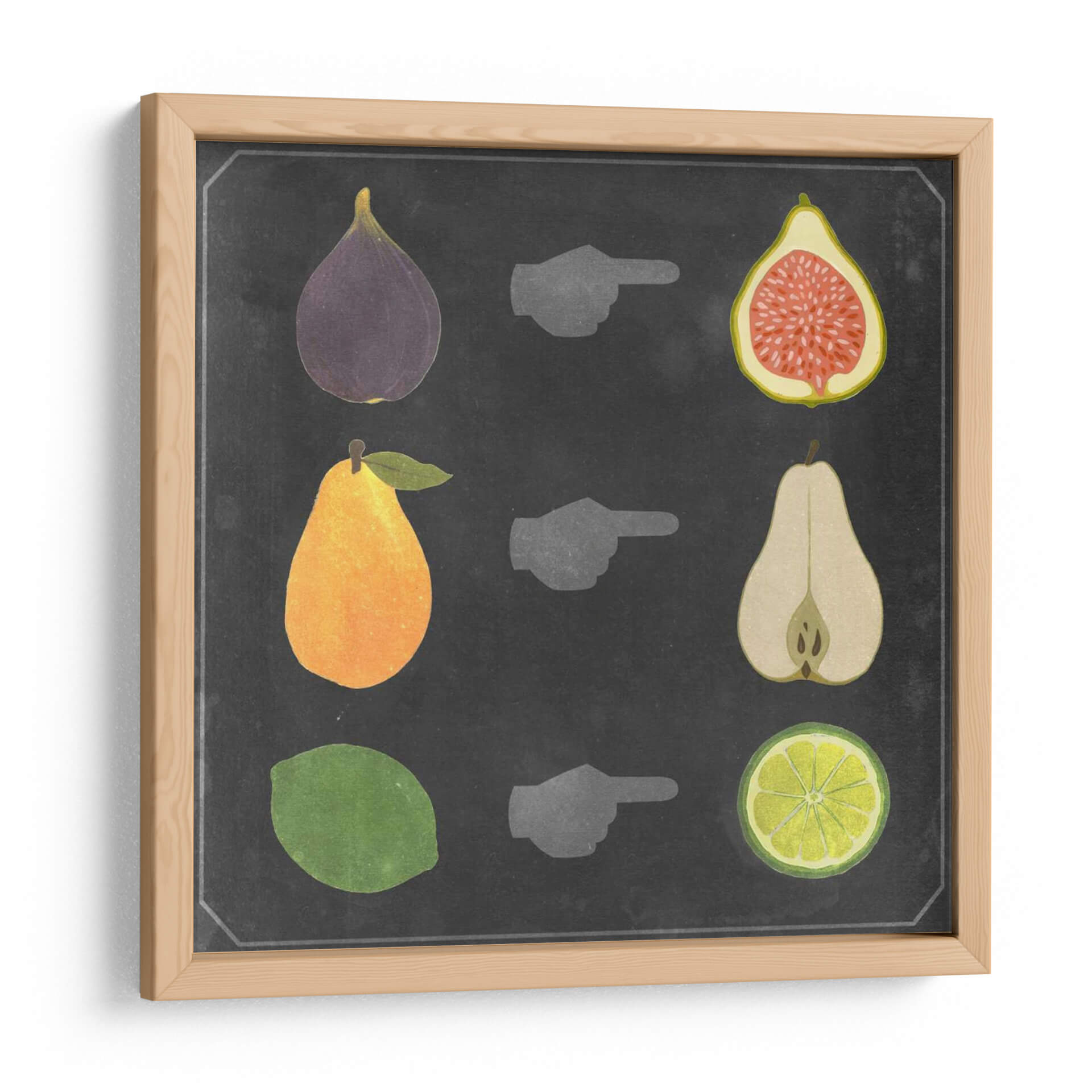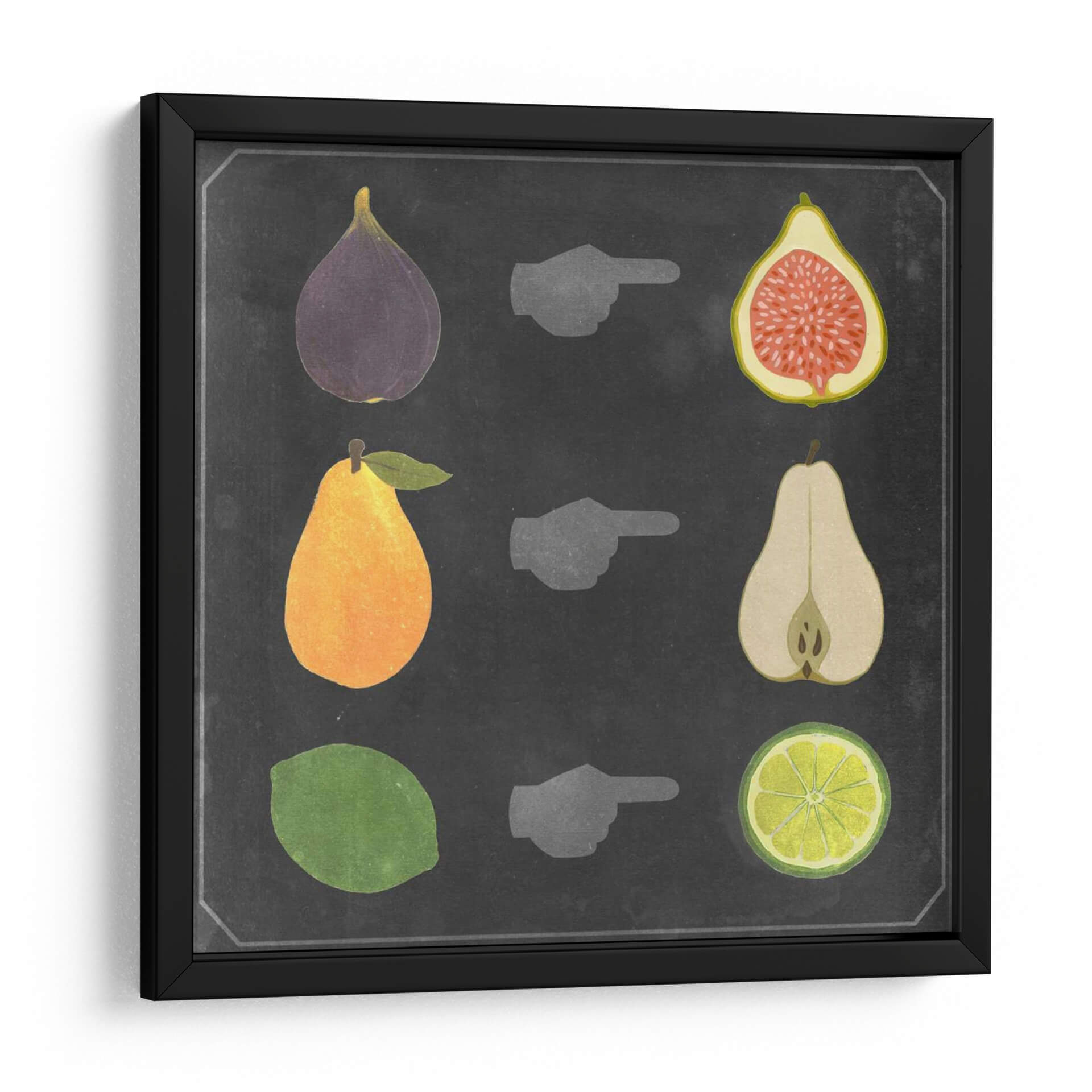 Embellece tu cocina o comedor con "Pizarra de Frutas I", una cautivadora obra de arte de Vision Studio. Este cuadro decorativo presenta una composición intrigante y colorida que evoca la frescura de la naturaleza y la sencillez de la vida. La pieza muestra un arreglo de frutas estilizadas: un higo morado, una pera amarilla y una lima verde, junto a sus contrapartes cortadas que revelan sus texturas interiores. Las siluetas de manos señalando añaden un toque lúdico y conceptual. La paleta de colores vibrantes, dominada por tonos tierra y verdes brillantes, contrasta maravillosamente con el fondo oscuro, similar a una pizarra, creando una atmósfera acogedora y artística. El estilo visual, con su enfoque en formas claras y un toque retro, lo convierte en una adición perfecta para cocinas modernas, comedores o incluso espacios comerciales que buscan un acento distintivo y de buen gusto. Este cuadro decorativo no solo añade color y vida a tus paredes, sino que también invita a la conversación y celebra la belleza de lo cotidiano a través de una perspectiva artística única. Ideal para quienes buscan un arte de pared que sea a la vez moderno y con un encanto clásico, aportando frescura y un toque de originalidad a cualquier ambiente.