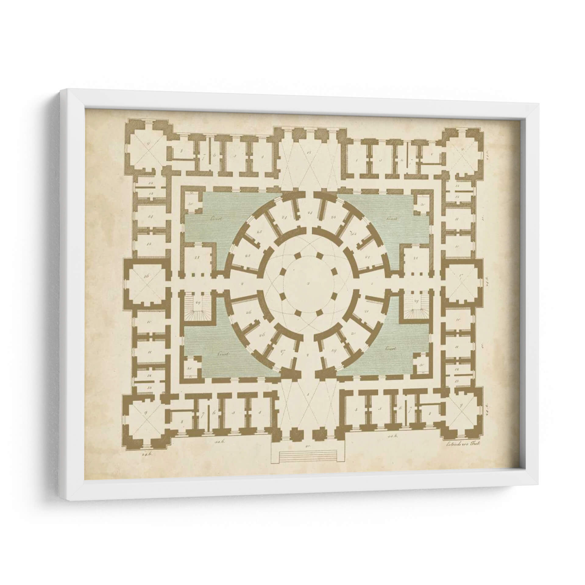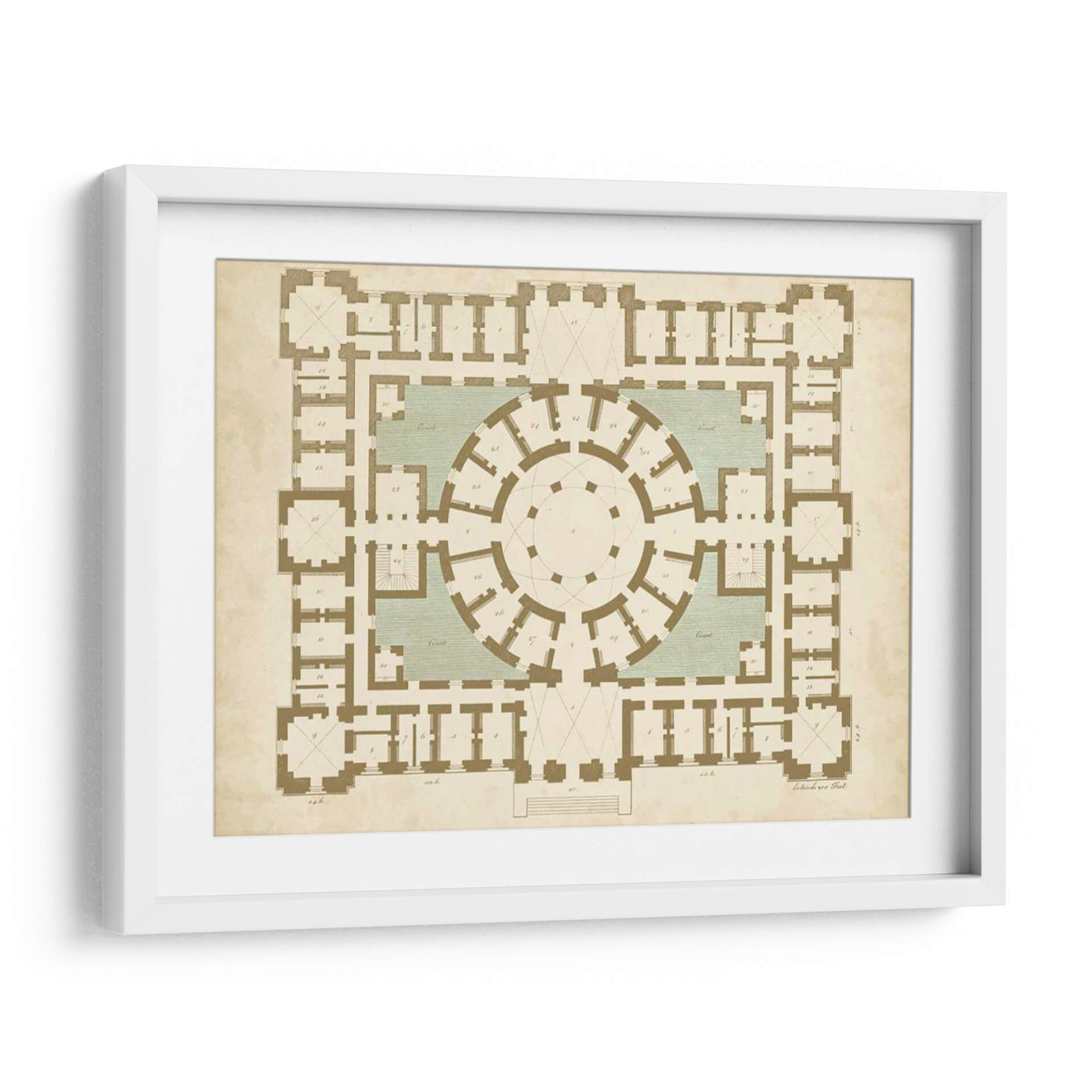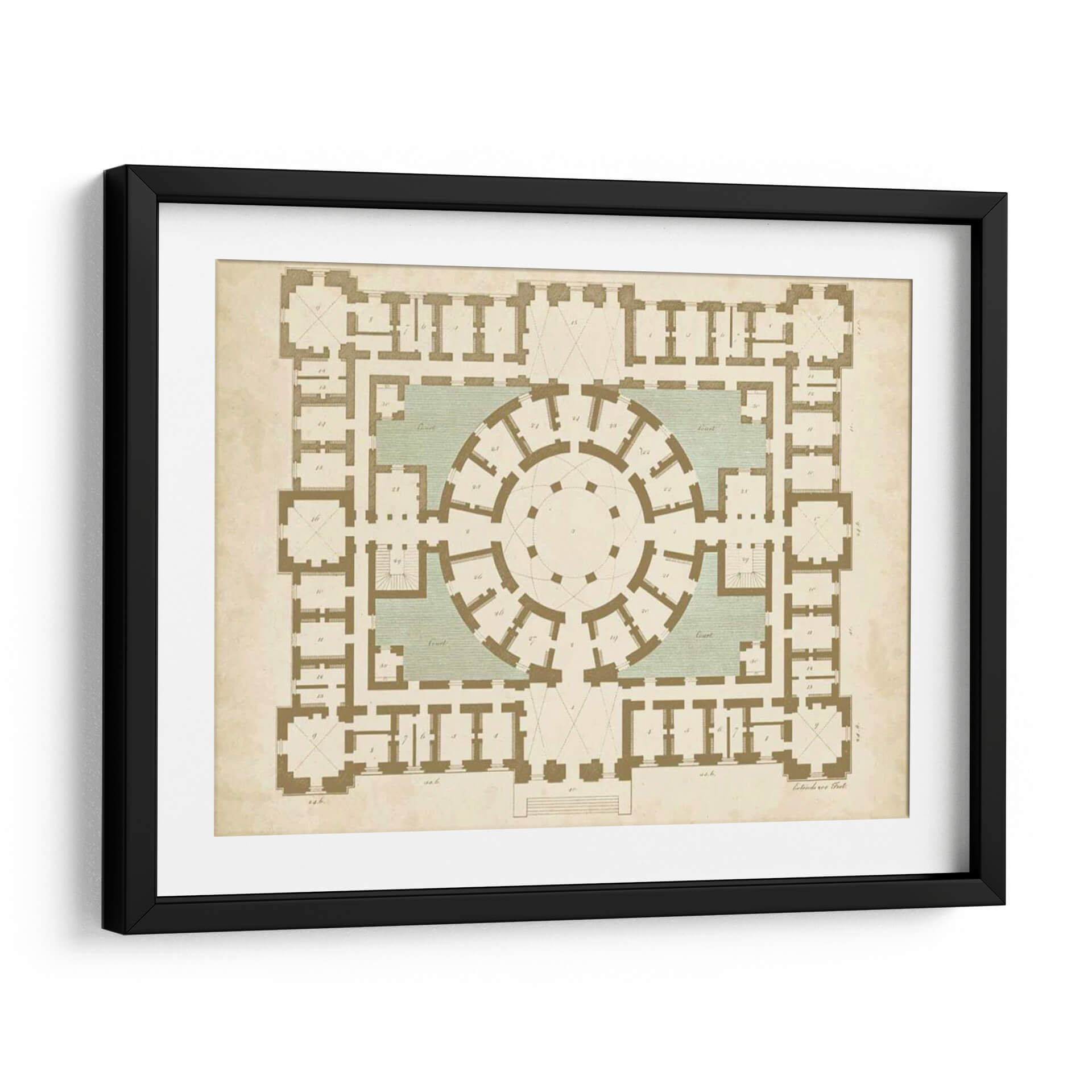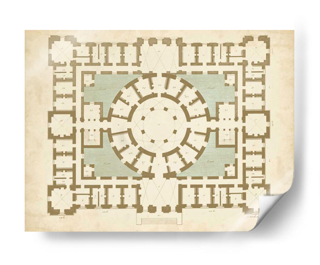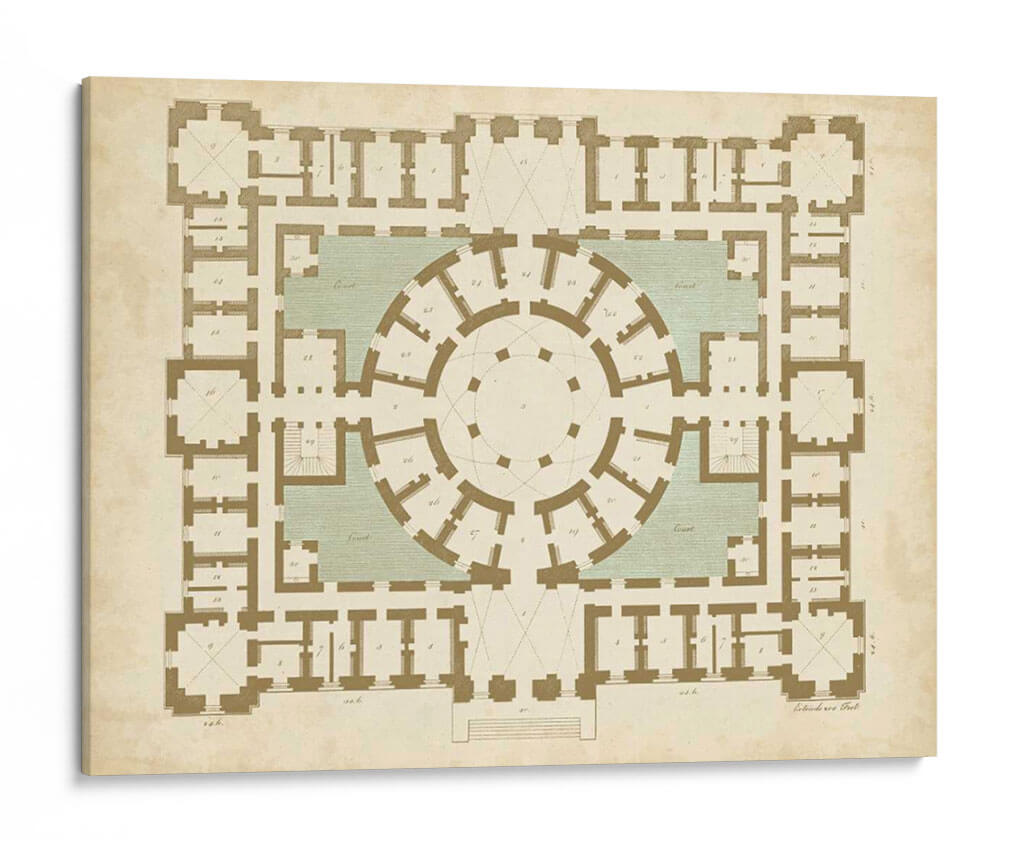 Descubre la elegancia arquitectónica y la precisión geométrica con "Plan En El Topo II Y Spa", una obra de Vision Studio que redefine la decoración de interiores. Este cuadro decorativo presenta una detallada planta arquitectónica, evocando la grandiosidad de estructuras clásicas con un diseño simétrico y una paleta de colores tierra y verde agua que aportan serenidad y sofisticación. La composición intrincada invita a la contemplación, explorando la interconexión de espacios y la funcionalidad del diseño. Ideal para amantes de la arquitectura, el diseño clásico o para quienes buscan una pieza de arte con carácter intelectual y estético. Su estilo atemporal lo convierte en el punto focal perfecto para salones, estudios o despachos, añadiendo un toque de cultura y refinamiento a cualquier ambiente. Transforma tu hogar u oficina con este lienzo que celebra la belleza de la planificación y la estructura, creando un espacio de diálogo entre el arte y la arquitectura.