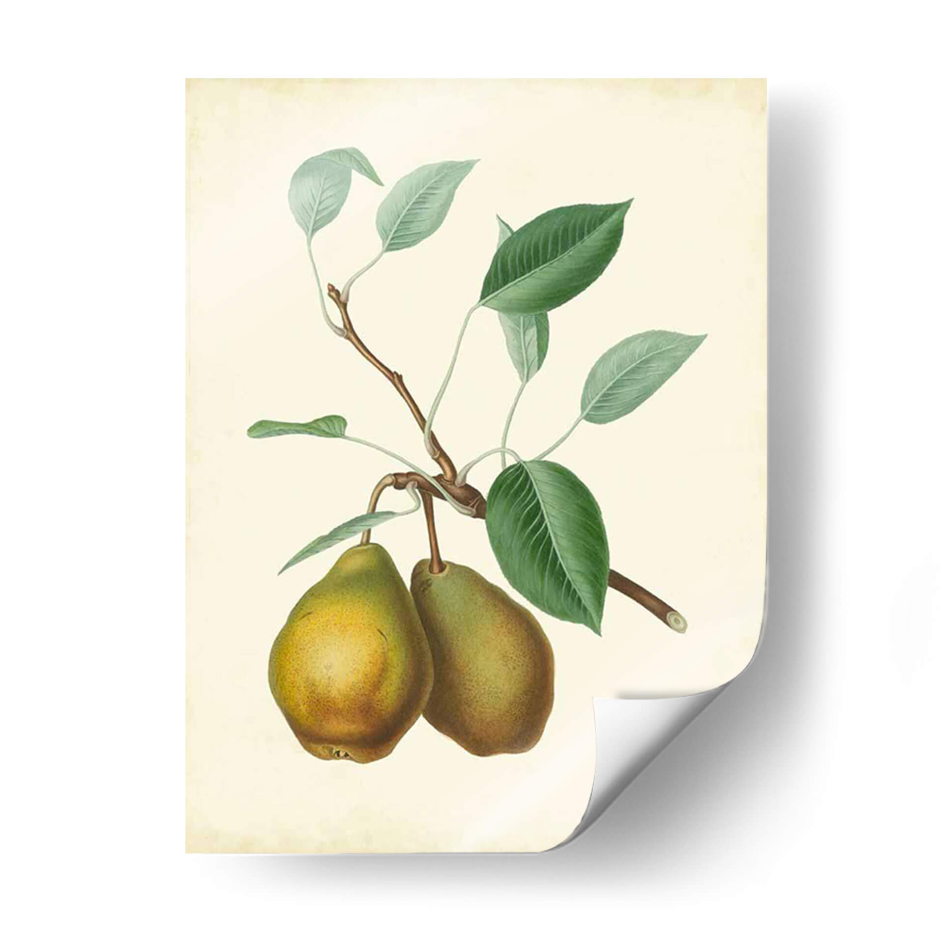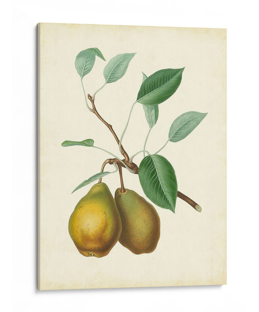 Embellece tu hogar con la obra 'Plantación De Peras Ii', un cuadro decorativo que evoca la frescura y la naturalidad del campo. Esta pieza, con su estilo botánico detallado, presenta dos peras maduras colgando de una rama con hojas verdes vibrantes, todo sobre un fondo cremoso que le otorga una atmósfera clásica y serena. La paleta de colores, dominada por tonos tierra, verdes profundos y toques dorados en la fruta, crea una sensación de calidez y autenticidad. Ideal para cocinas, comedores o cualquier espacio que busque un toque de elegancia rústica o un recordatorio de la abundancia natural. Su composición equilibrada y el estilo que recuerda a las ilustraciones científicas antiguas, pero con un aire contemporáneo, la convierten en una adición versátil y sofisticada para cualquier decoración. Este cuadro decorativo no solo añade belleza visual, sino que también infunde una sensación de tranquilidad y conexión con la naturaleza, transformando cualquier ambiente en un refugio de paz y buen gusto. Añade esta obra de arte a tu colección y disfruta de su encanto atemporal.